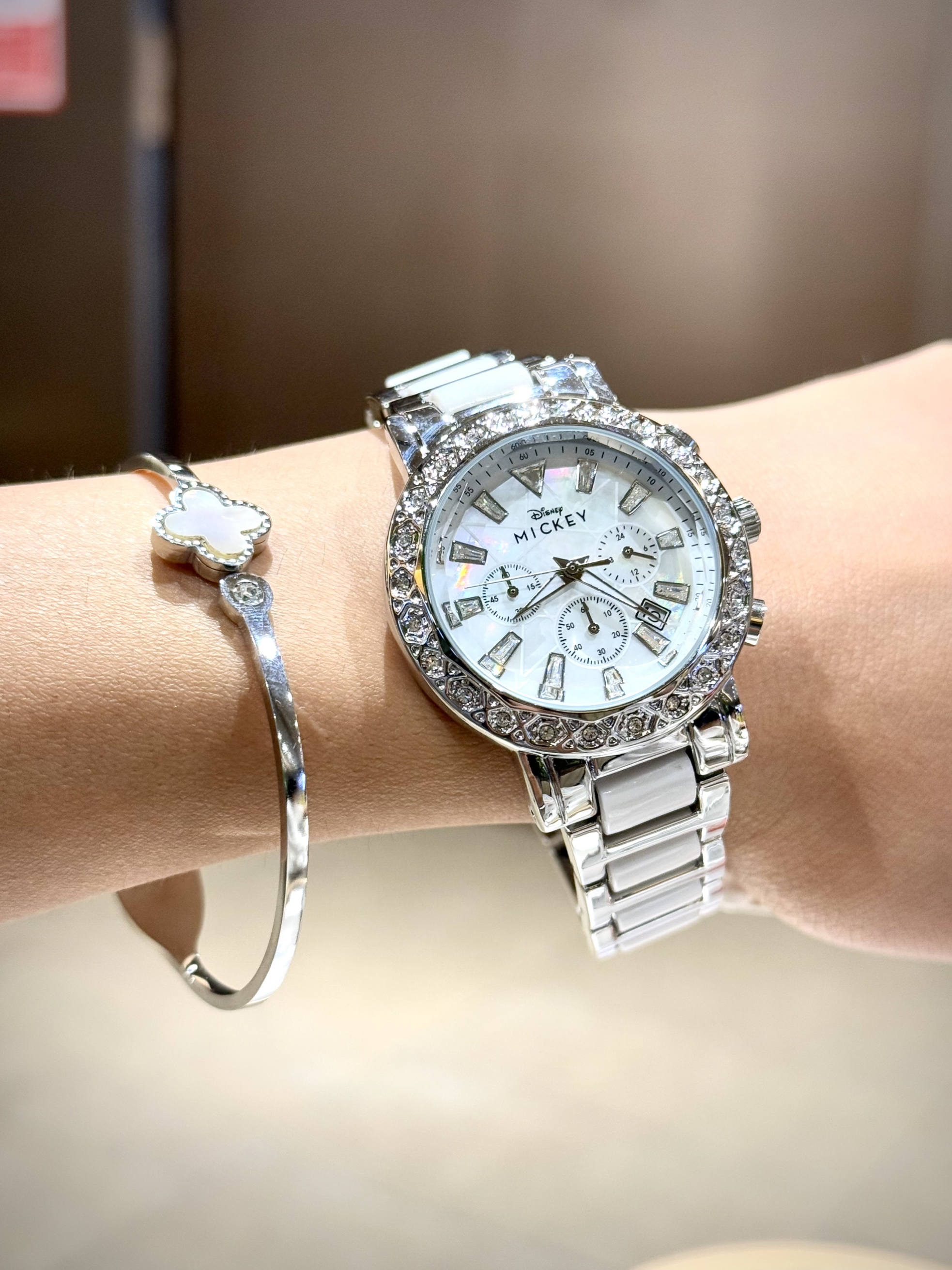本篇笔记关联了Disney/迪士尼 至臻元气系列 气质梦幻女神潮流百搭镶钻轻奢钢带贝母防水多功能石英女士手表 【礼盒装】曜夜白 等商品,为用户提供真实的使用体验和购买参考。
