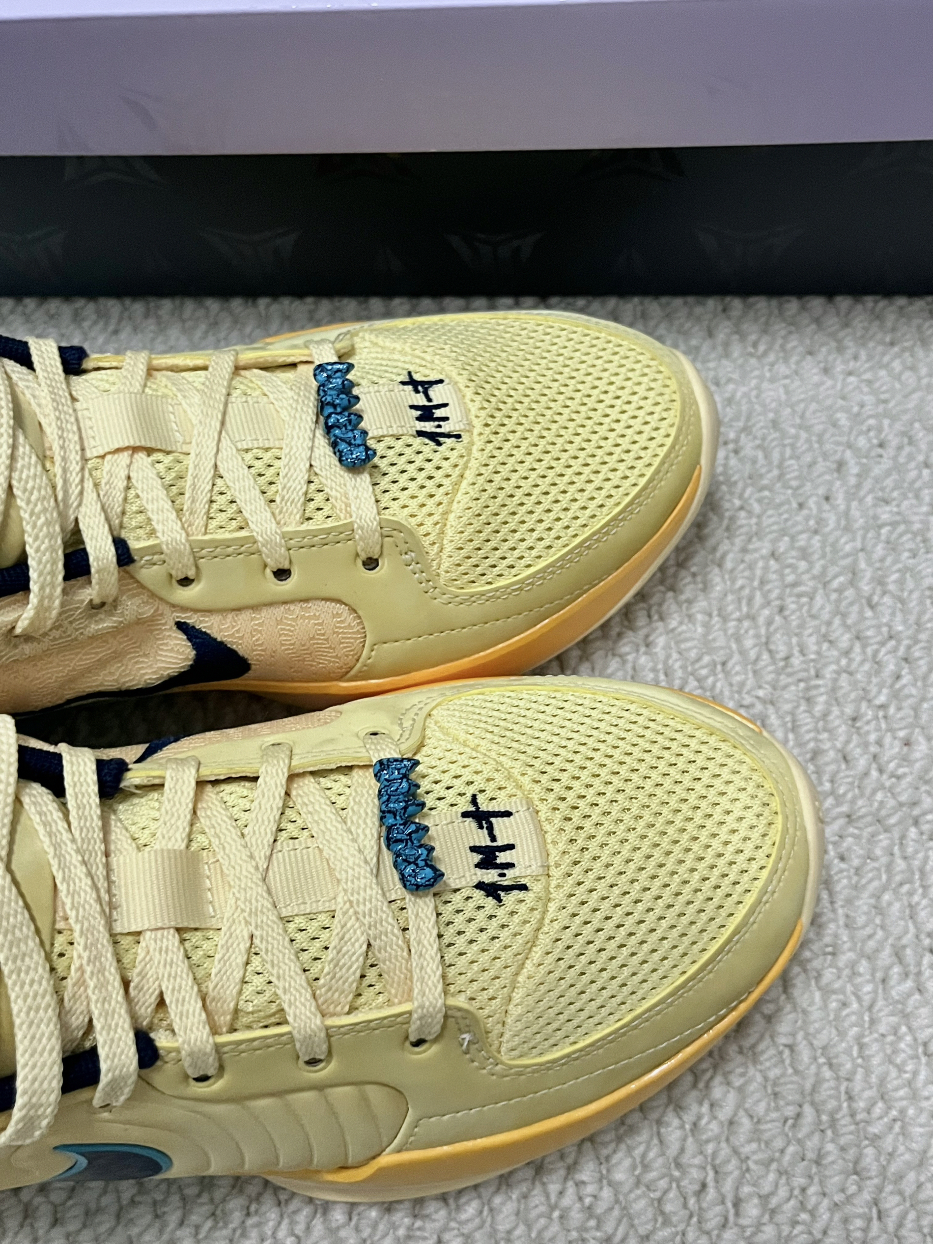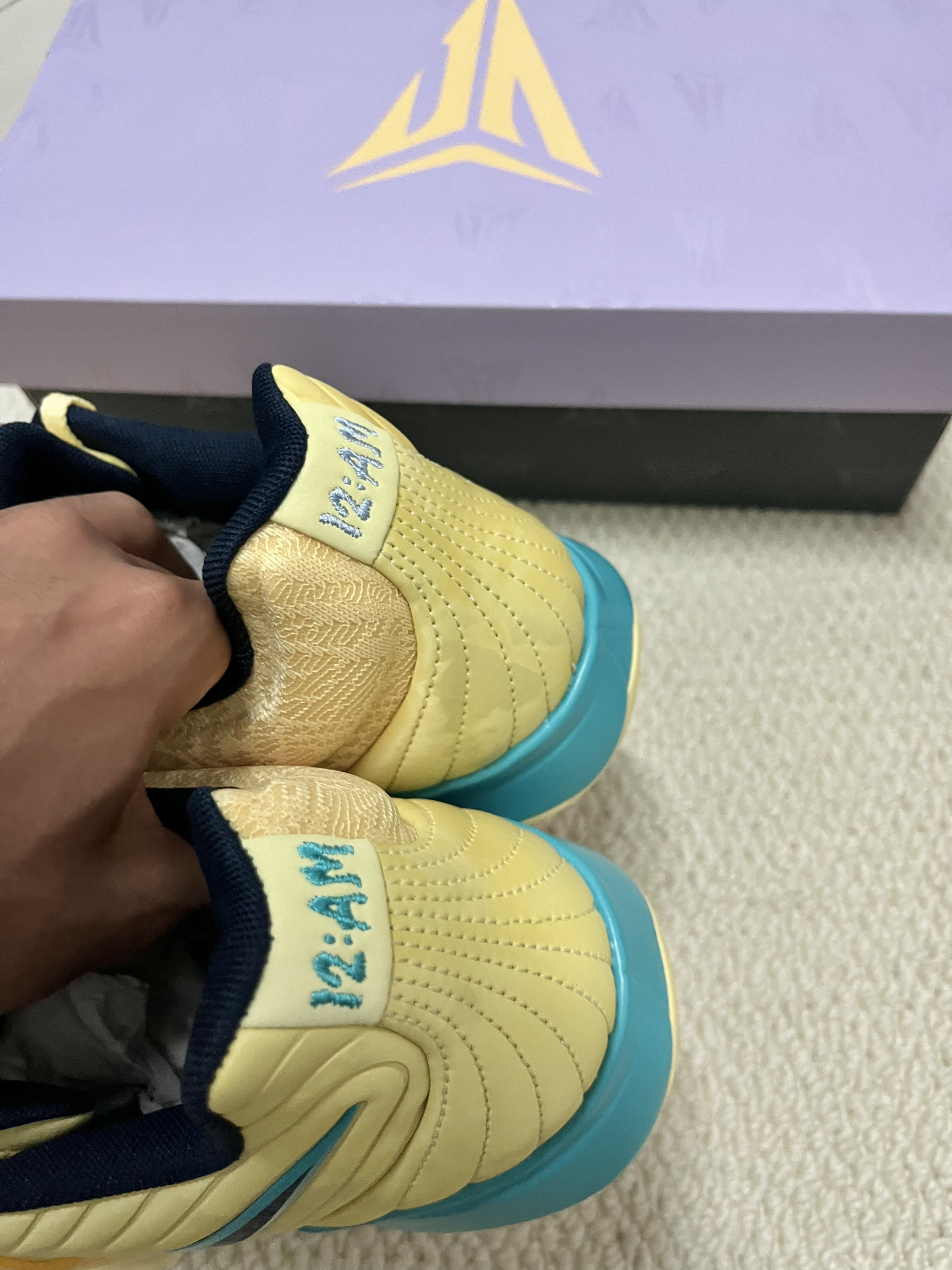 我买的这双是湖人黄配色 颜值方面真的很加分🪁 鞋舌专属 “12” 背号🎉🎉鞋子侧 面Ja 个人 Logo、 前掌搭配air zoom气垫 后卫选手 直接入手 我平常穿的就是42码 🚀🚀这次我买的42码 我属于宽脚高脚背 但是穿着双鞋没有感觉到挤脚 实战的话 我仅仅在室内木地板打过场 室外效果还不知道 预知后事如何🤔🤔请看下集