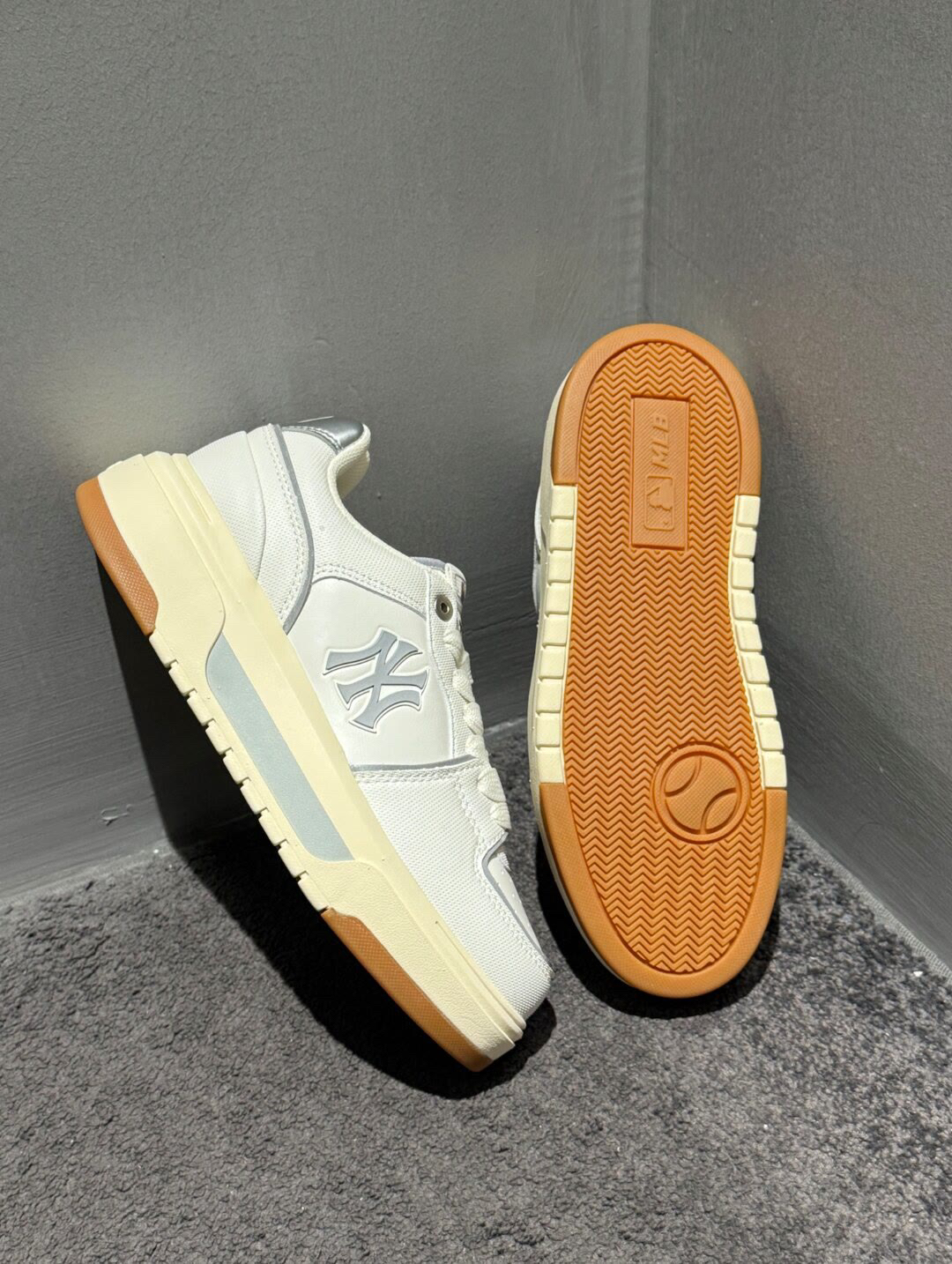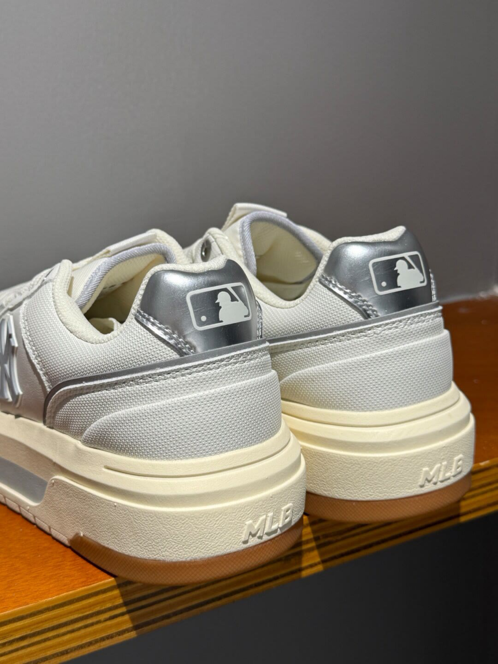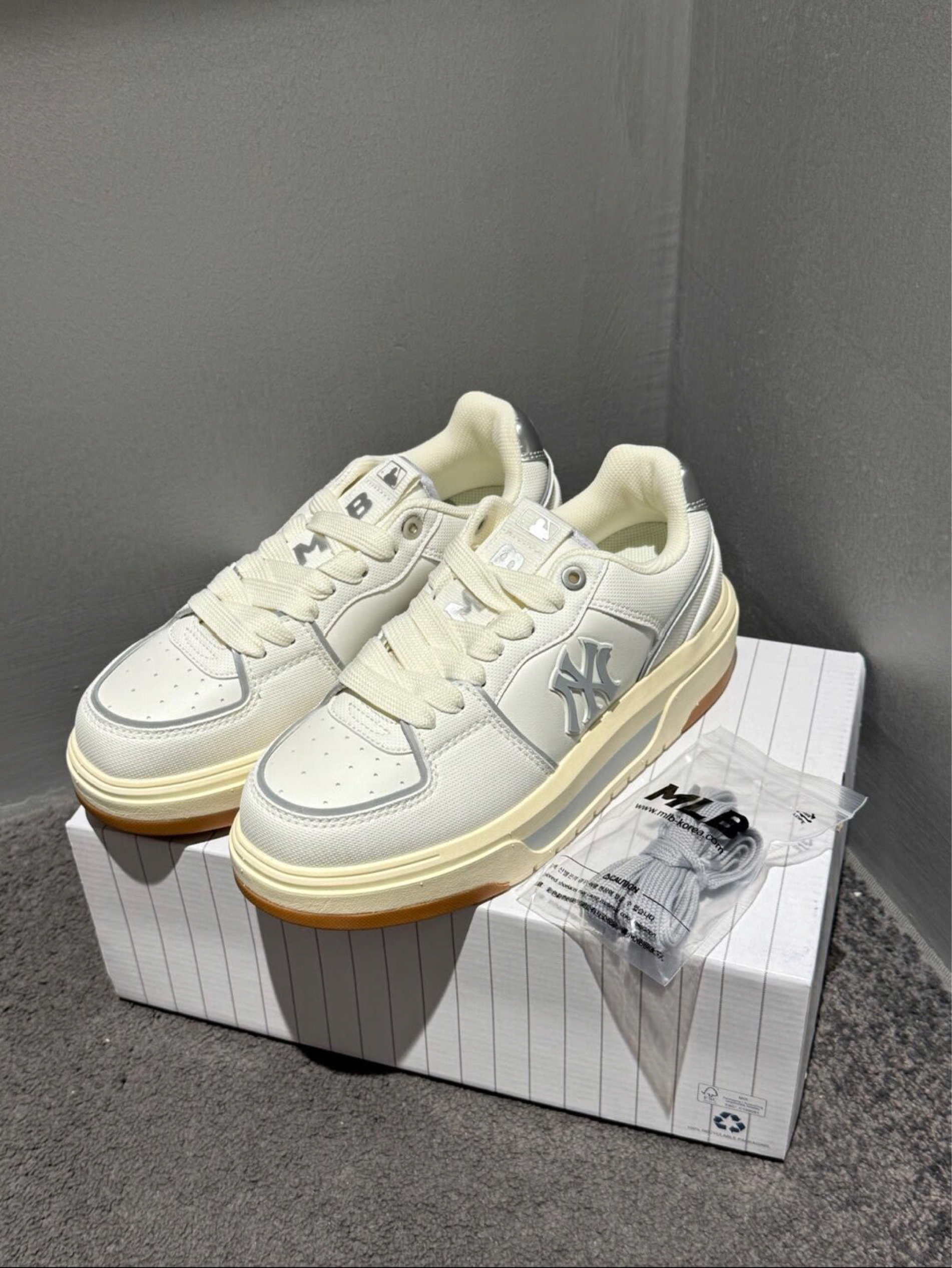 被问爆的 MLB 板鞋!奶白 + 银灰配色,自带美式复古滤镜,上脚秒变街头酷盖,又奶又飒谁懂啊💥 🔍设计细节开挂 ✔️经典 Logo:鞋侧立体 NY 标,辨识度拉满,潮人属性直接拿捏🤏 ✔️材质混搭:网布 + 皮革拼接,透气又有质感,夏天穿不闷脚,还自带“做旧时髦感”✨ ✔️小银角:后跟银色反光细节(藏着 MLB 棒球标 ),走路带光,暗处也能炸场! 👟实穿性王炸 厚底增高一绝,悄悄拉长腿...