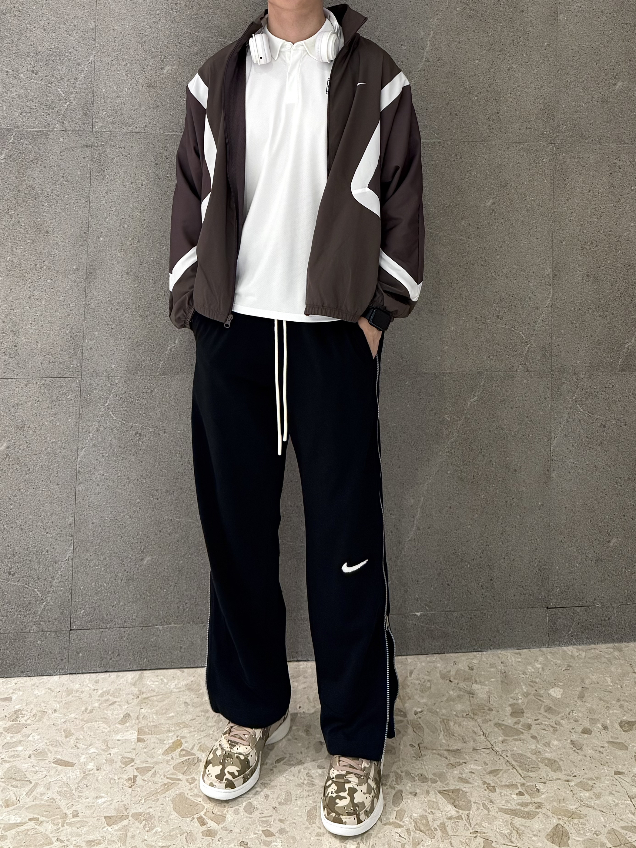 报告!在nike发现一件轻薄外套~☕️ 👕:Nike轻薄运动外套➕内搭白色速干短袖,白棕配色的设计,穿起来干净又显质感,上身为2XL码! 👖:Nike拉链篮球长裤,双向拉链➕阔腿版型,运动训练穿或者是日常穿搭都是很棒的~版型款式,上身为L码! 👟:Book布克一代又来新配色,迷彩鞋面➕白色大底,适合美式复古风穿搭,穿起来包裹性很足,推荐大半码选择~