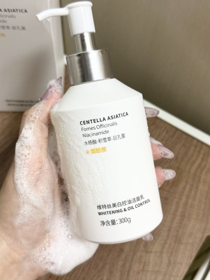 皮肤爱出油加上夏天到了 太阳暴晒皮肤蜡黄油腻 看起来总是脏脏的… 幸好我最近一直在用维特丝美白控油洁面乳 乳液质地流动性强泡沫丰富绵密 上脸绵软不刺激温和清洁 在脸颊T区下巴多揉搓带走多余油脂 洗干净后皮肤透亮有光泽 出油也减少了不少 夏天有它在也不怕脸上出油了