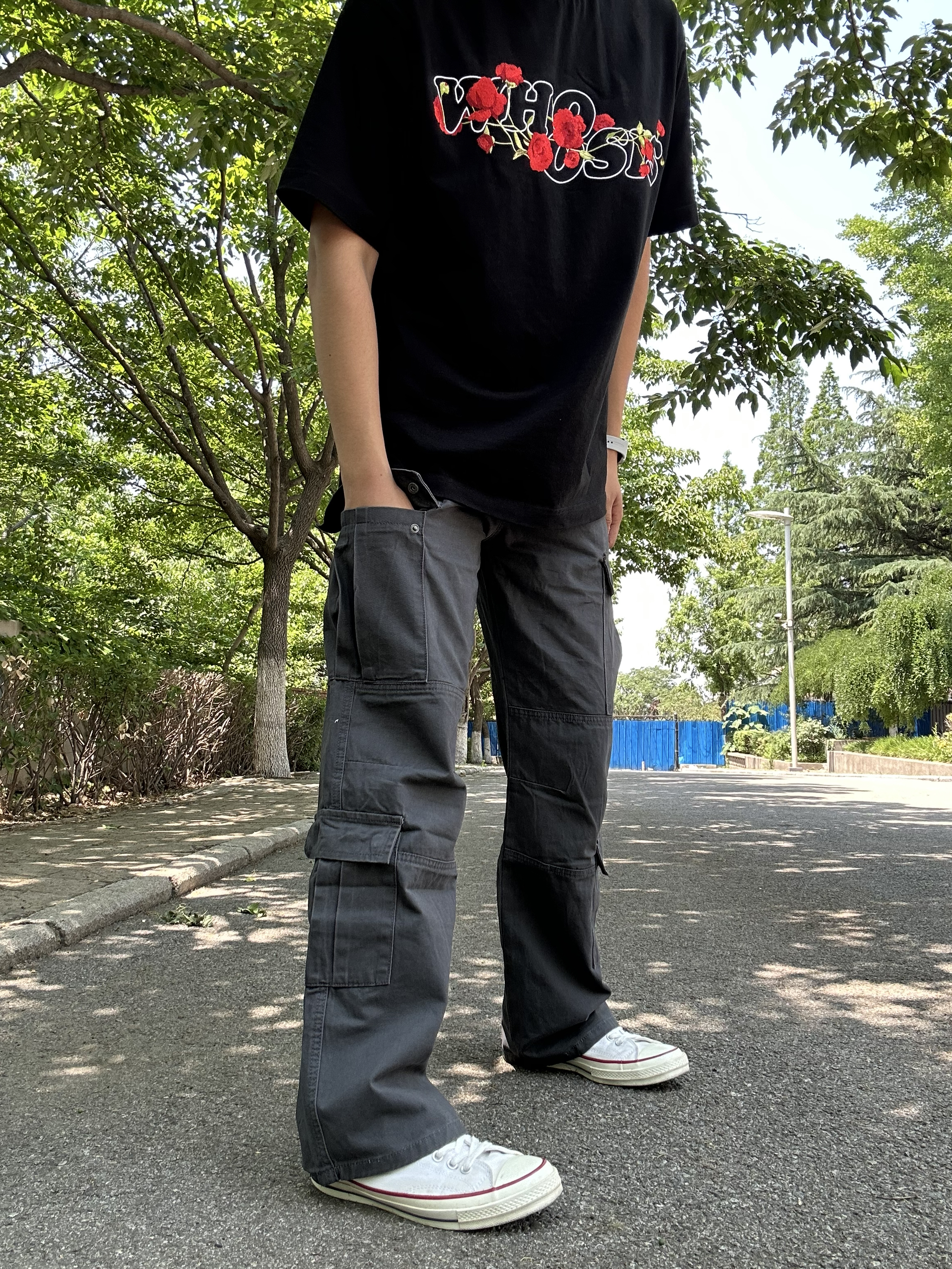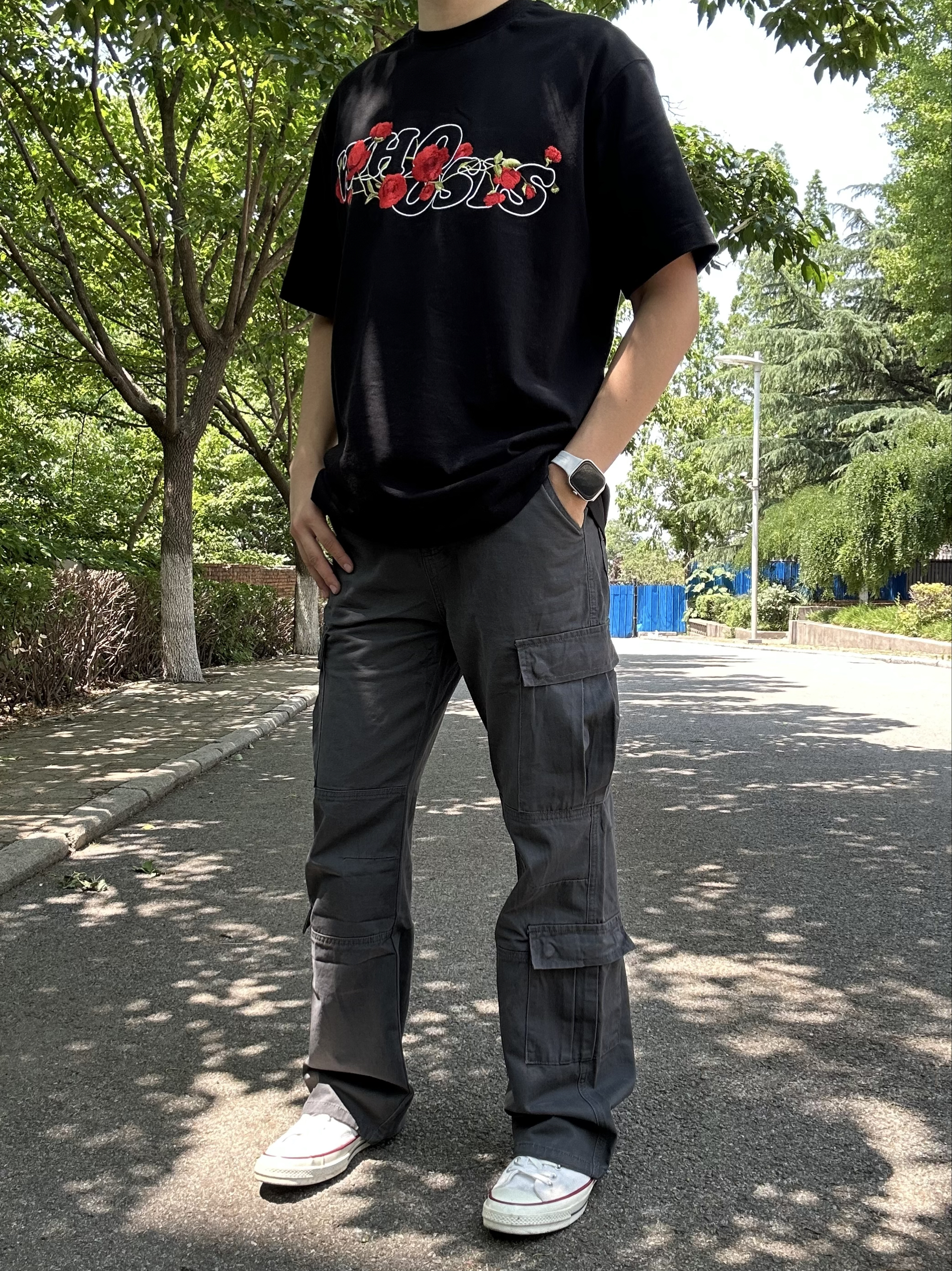 身高|体重:185厘米体重62公斤,上衣XL裤子XXL 🧍♂️ 穿搭风格:夏日潮流校园OOTD 👔 上衣:WHOOSIS玫瑰🌹短袖👔 👖 下装:新因素的工装裤👖 👟 鞋子:Converse经典1970S板鞋👟 🎒配饰:红米Watch 5