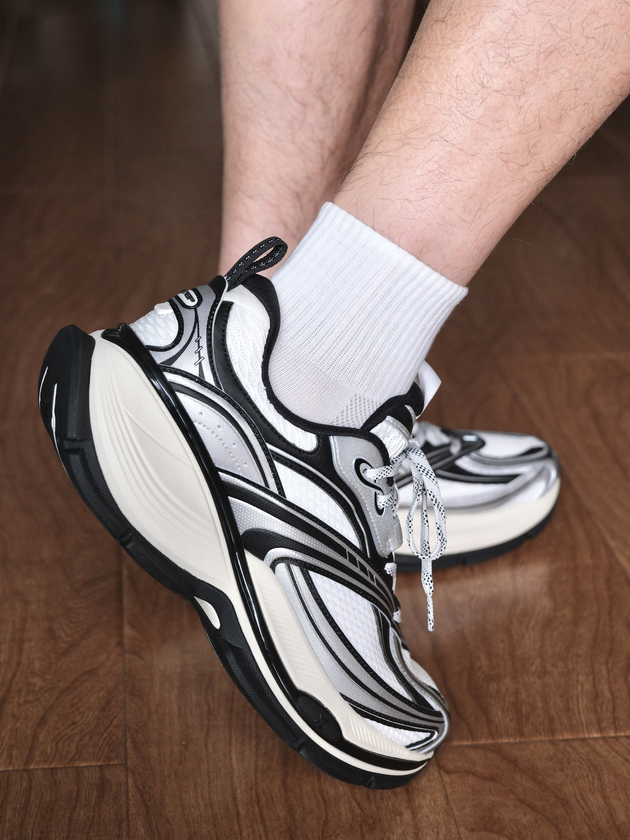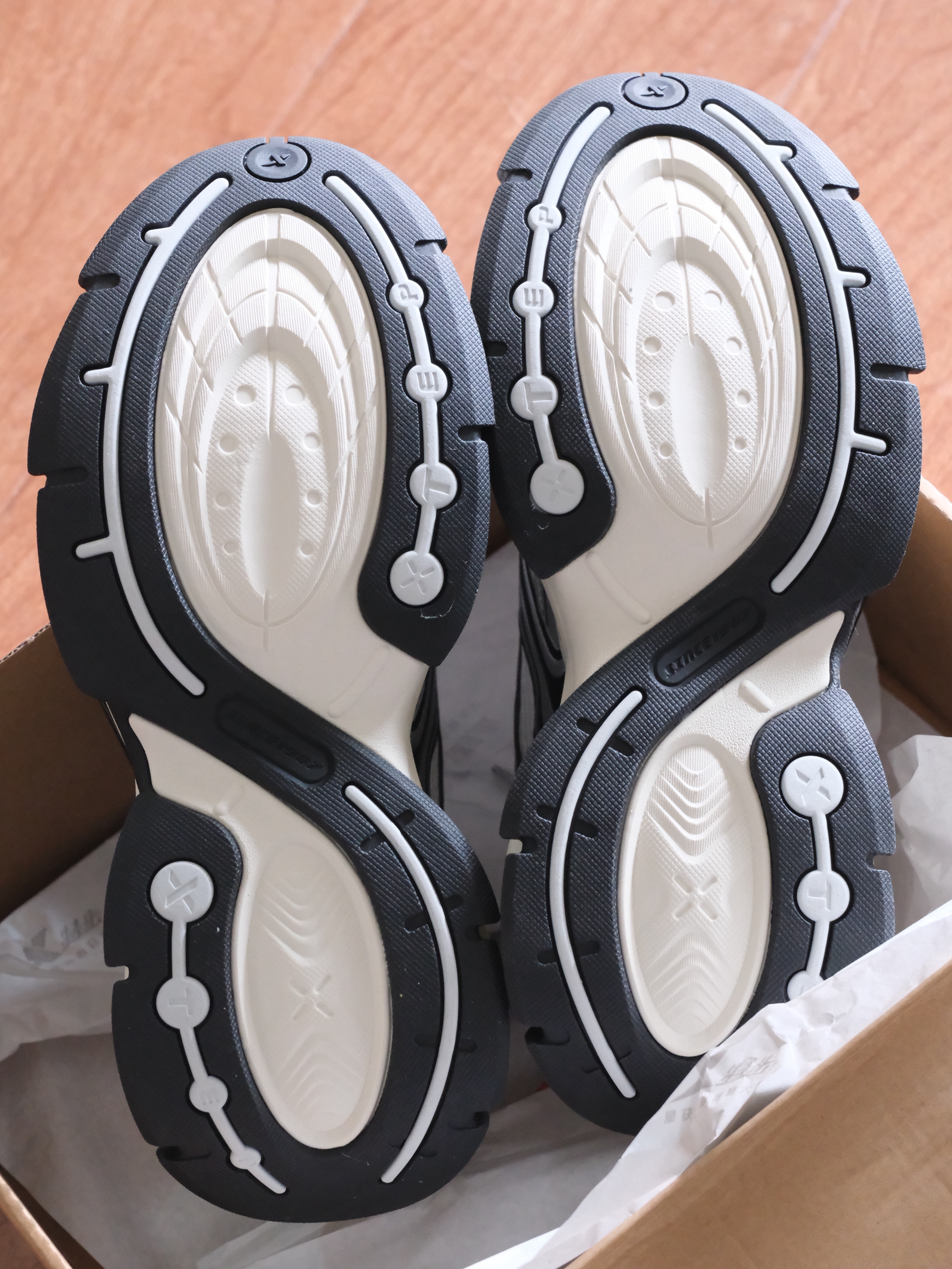 👟:特步 巴斯克2代 月石灰配色 一双我认为的暴走神鞋分享给大家🍀 鞋子的外观看起来还是比较硬核的风格,这个配色还是王鹤棣同款,做工这些没问题,质感也不错。👍 上脚后还是让我大吃一惊的❗️ 第一是鞋底的柔软度,升级了跑鞋中底,外加有TPU支撑,软弹有度,脚感反馈也很舒适,蛮合适出行暴走哒,真的是外硬内软啊✅ 而且大概有4-5厘米的隐形增高,对于矮个子朋友还是很友好的。 搭配上面我觉得一双纯色的白袜...