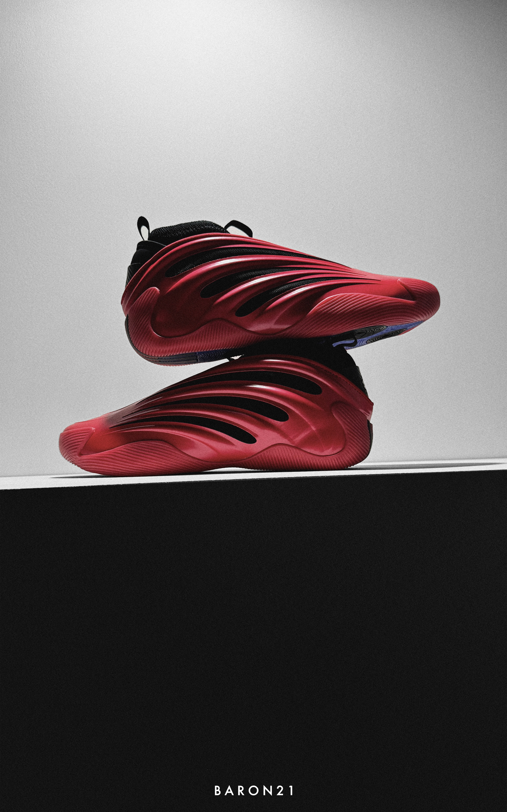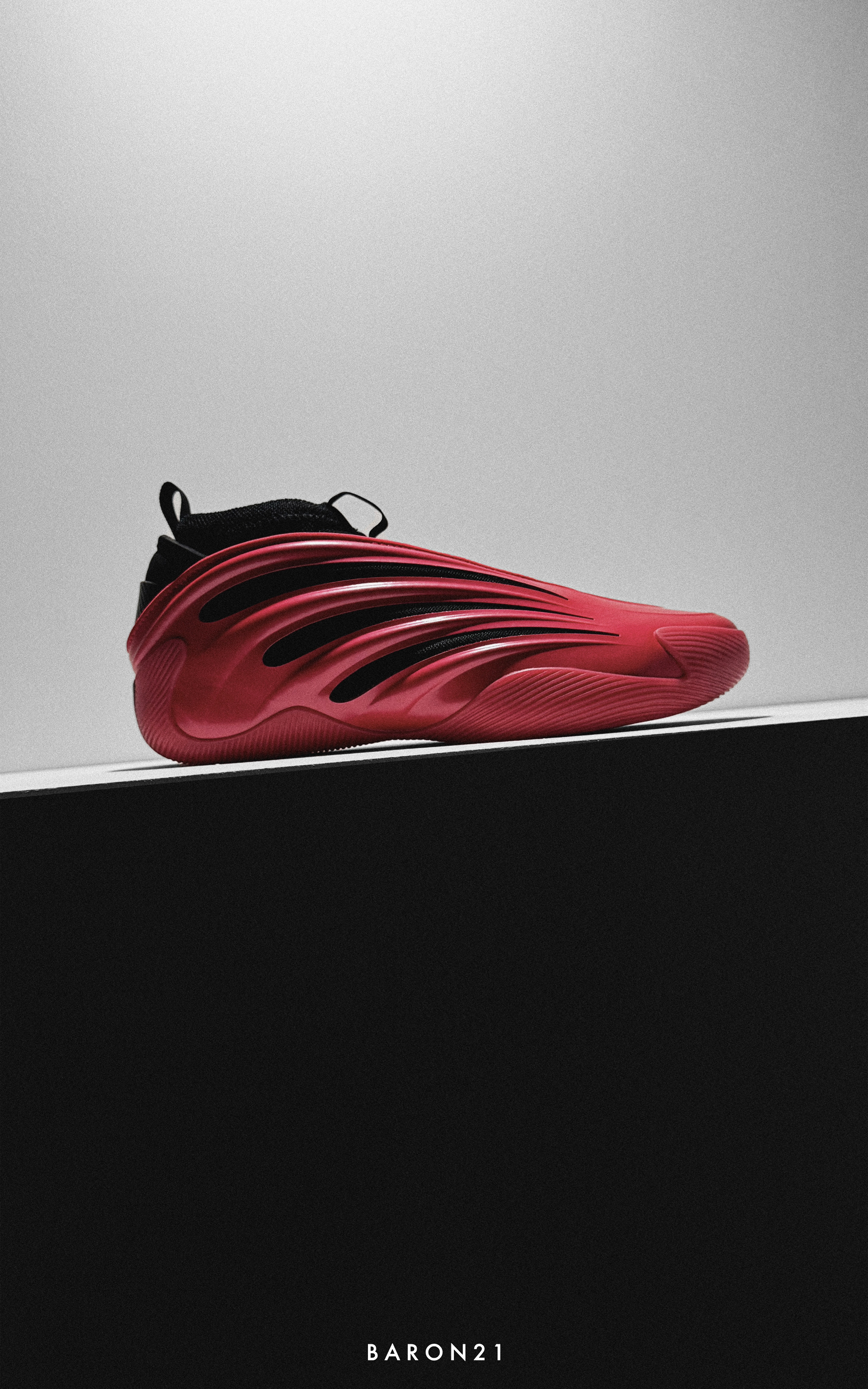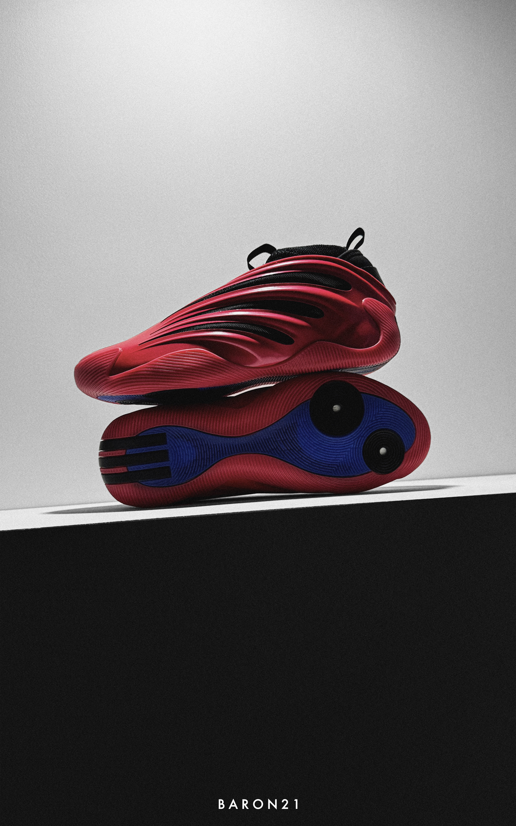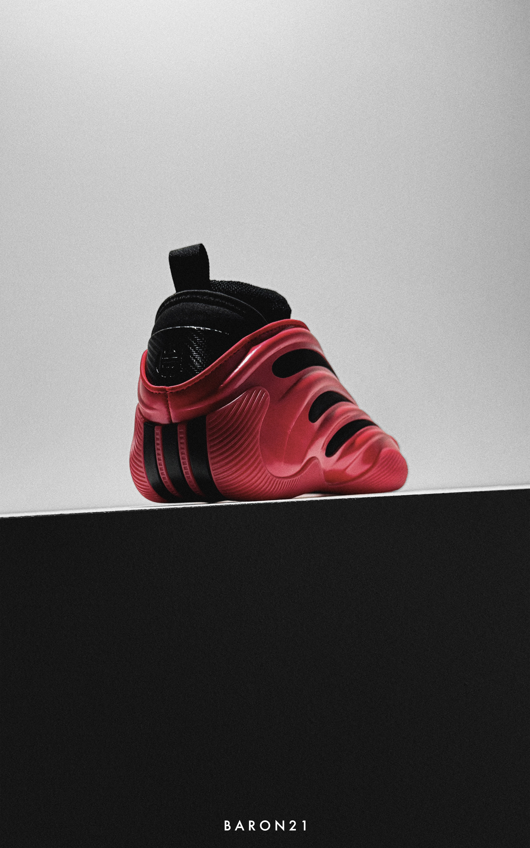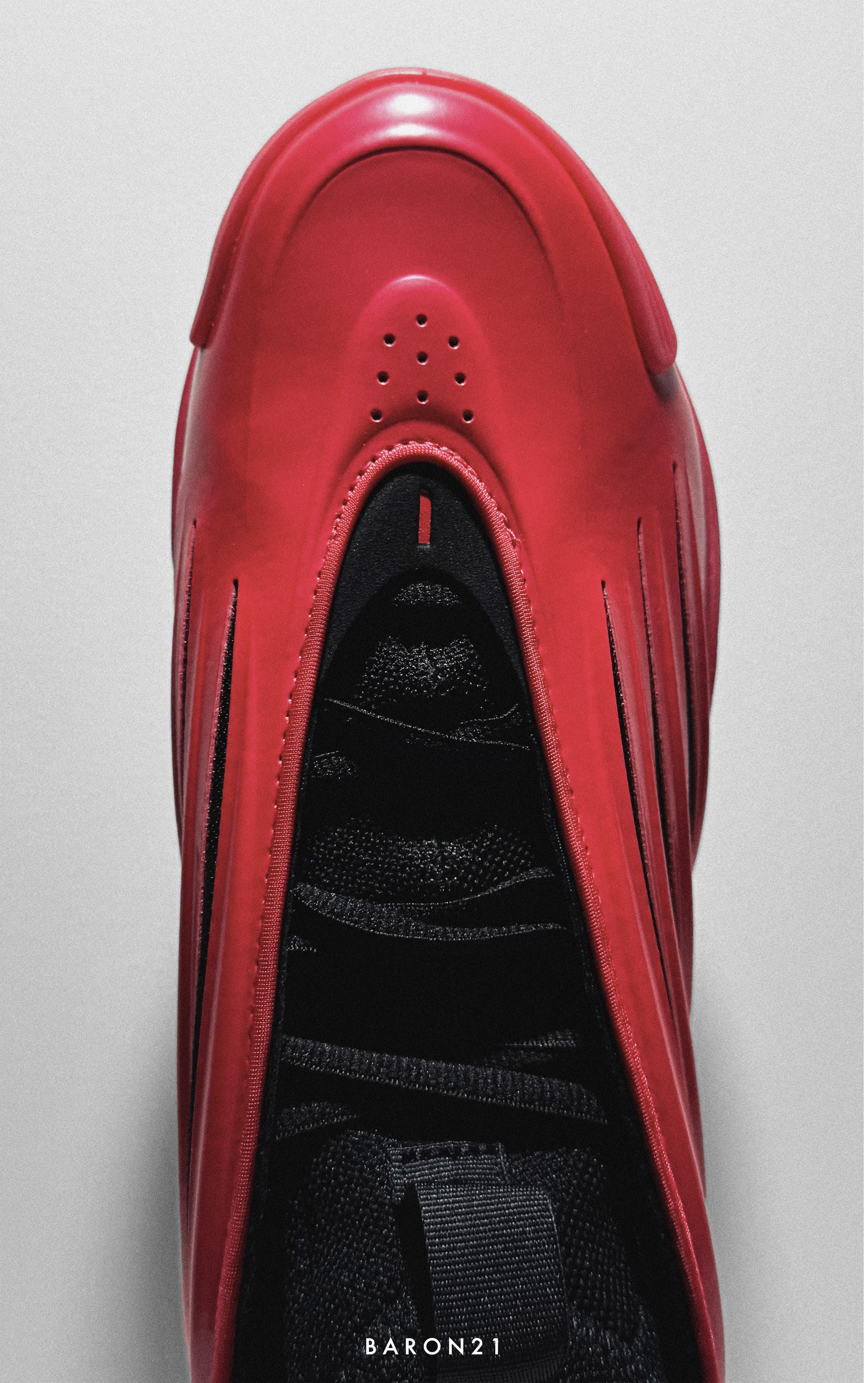 这双红黑色的哈登9,我也是等了一阵子。因为我很喜欢红黑色的球鞋,所以这双是我入手的几个哈登9里最喜欢的!不看鞋底的话,鞋面只有红色和黑色,很干净不杂乱。鞋面红色部分是质感不错的反光漆面,有种超级跑车的感觉。黑色网布透过鞋面的镂空部分,与红色鞋面形成对比,视觉效果很好。 哈登9有一种独特的美,除了实战鞋的外观,还兼具了一定的潮流感。这双黑红配色更是如此,颜值即正义!