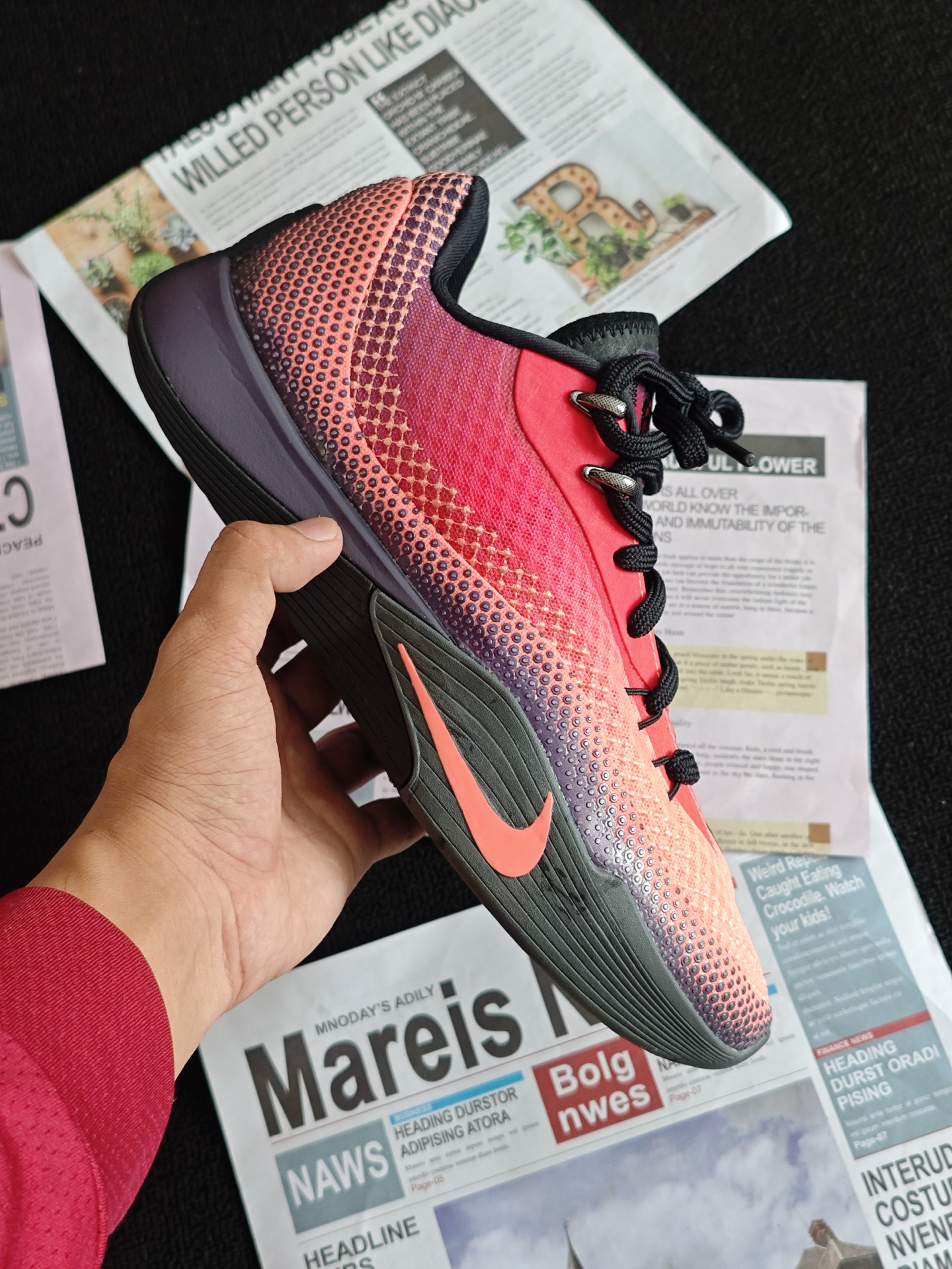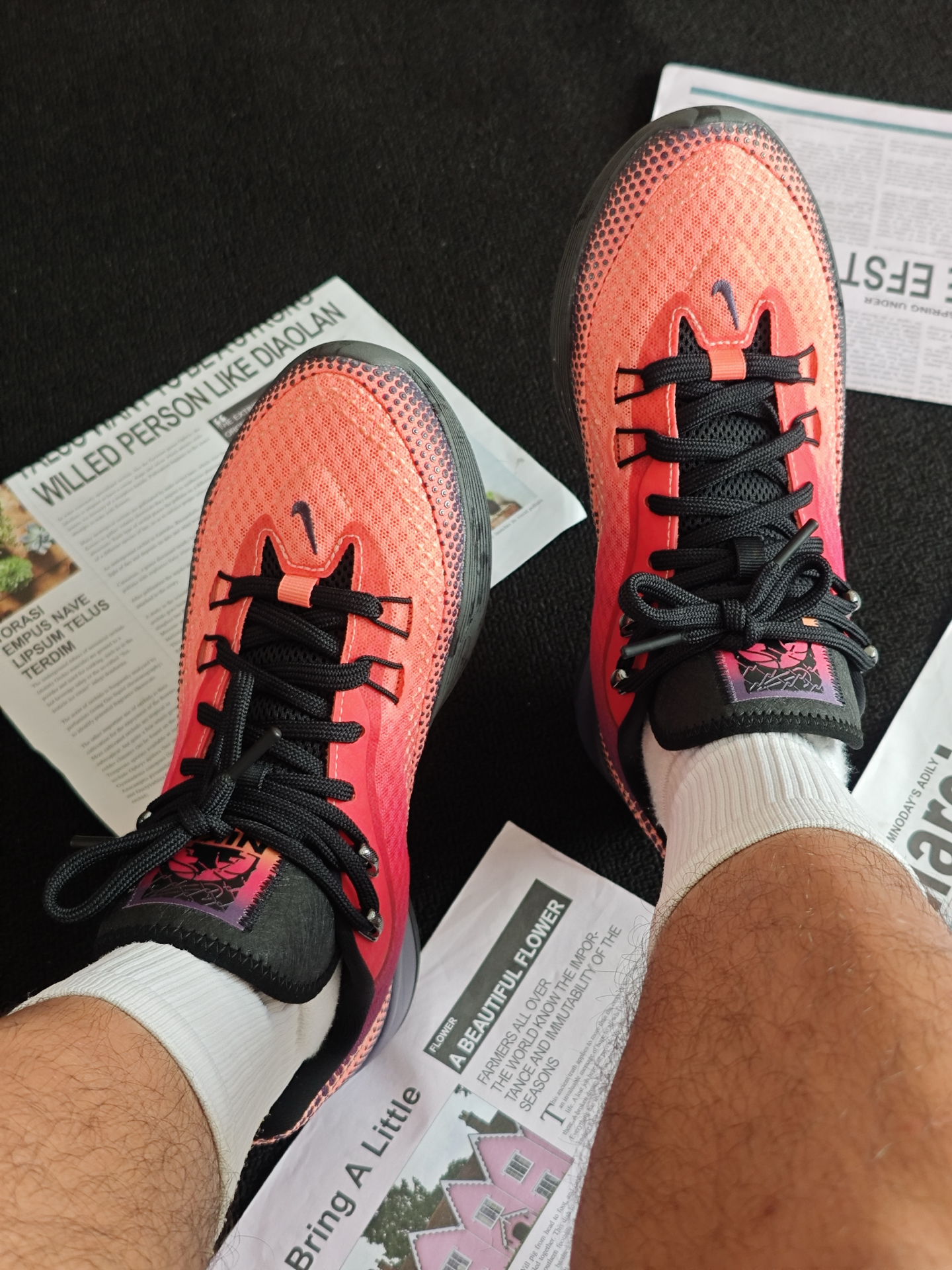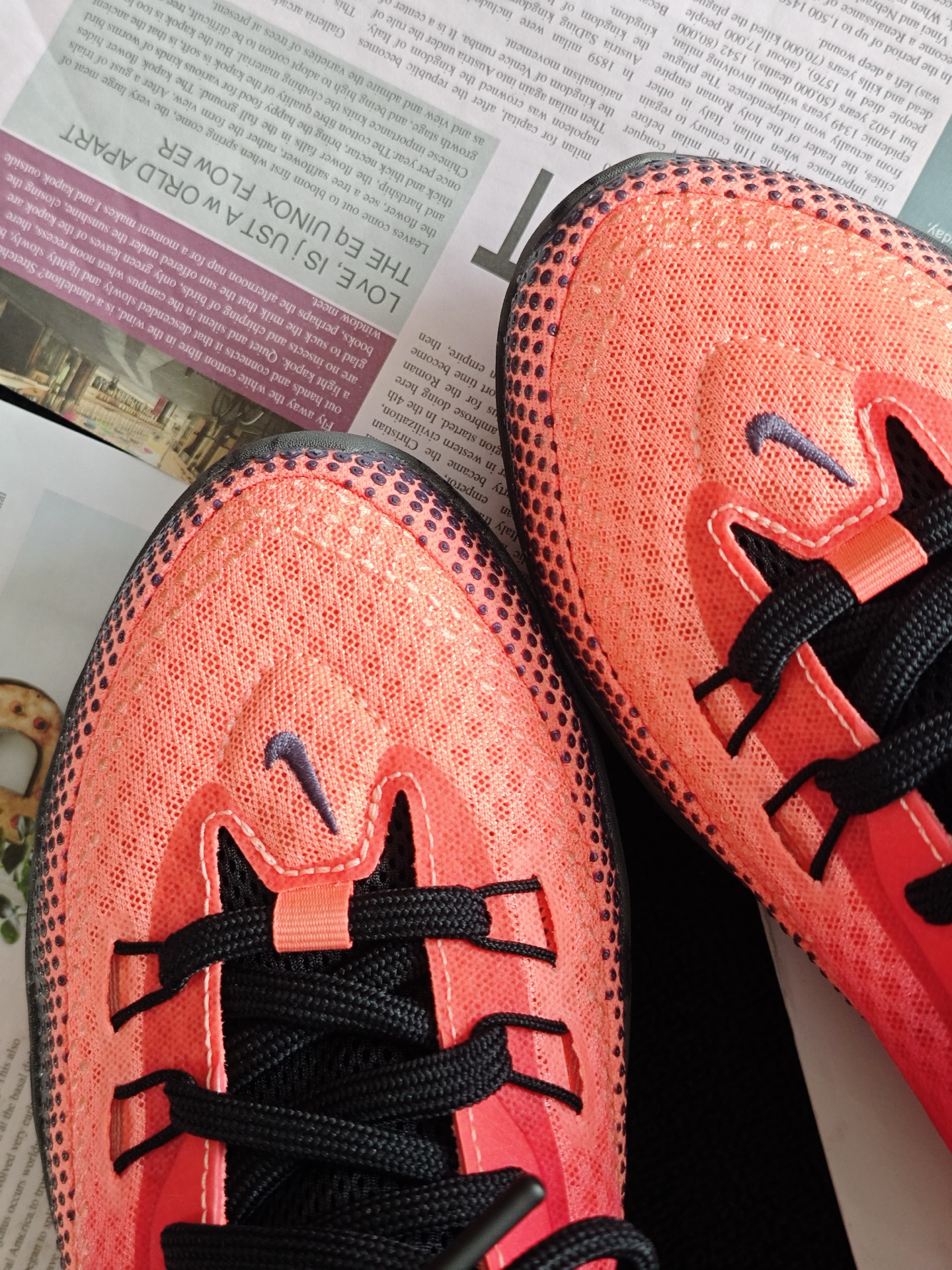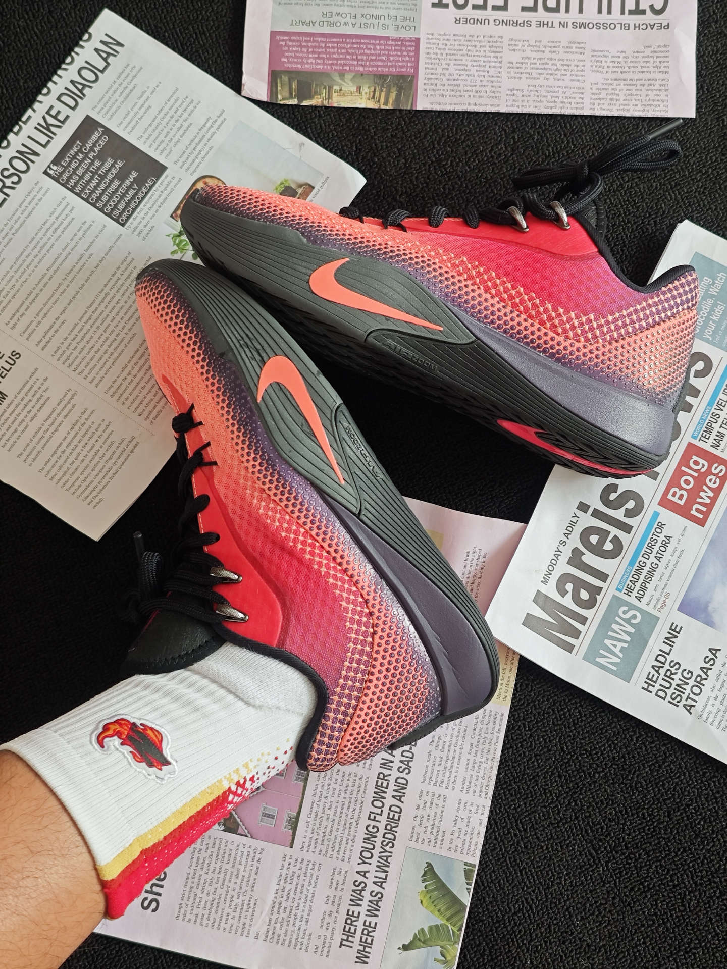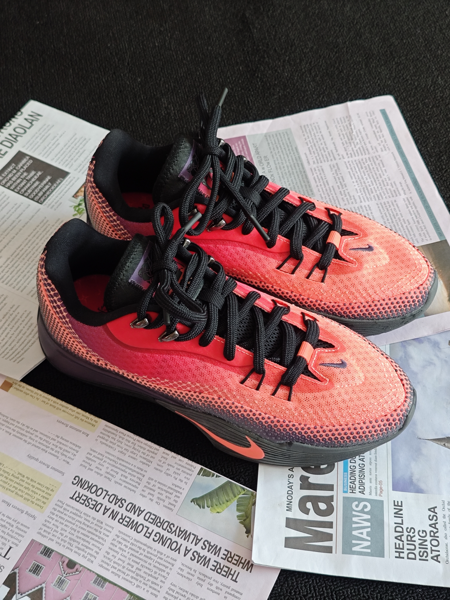 嗨喽,大家好,我是小邱 [耍帅_blue]今天给大家带来一双实战通勤两不误的性价比战靴,它就是 #Nike 的ST Flare气焰👀 首先呢先来说说它的外观方面,整体采用的是一个红黑渐变的配色,颜值还是挺不错的,用来日常通勤穿搭的完全没有什么问题😁 脚感方面呢前掌有一块扇形的ZOOM气垫,蹬地突破的脚感还是挺不错的,但是中底有点偏厚,场地感一般[砸晕_blue] 同时这双球鞋的大底非常的深...