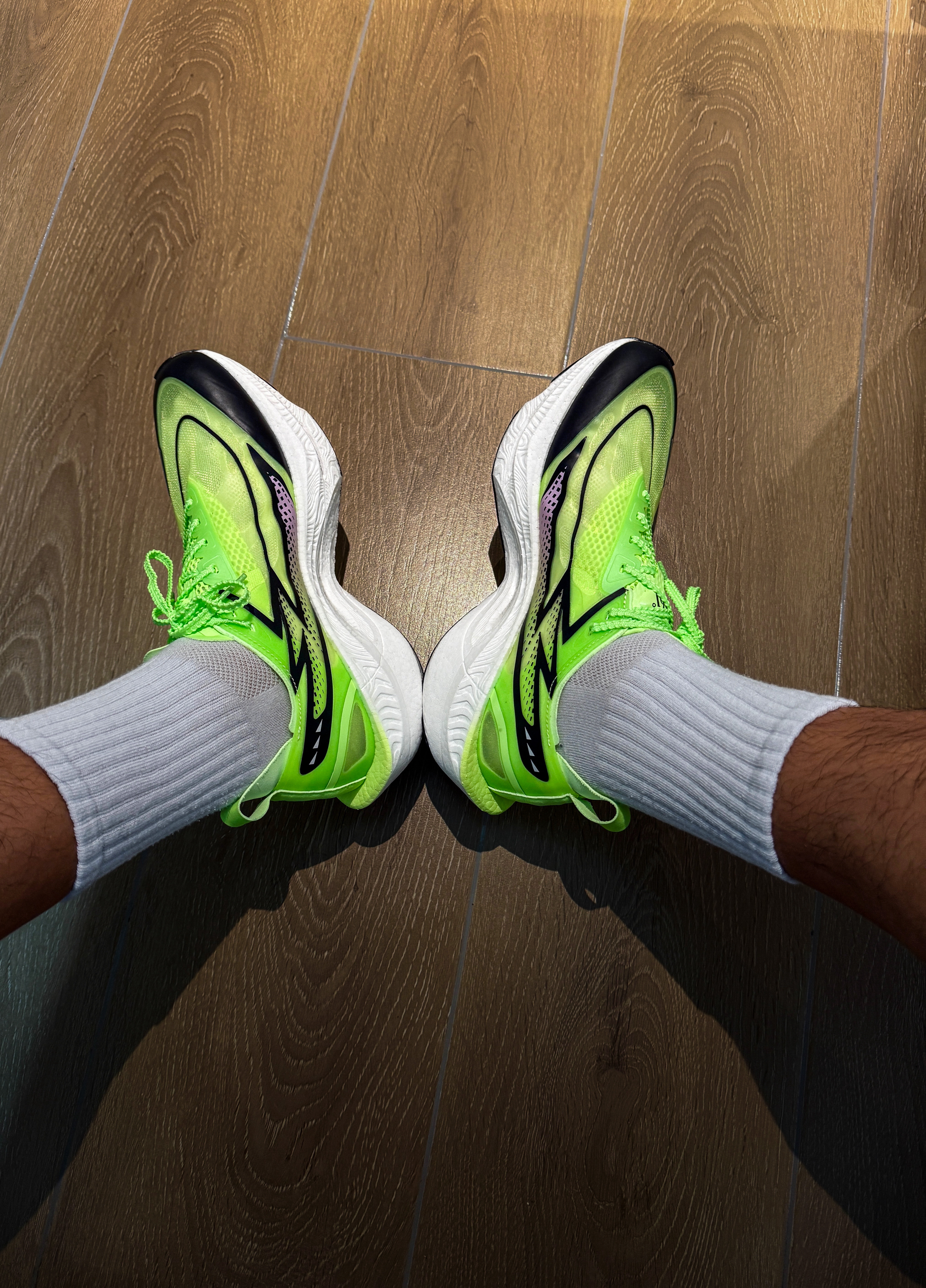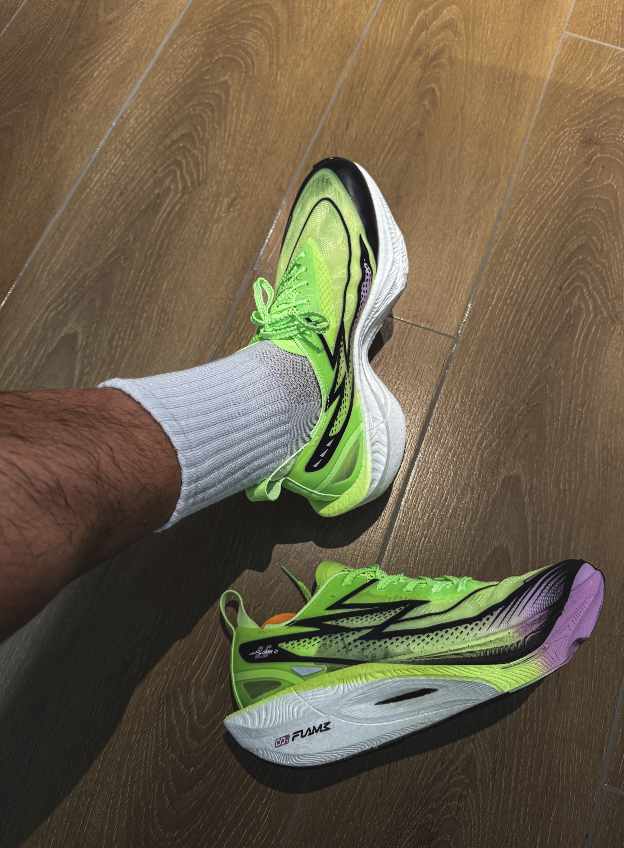 40度的高温天穿这个配色比较清凉,轻薄透气前掌碳板反馈不算太激进比较好驾驭,后掌比较实而韧弹,好处是就算压马路不费腰👟球鞋名称:飞燃3.5 📌是否偏码【偏大/不偏码/偏小】:不偏码 ⛹️性能打分(每项满分均为10):9 包裹:10 缓震:9 抓地:9 耐磨:8.5 稳定:10 防侧翻:8.5 透气:10 重量:9.5 📖总结评价:适合五六分配进阶爱好者,容易驾驭,足弓跟腱不累脚