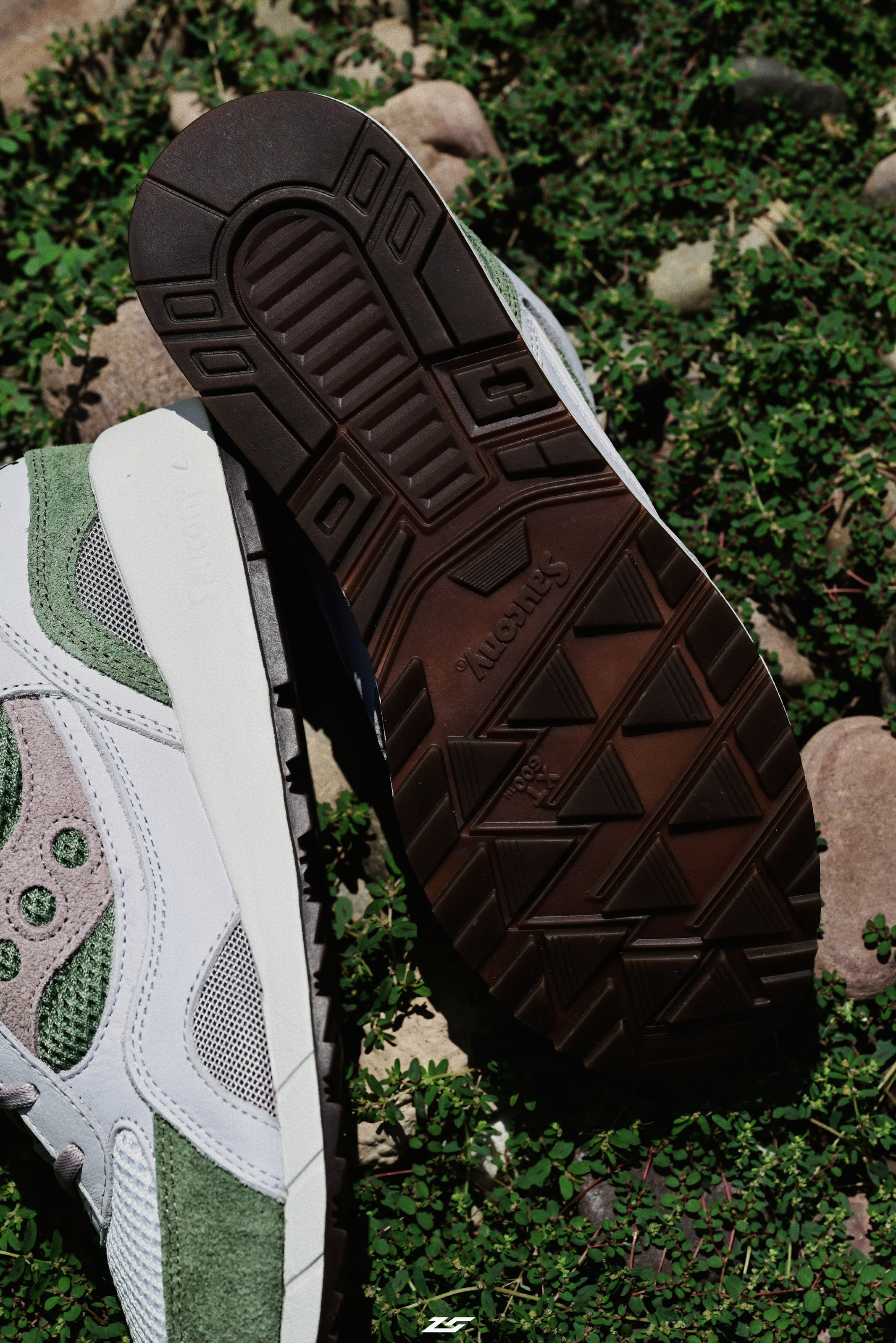 二开入手的索康尼的SHADOW6000,我自己给自己它起个名字,就叫做绿野仙踪吧,配色复古,真皮用料,质感相当不错。 这个价格还附赠鞋带,很值得啊,就是这天儿穿起来有点热。 码数可以选大一码,内衬偏厚。
