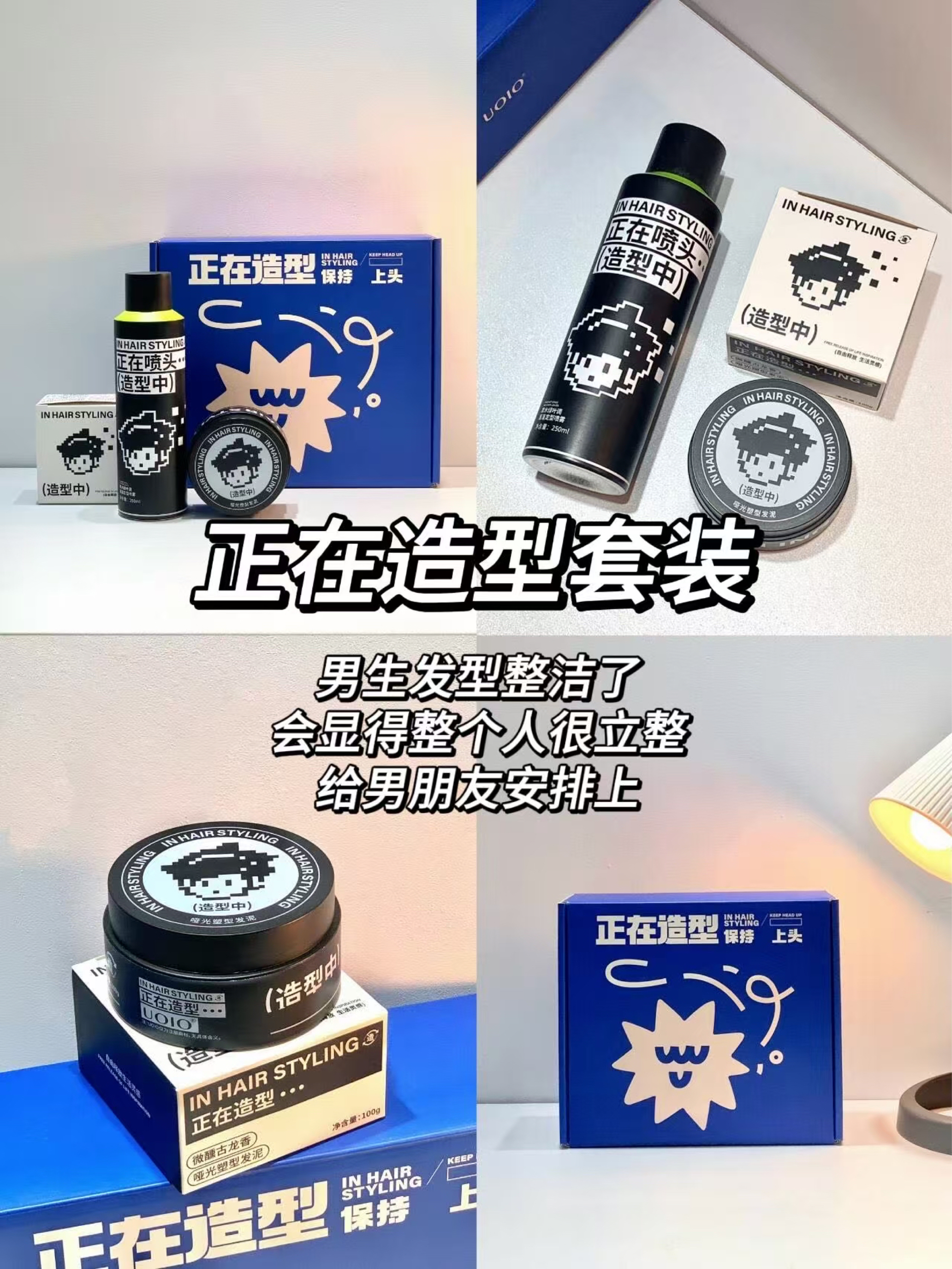 本篇笔记关联了【男士专用】VE 控油保湿护肤套装 洁面150g+水120ml+乳100ml+面膜6片/盒*2盒+白泥面膜120g、uoio 哑光塑型定型喷雾 持久造型 草木绿业调、uoio 哑光塑型发泥 蓬松自然 古龙香等商品,为用户提供真实的使用体验和购买参考。