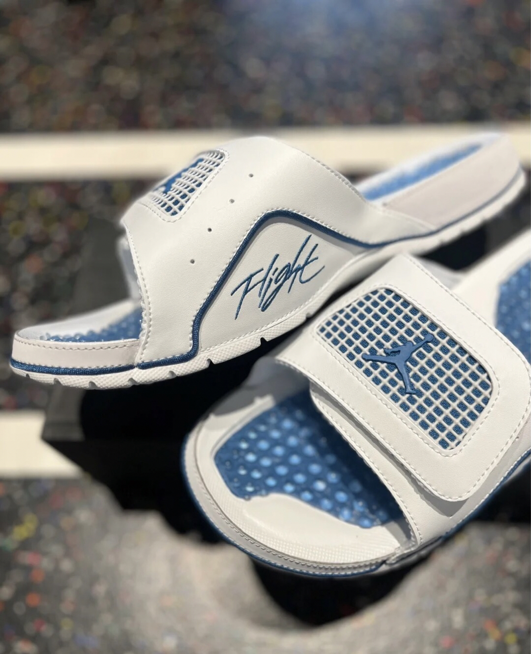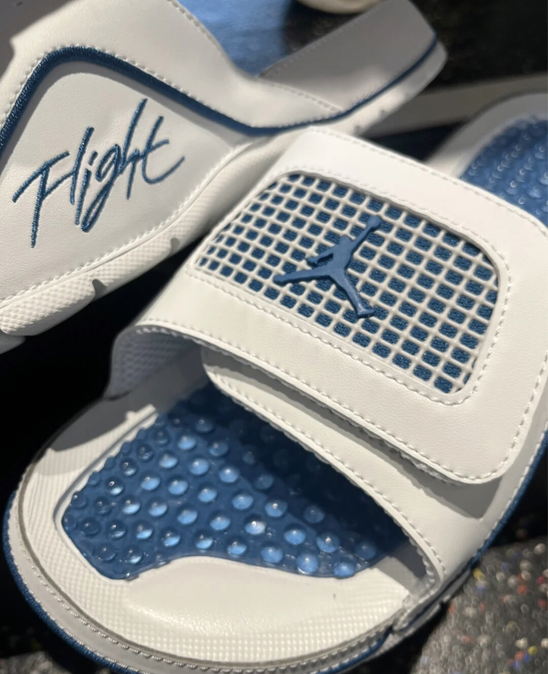 Nike Jordan 拖鞋颜值担当脚感QQ弹 传承经典,日常佳选。 又到了穿拖鞋🩴大裤衩🩳的季节 夏天穿没错🔥🔥🔥 Jordan Hydro IV Retro 男子拖鞋采用柔软鞋床,搭配可自行调整的足部固定带,缔造干爽舒适感受。 显示颜色: 米白/浅灰/工业蓝