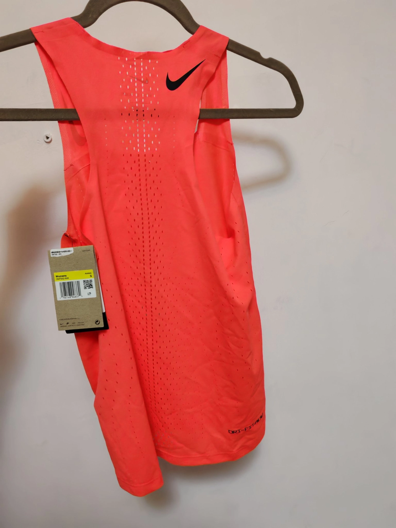 今天分享一款耐克跑步背心 背心是耐克前沿科技的速干面料,前后各有一个黑色的耐克logo,穿起来好酷。小姐姐们可以试试,现在得物上价格还算便宜。 跑步穿上比较透气散热,一件不错的跑步马拉松背心。 尺码推荐:身高160体重55穿M合适。