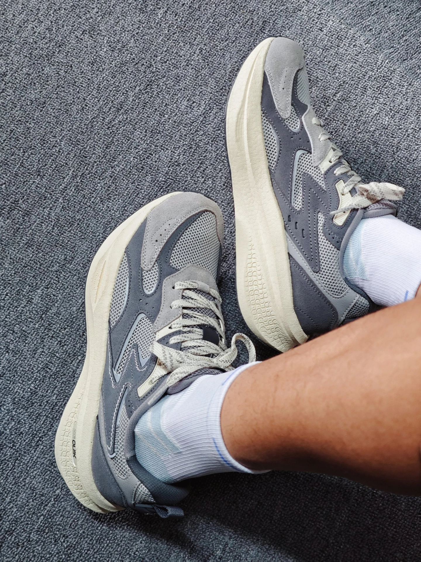 家人们,我发现一双不错的休闲鞋👏。它整体是复古风格,米黄色中底搭配灰色多材质鞋面,颜值很可。穿着轻便,透气网面夏天不闷脚。性能也挺不错,耐磨防滑。感觉上班族、学生都合适,送家人当礼物也 ok。就是刚穿时鞋带可能得常系系~💖