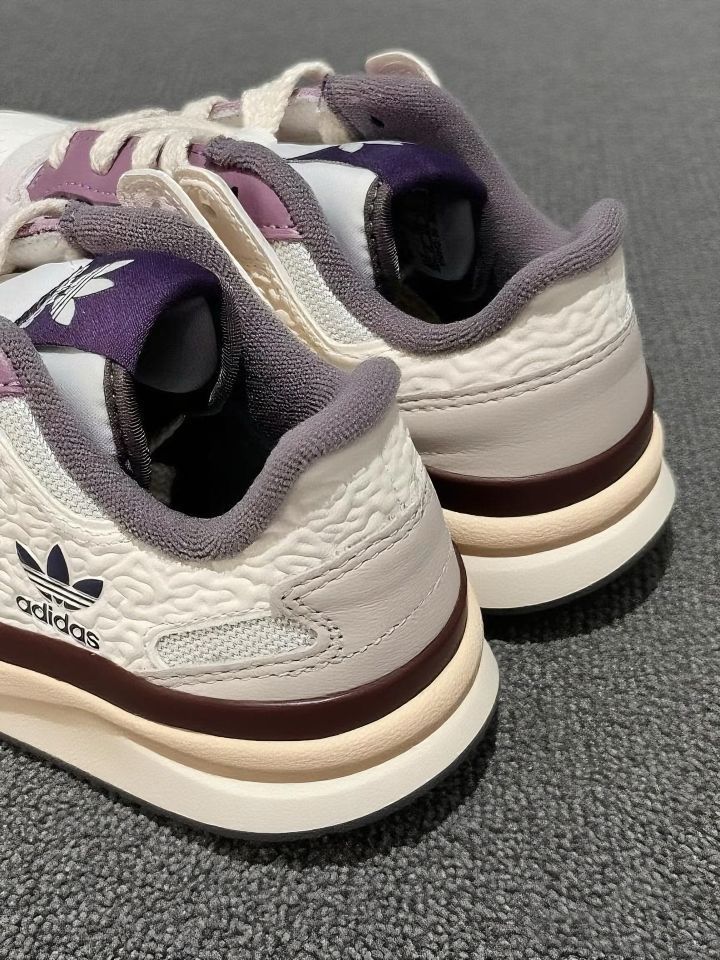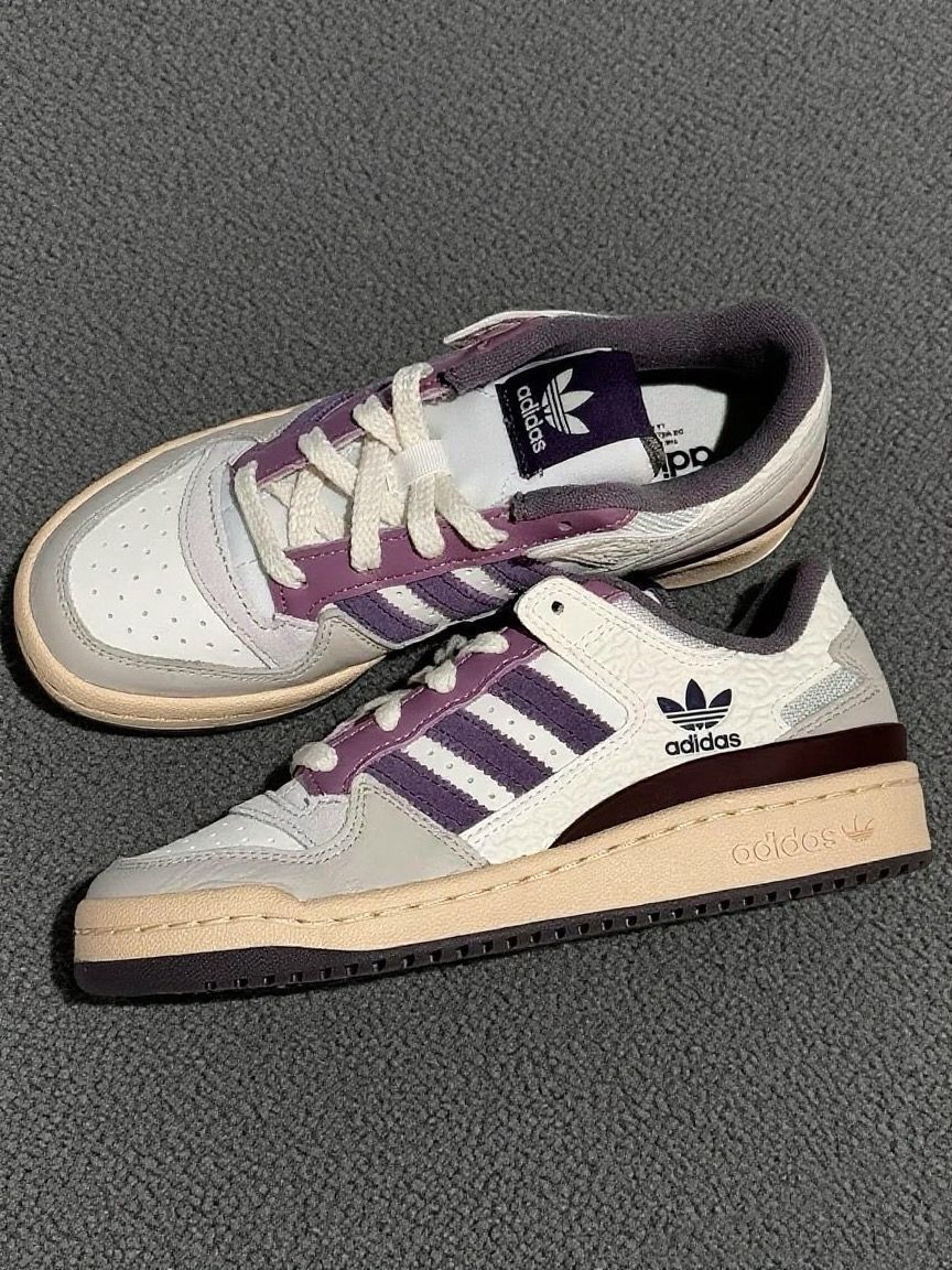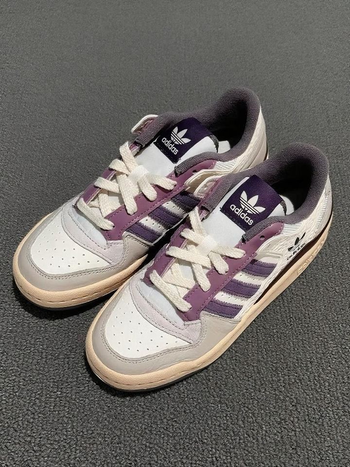 这是一双阿迪达斯的运动鞋。阿迪达斯是全球知名的运动品牌,在运动装备领域有着极高的知名度和广泛的影响力。 阿迪达斯旗下有多个系列,像这双鞋上的三叶草标志,代表的是阿迪达斯的经典系列,这个系列往往会融入一些复古元素,在设计上比较注重潮流感和时尚度,很受追求个性与舒适的消费者喜爱。 从这双鞋来看,它在配色上采用了浅色系搭配紫色元素,显得比较清新又有亮点。在材质方面,通常会选用比较优质的材料,比如...