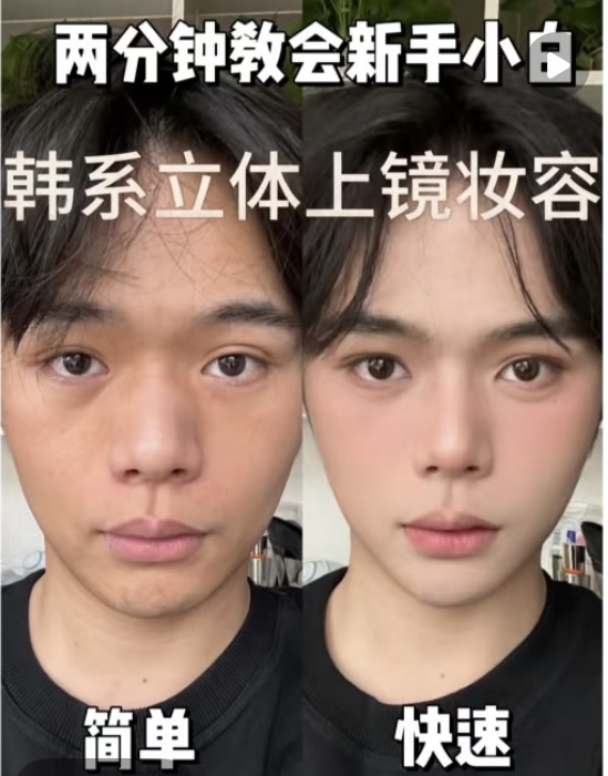 干净清爽男大妆容 简单好上手 新手包学会 让你轻松变好看 五官立体皮肤干净