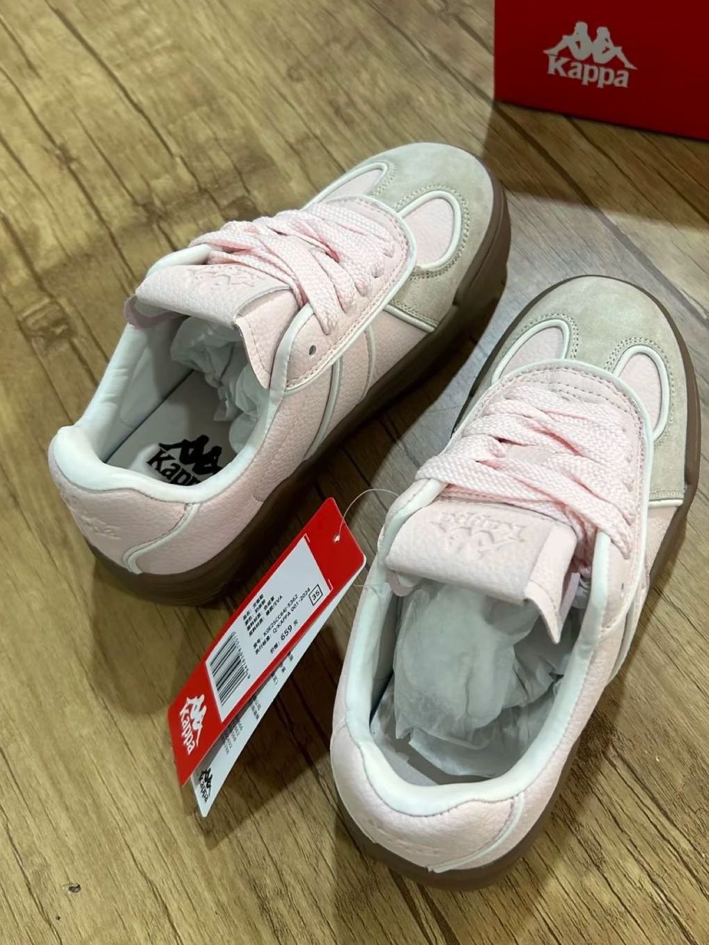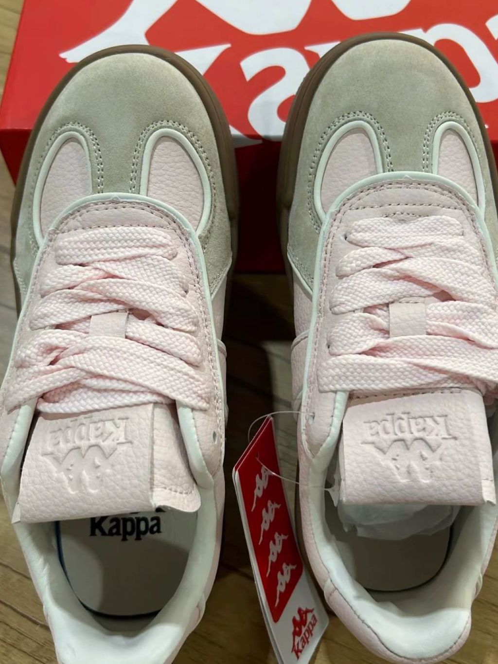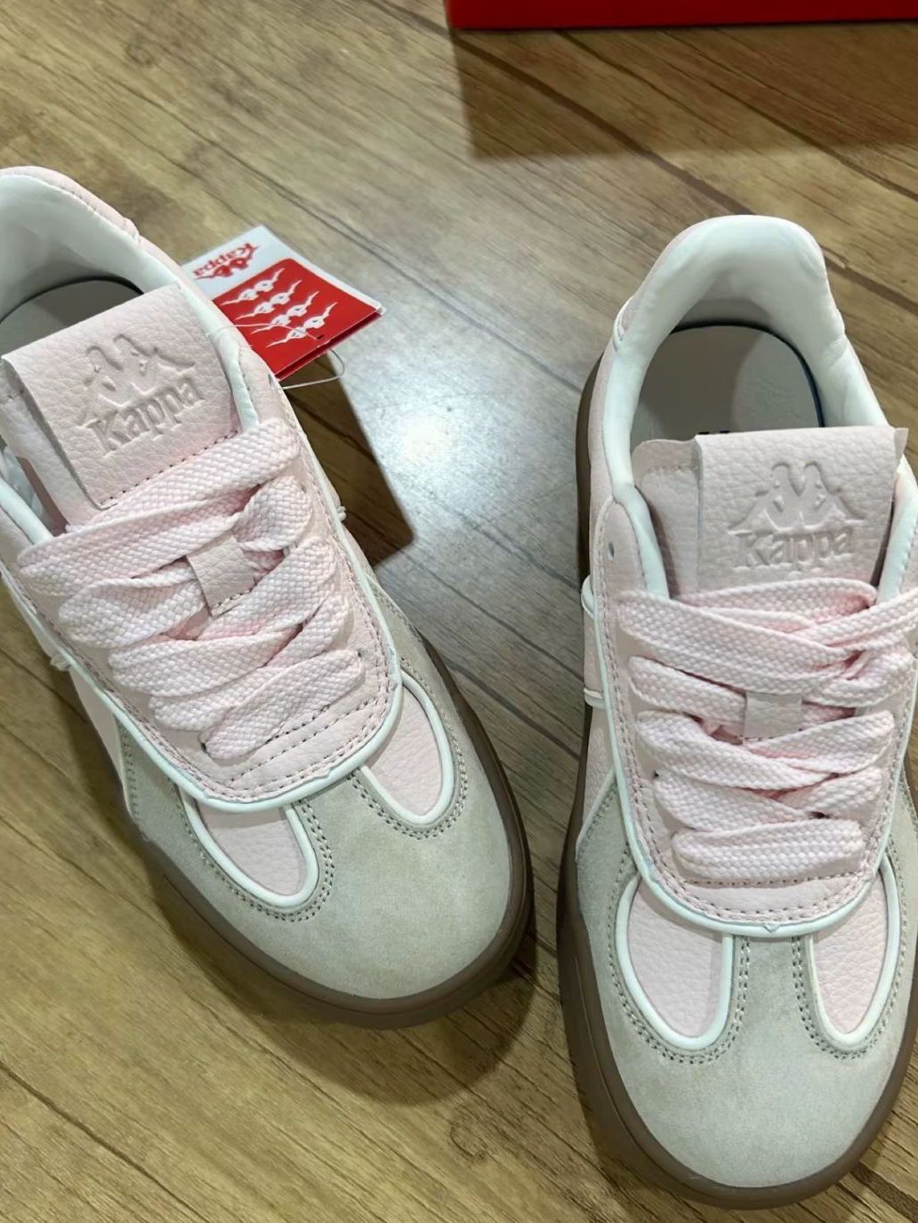 甜妹本命鞋!Kappa这双粉棕板鞋绝了 被问爆💥 谁懂啊!Kappa这双粉棕配色板鞋,简直是甜妹天菜✨ 浅粉鞋面像樱花落在脚上,搭配浅棕麂皮,复古又清新,奶fufu的质感,日常出街、校园漫步、约会穿搭都超适配~
