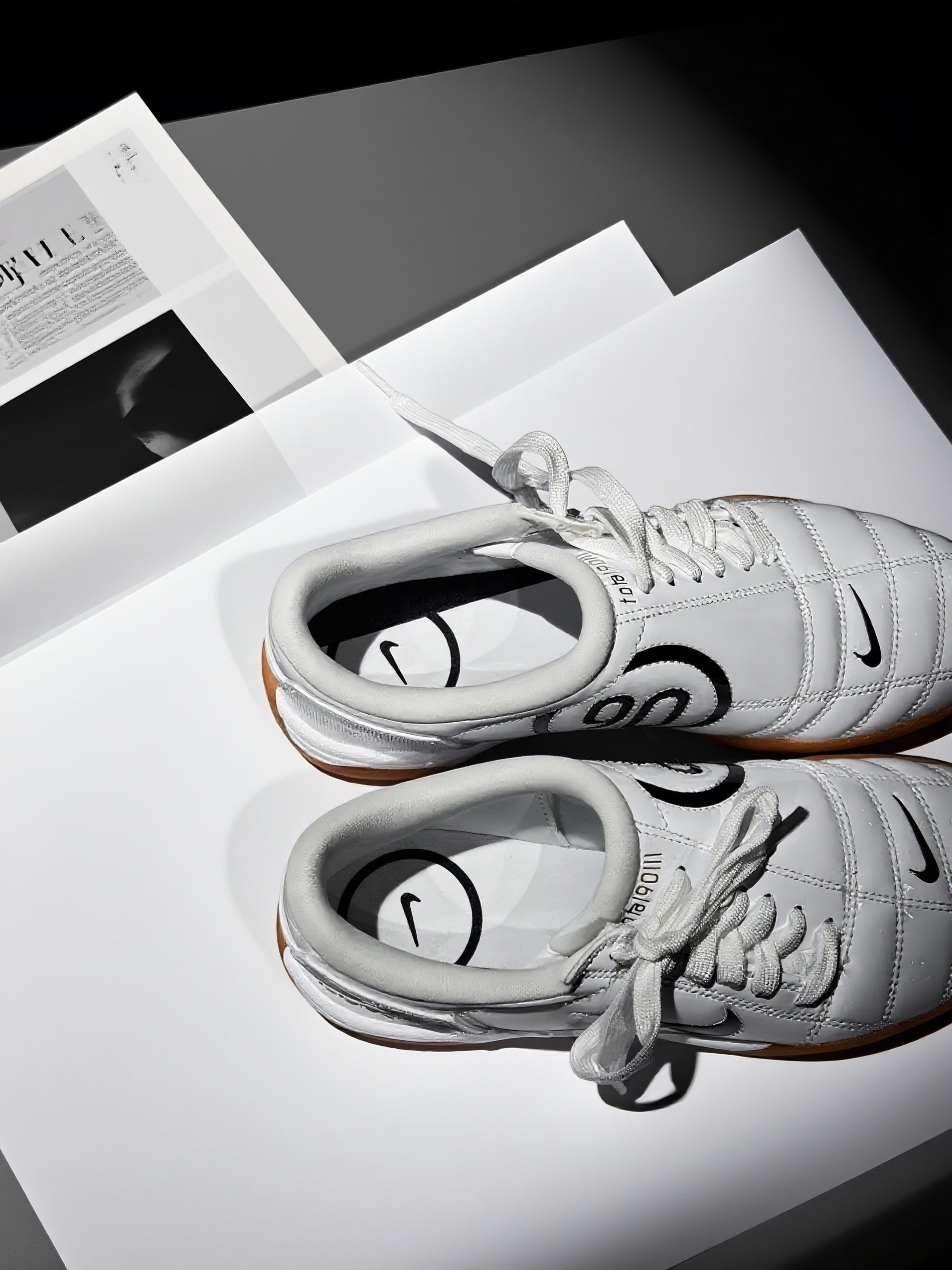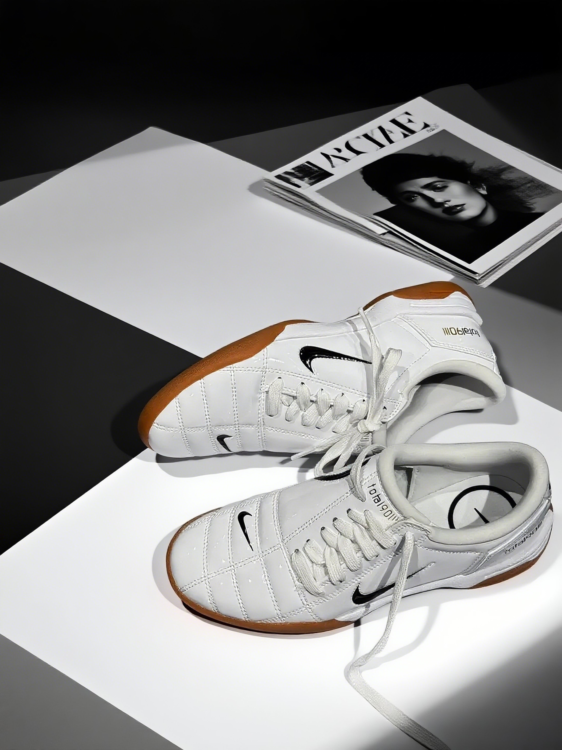 以为足球鞋只配球场?这双Nike T90直接杀疯日常!白棕配色复古到骨子里,上脚包裹感绝了,踢点球发力“嘣”一下超带劲,转头搭灰运动裤+crop top! 尺码警报👉🏻平时Nike跑鞋37,这双37刚好(宽脚拍大半码!) ⚠️唯一小bug:白色皮革怕脏,雨天慎穿!