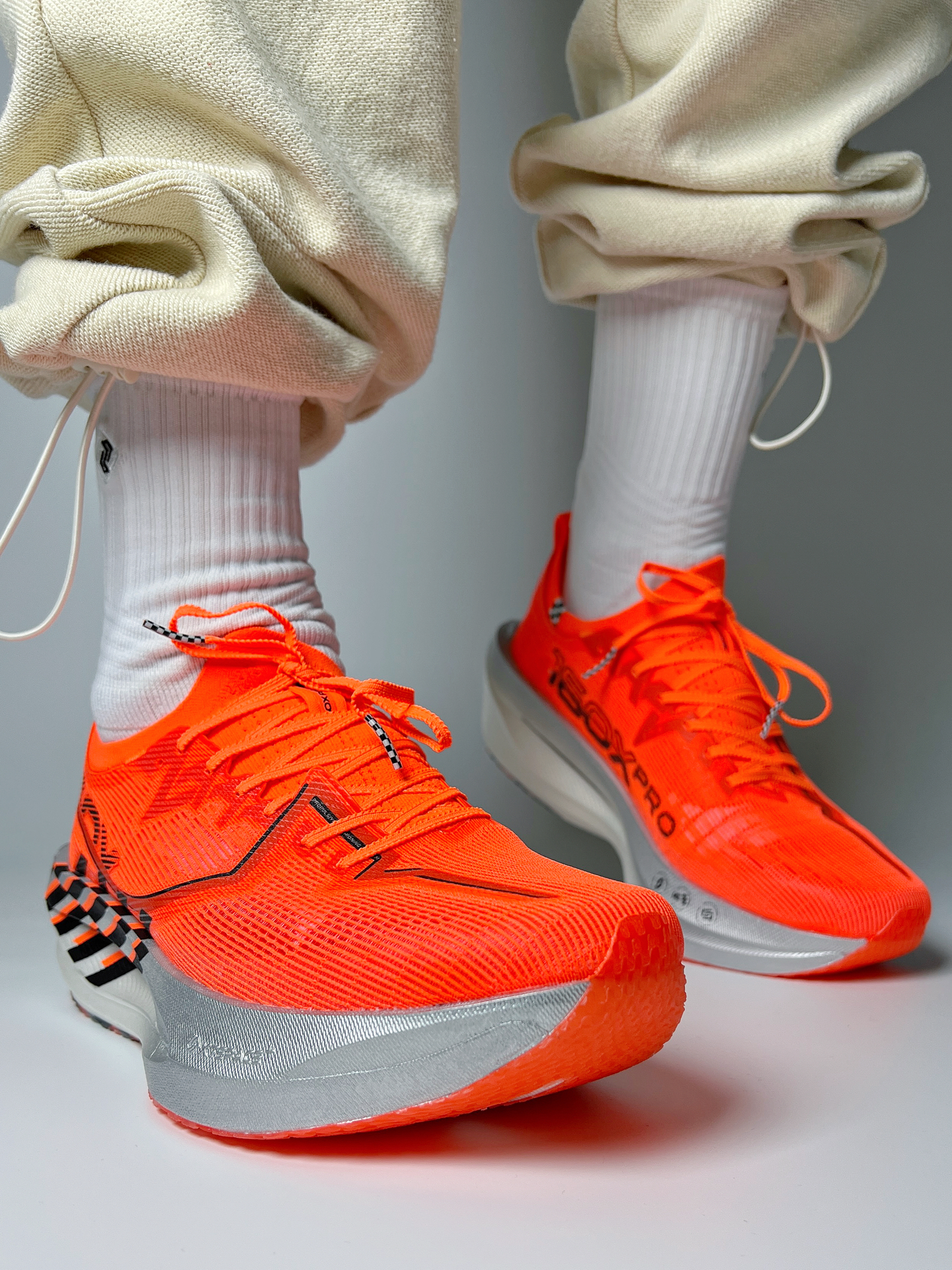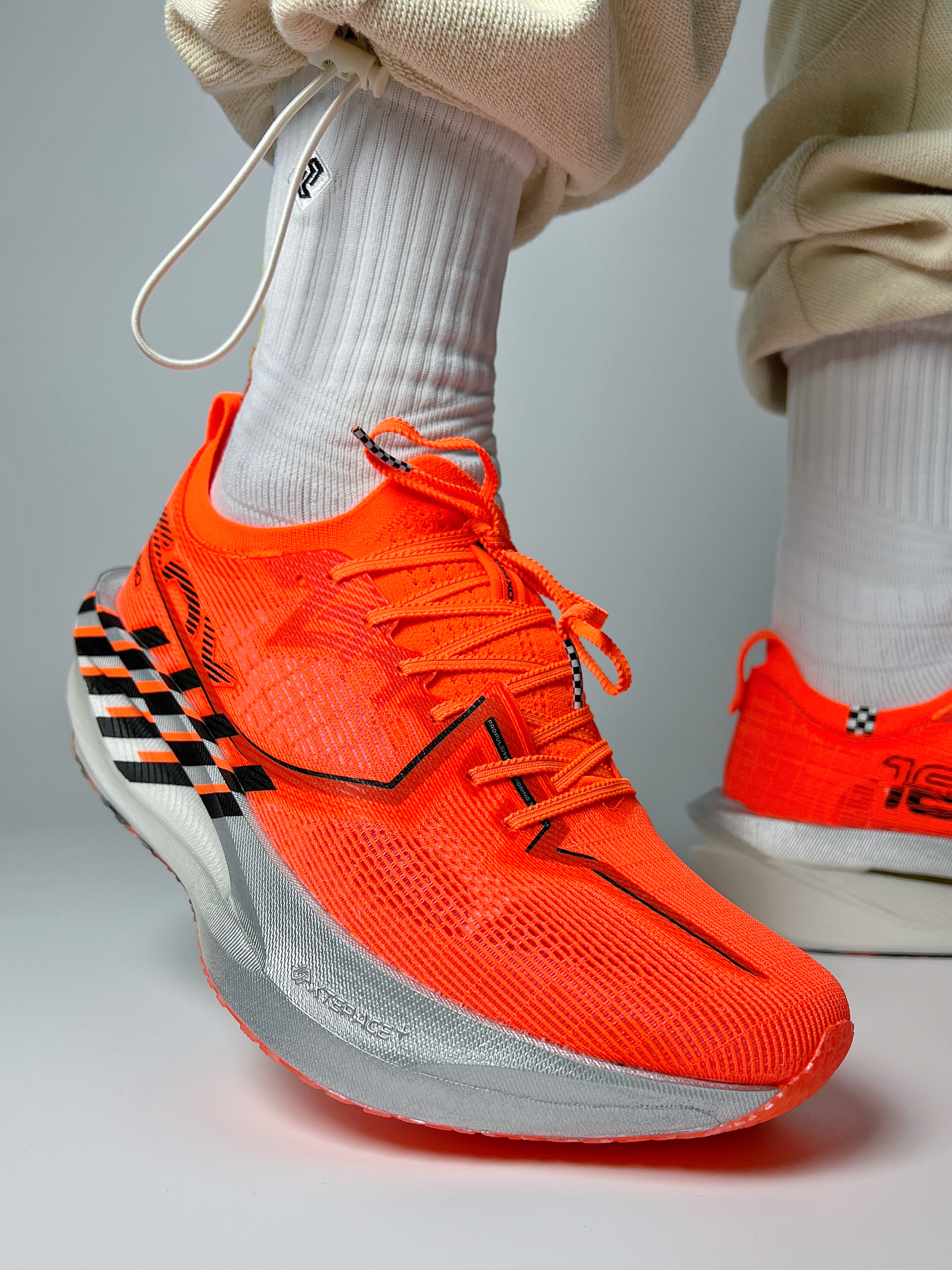 这双鞋的定位呢是专业马拉松竞速跑鞋,鞋子的配色呢以暴力橙为主,鞋子的设计灵感是源自于赛车🏎️,在鞋子后跟处用到了黑银色涂装,中底呢为白银色渐变设计,整双鞋的颜值呢是很有流线感的,外观辨识度很高 尺码方面鞋子码数偏大,建议选小半码,适配大部分脚型#韭菜的上脚频道 #特步160X7代 #特步160x7PRO #特步跑鞋