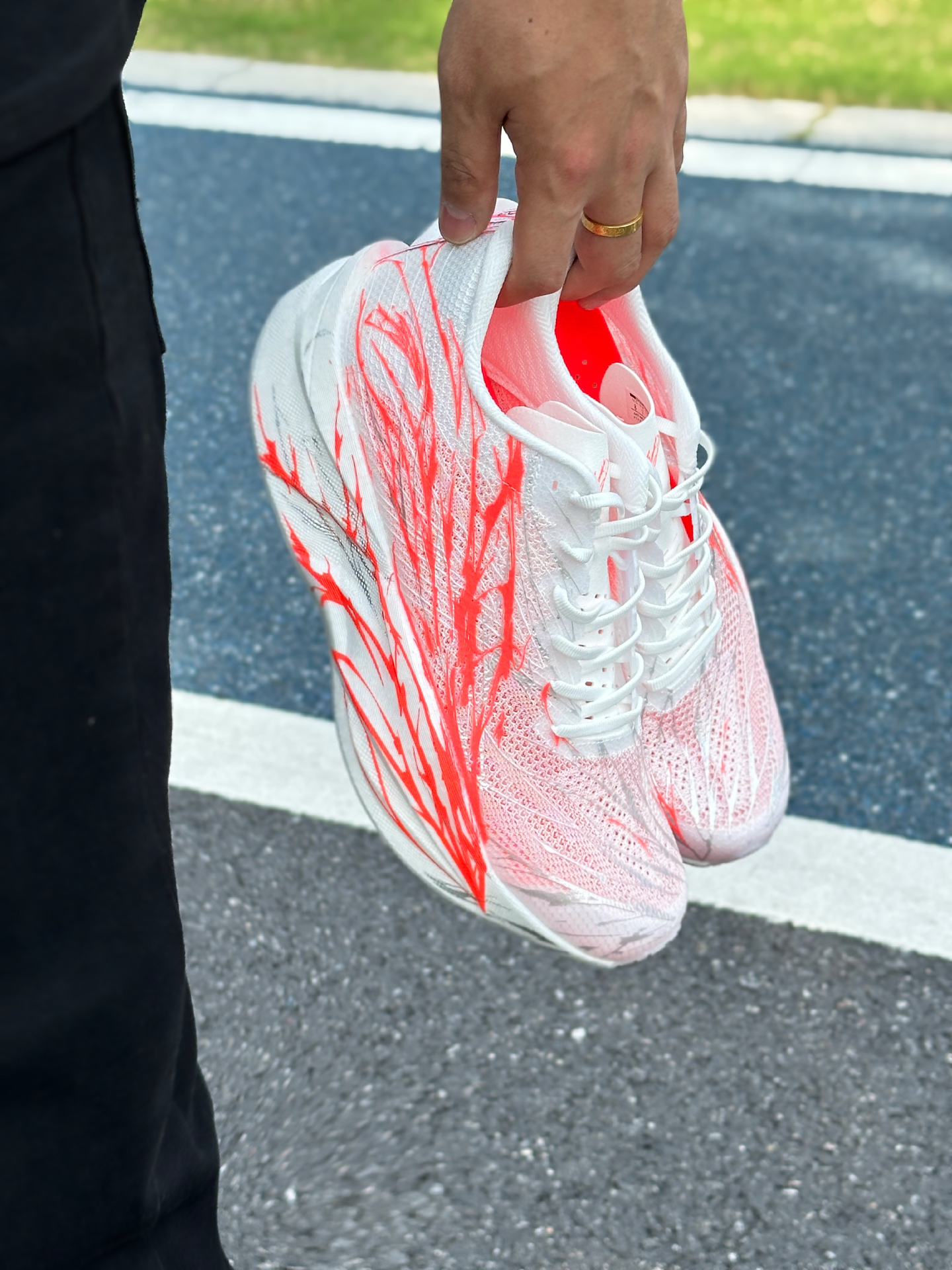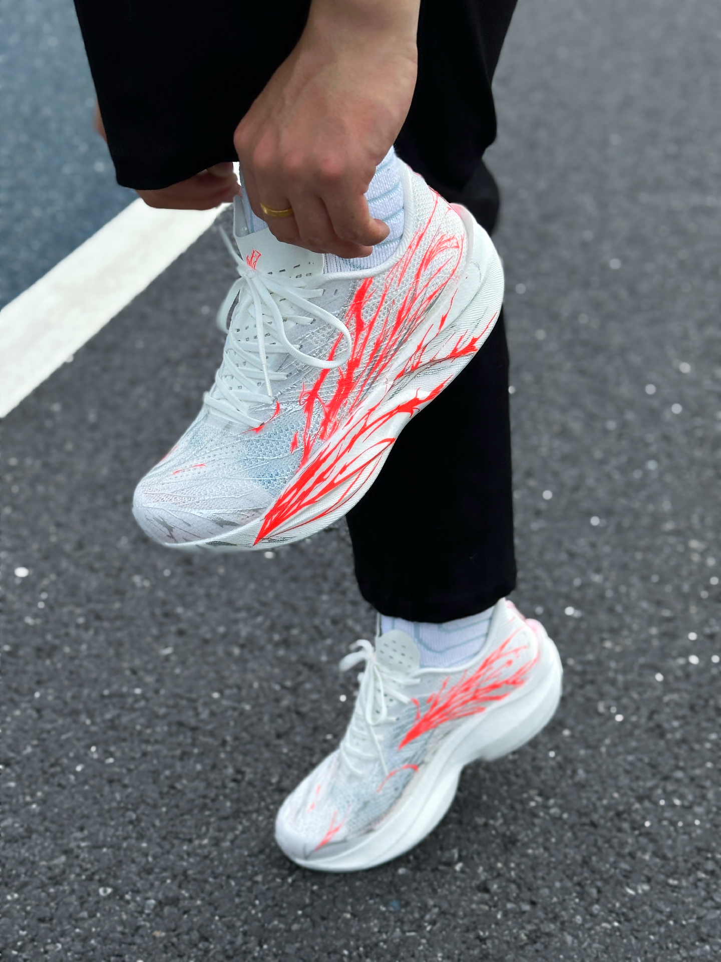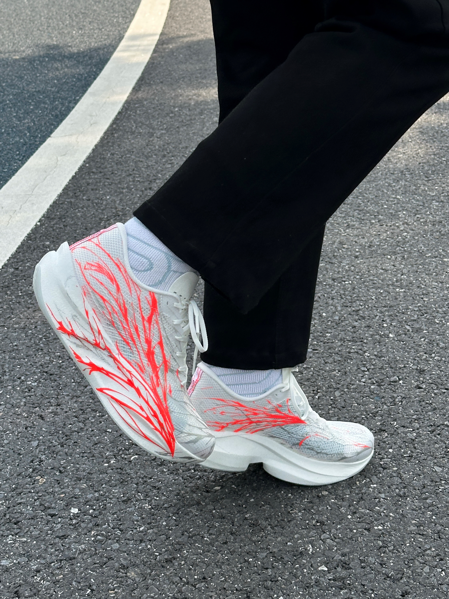 这双安踏C202 6代穿了一个星期左右了!平均5分配,每天大约五公里左右,今天就和大家聊一聊我的体验和感受 我入手这双鞋有一部分原因是因为这个心跳配色!结合肌肉感的鞋身线条,回头率拉满!白红的配色日常也好搭配 鞋面大网孔织物结合局部热熔压胶,透气性和强度都不错,现在这个季节跑起来能够感受到灌风感,打孔的绒布鞋舌进一步提升透气性,上脚很舒适,后跟内里填充比较饱满,上脚的包裹锁定感拉满 中底双层...