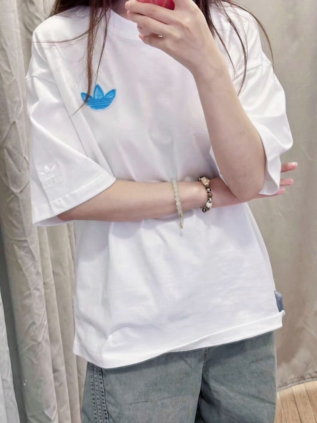 这件adidas originals的白T还挺喜欢的~ 面料软软的,贴身穿像裹着云朵一样,夏天穿也不闷,逛一天街都自在。 男女同款,宽松版型不挑人,甜妹或酷盖穿都合适。白色很百搭,配牛仔裤、工装裤,或者叠穿吊带裙都好看。