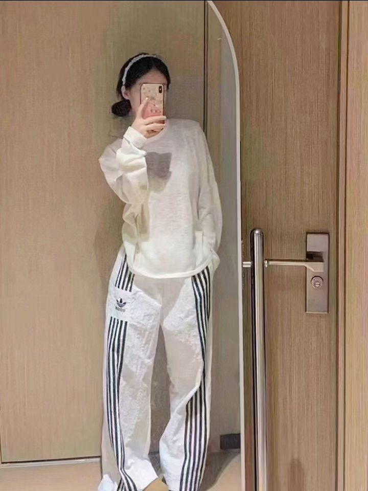 这条adidas的adicolor Firebird运动裤还可以~ 防晒挺好的,面料厚实点,有UPF认证,大太阳天穿腿不容易晒黑,洗过几次也没影响。 面料带点凉感,还有透气网眼,夏天穿不闷,走动时挺清爽,不会黏在身上。 宽松直筒版型,侧边三条纹是老样子,腿粗、胯宽穿着也合适。白色款百搭,配什么上衣都行,Logo印花不显眼但能看出牌子,平时穿或者出门拍拍照都还行~