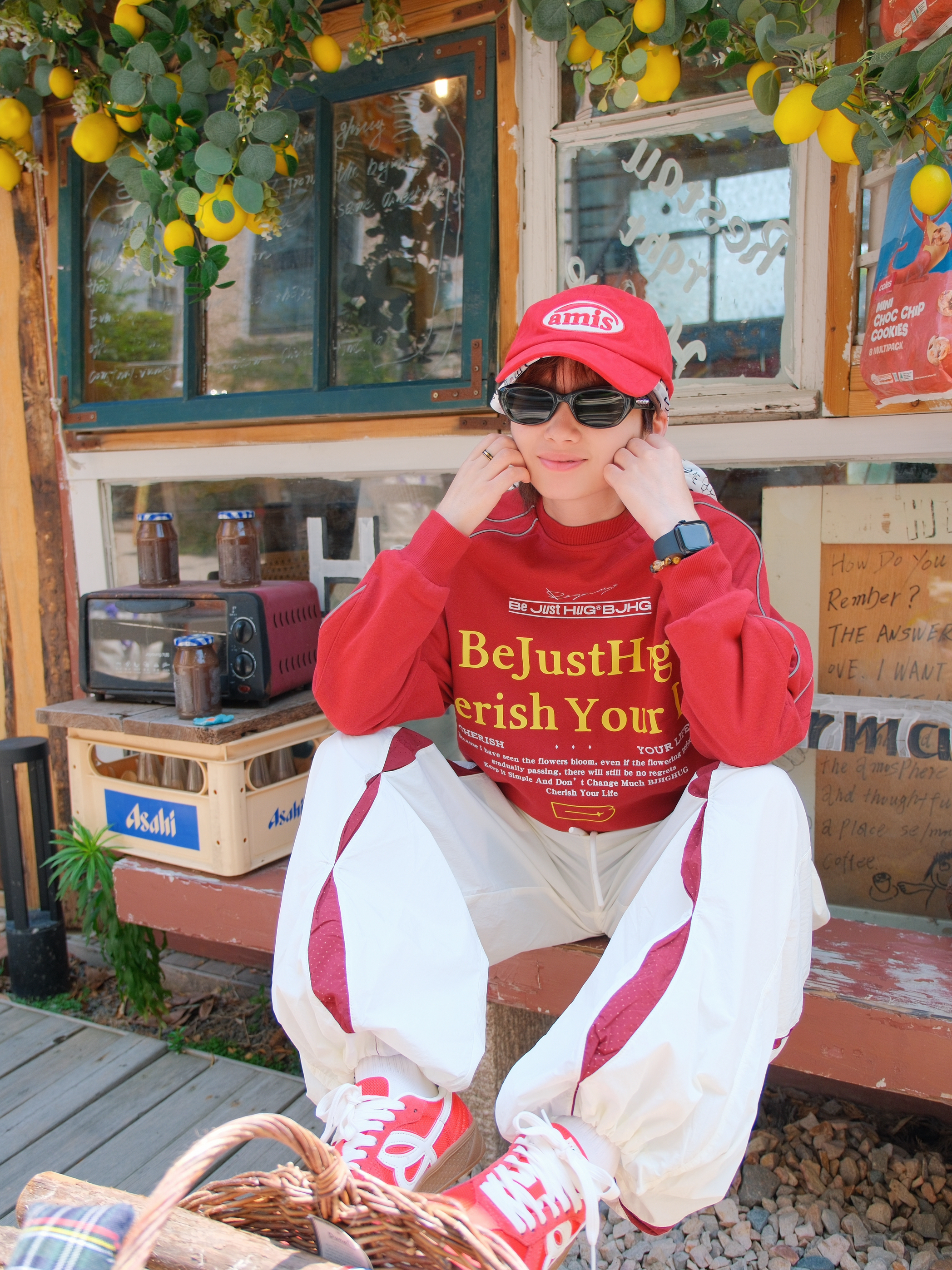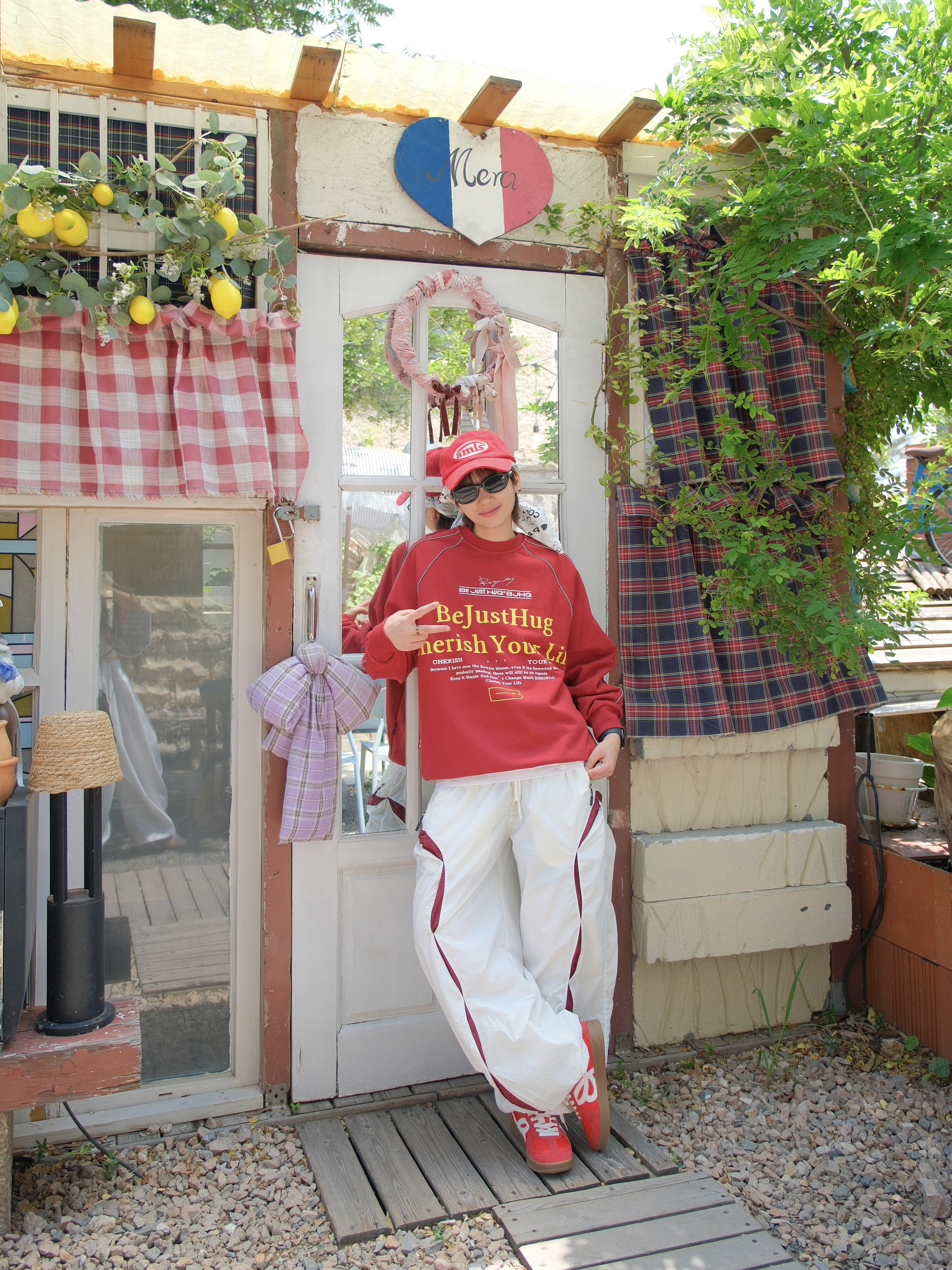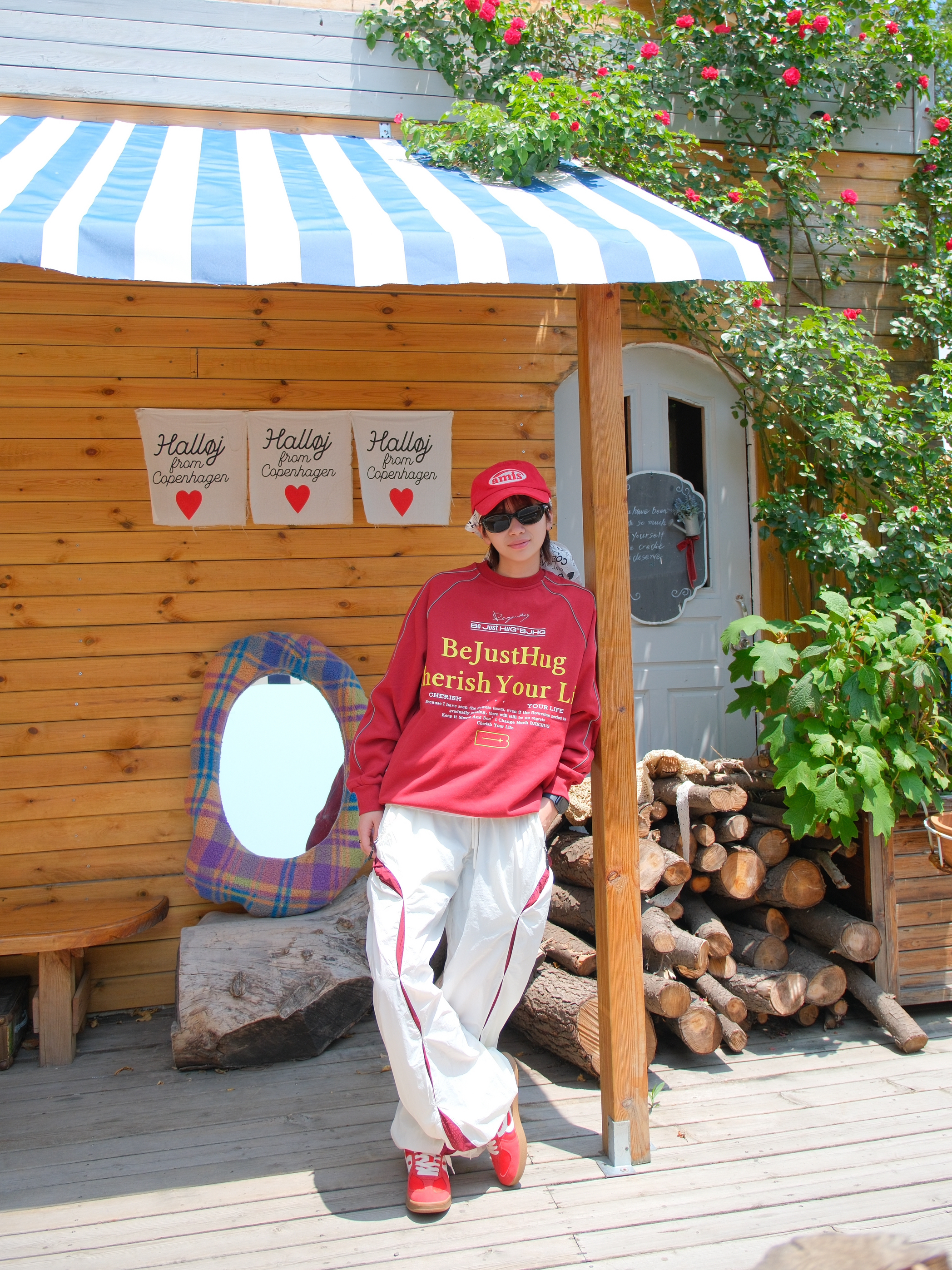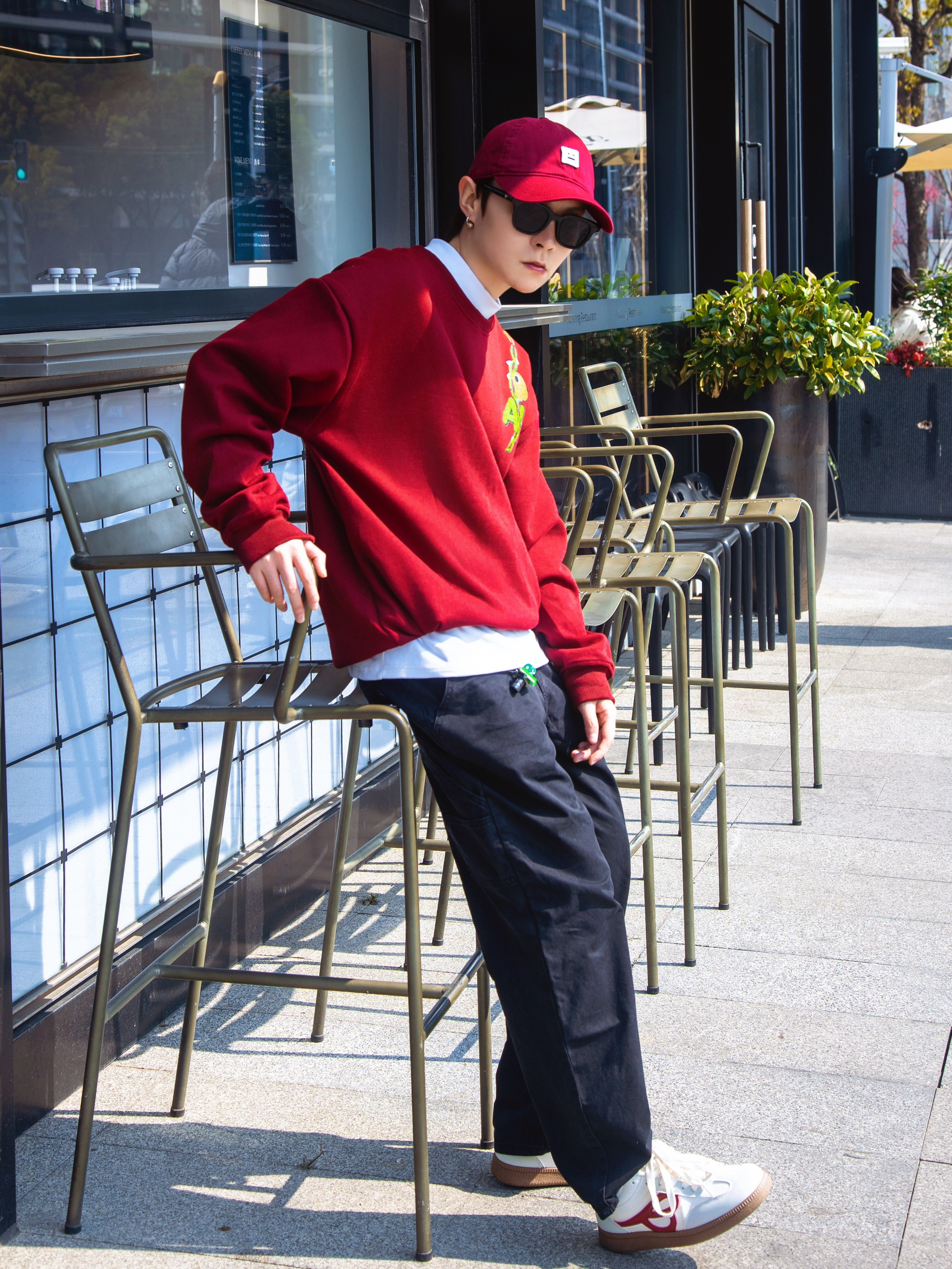 明媚的天气,就想穿点红色系❤️🔥 上身是一件红色的圆领卫衣 撞色字母logo就很有街头范 袖口的线条是反光的设计,白天没拍出来效果 下面搭配白色工装裤 裤腿加了红色拼接,刚好和上衣呼应起来 因为是速干材质,夏天穿着也比较舒服 裤脚抽绳设计,可以切换直筒/束脚两种穿法 鞋子也选了双红色德训鞋 也是第一次尝试头巾和鸭舌帽的组合 有点说唱街头小子那味了 尺码参考:163cm/48kg 上身S码