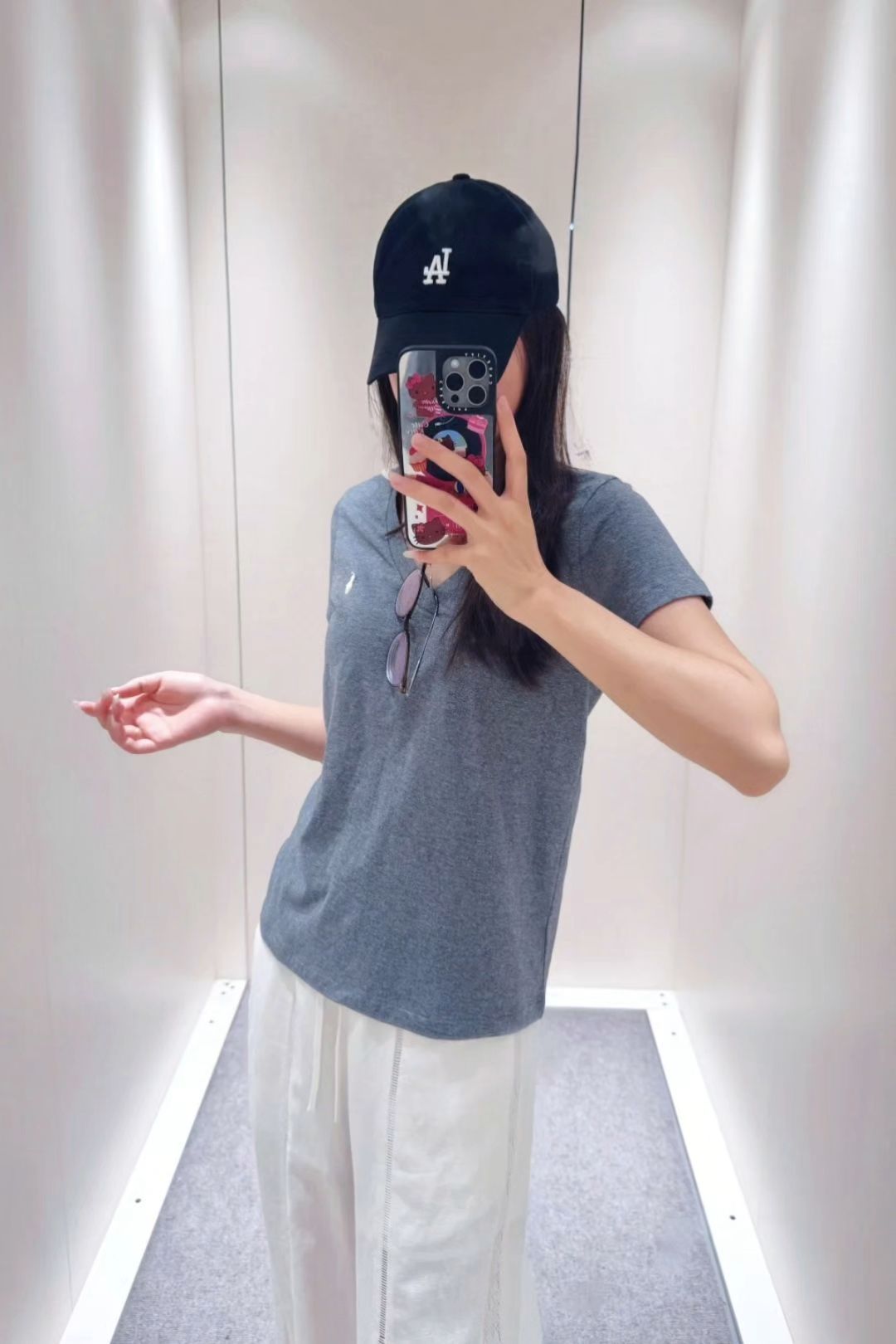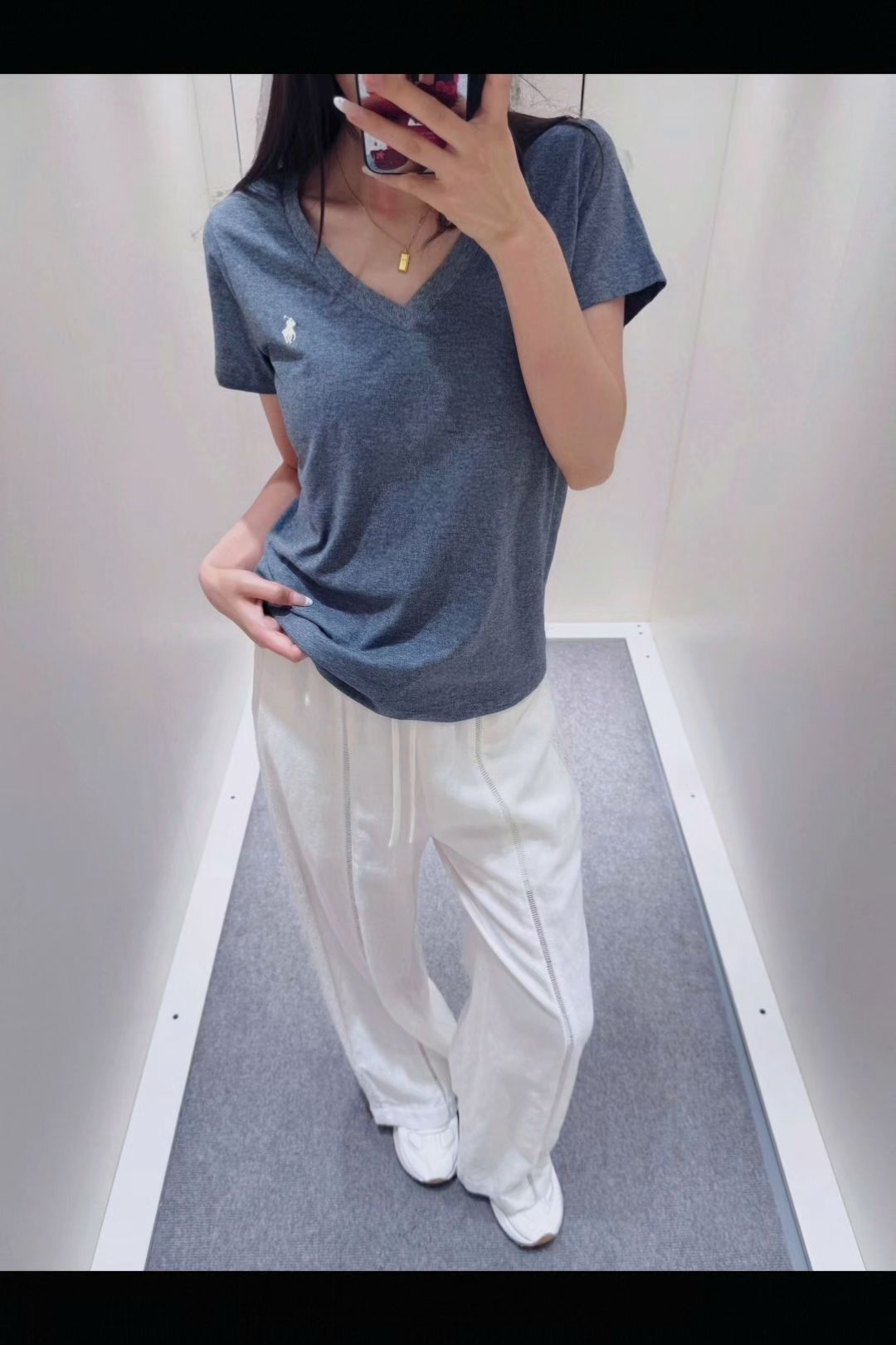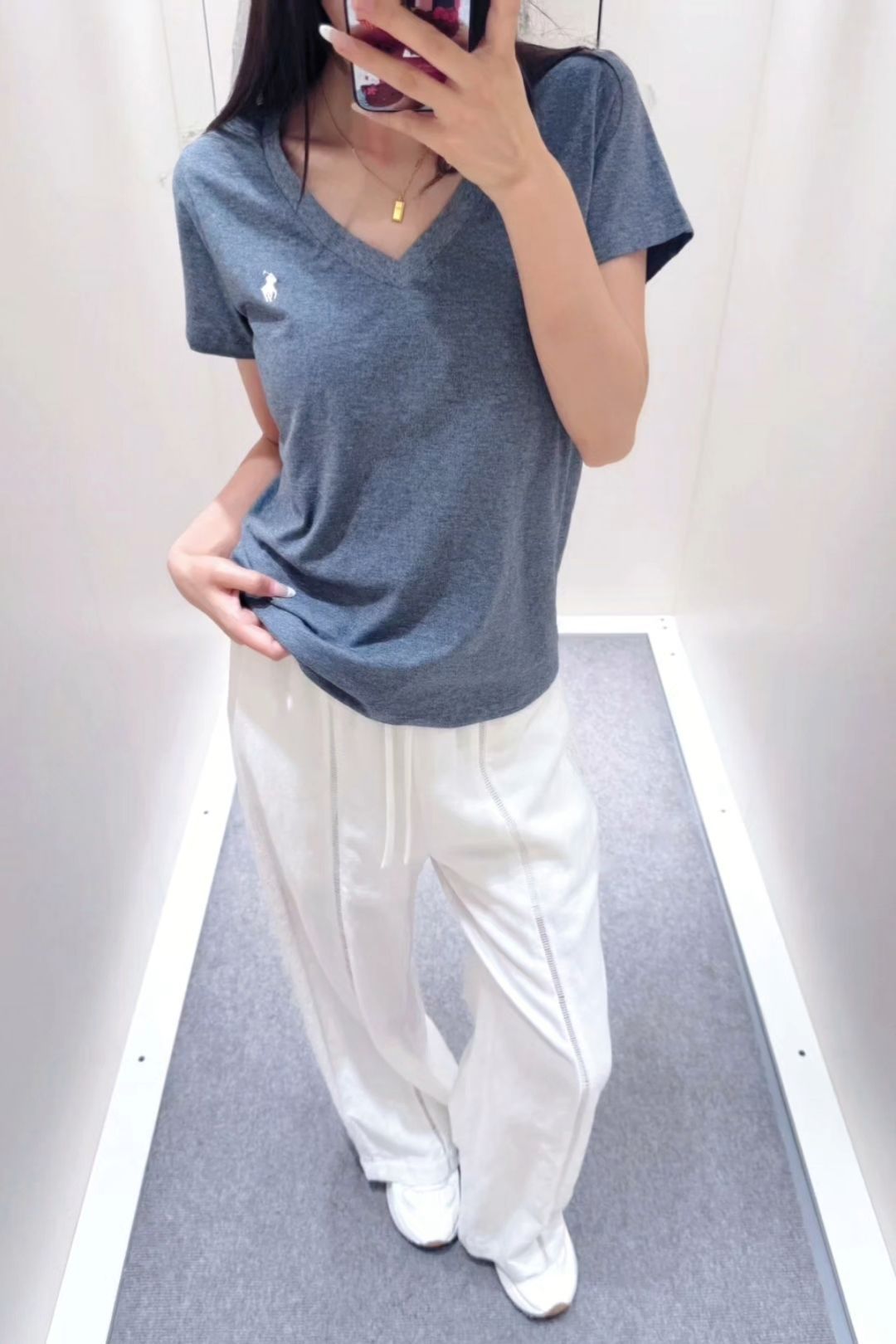 这件小马V领短袖真的爱了 宽松版型穿着特自在,V领还挺显脖子长的 夏天穿清爽又舒服,基础款里的实用选手,随便搭都好看~