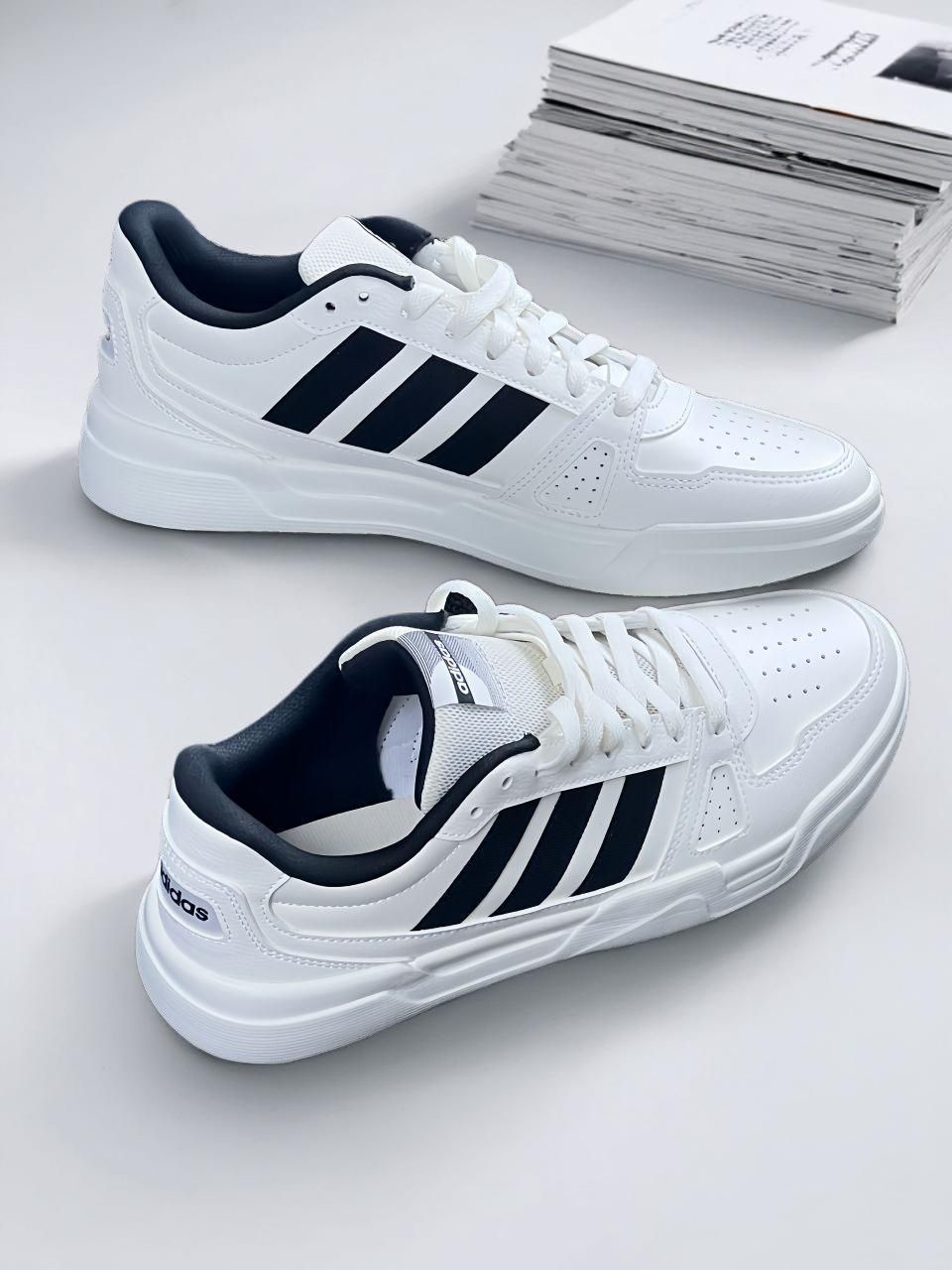鞋柜里的宝藏阿迪啊 这双板鞋尊滴百搭好看! 经典三条杠设计怎么搭都喜欢 搭配我的校服裤少年感有啦!