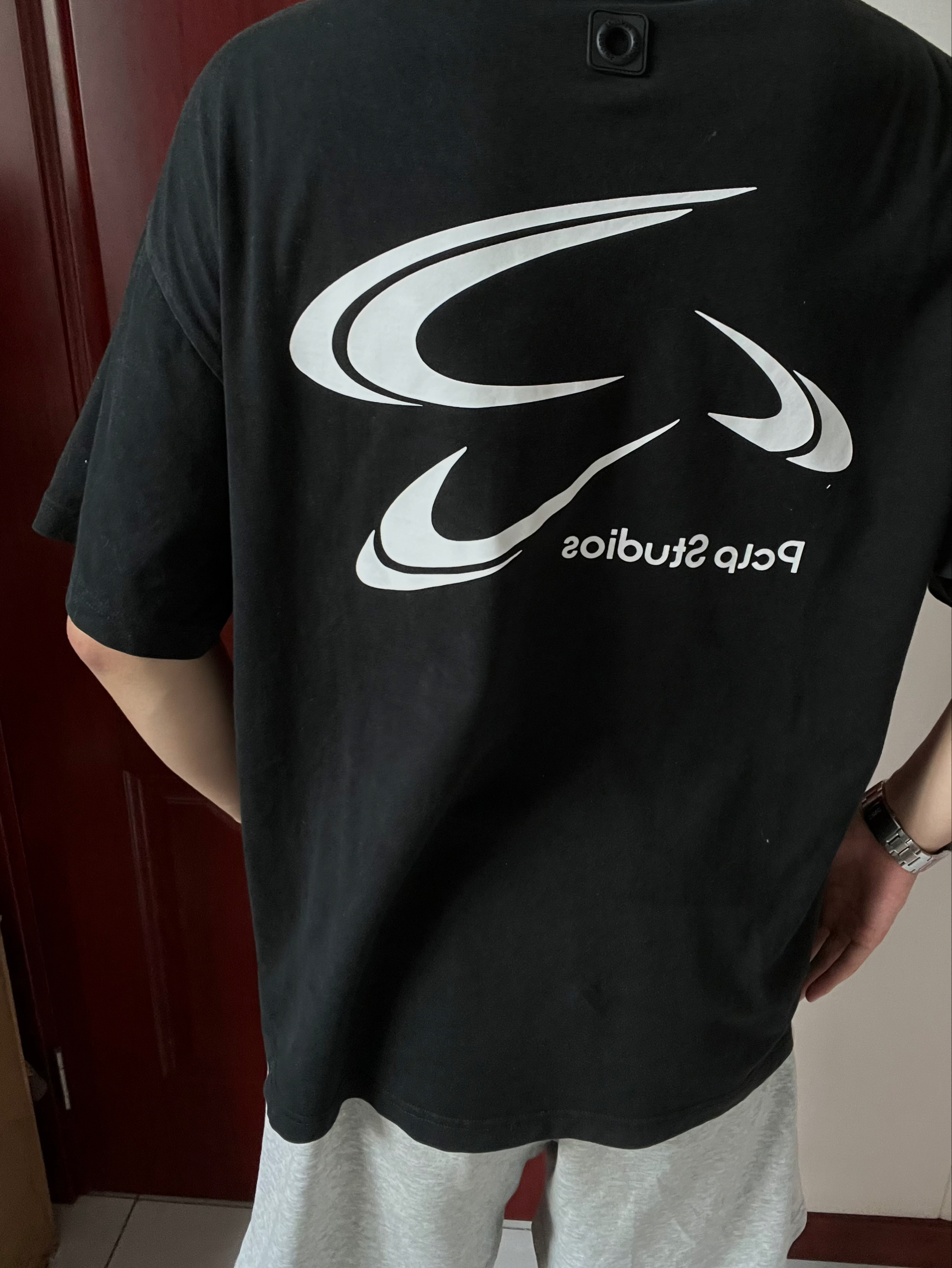 被朋友种草的PCLP 黑色T恤,到手太惊喜啦! 面料柔软亲肤,夏天穿透气不闷汗。 版型是宽松的,对身材包容度高,随便搭条裤子就很有街头感。 背后的刀锋图案立体锋利还不失质感,印花清晰,洗了几次也完全没开裂!无论质量还是性价比都在线!