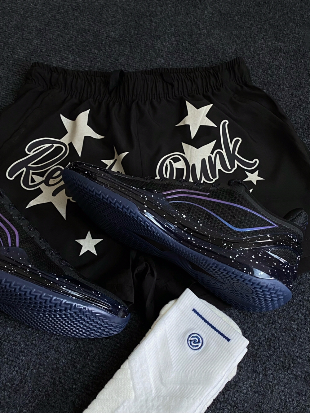 今天我分享下关于利刃4V2黑曜石的美式五角星短裤搭配指南📝正面的五角星和花体字印花真的个性十足,非常浓厚的美式风格‼️不超过膝版型搭配上低帮黑曜石真的帅,喜欢美式风格的bro直接冲🔥 🩳 YIERSH 🧦 UZIS 👟 李宁 利刃4V2