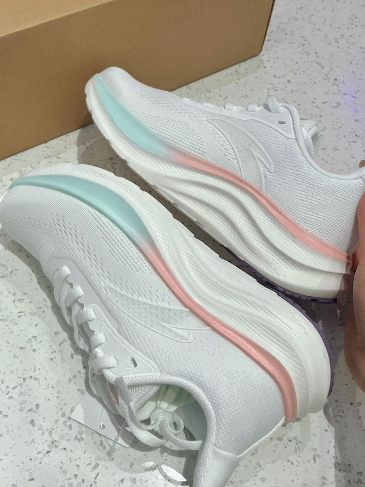 安踏新款轻云2仙女鞋来啦! 纯白鞋面+马卡龙渐变线条可太好看了😘 网面轻薄透气,夏天穿完全不闷脚哦👍🏻 穿起来软弹感十足,日常通勤也超舒服的👏 不管是配小裙子还是运动裤都自带清甜滤镜! 性价比巨高,才一百多就能拥有一双少女跑鞋❗