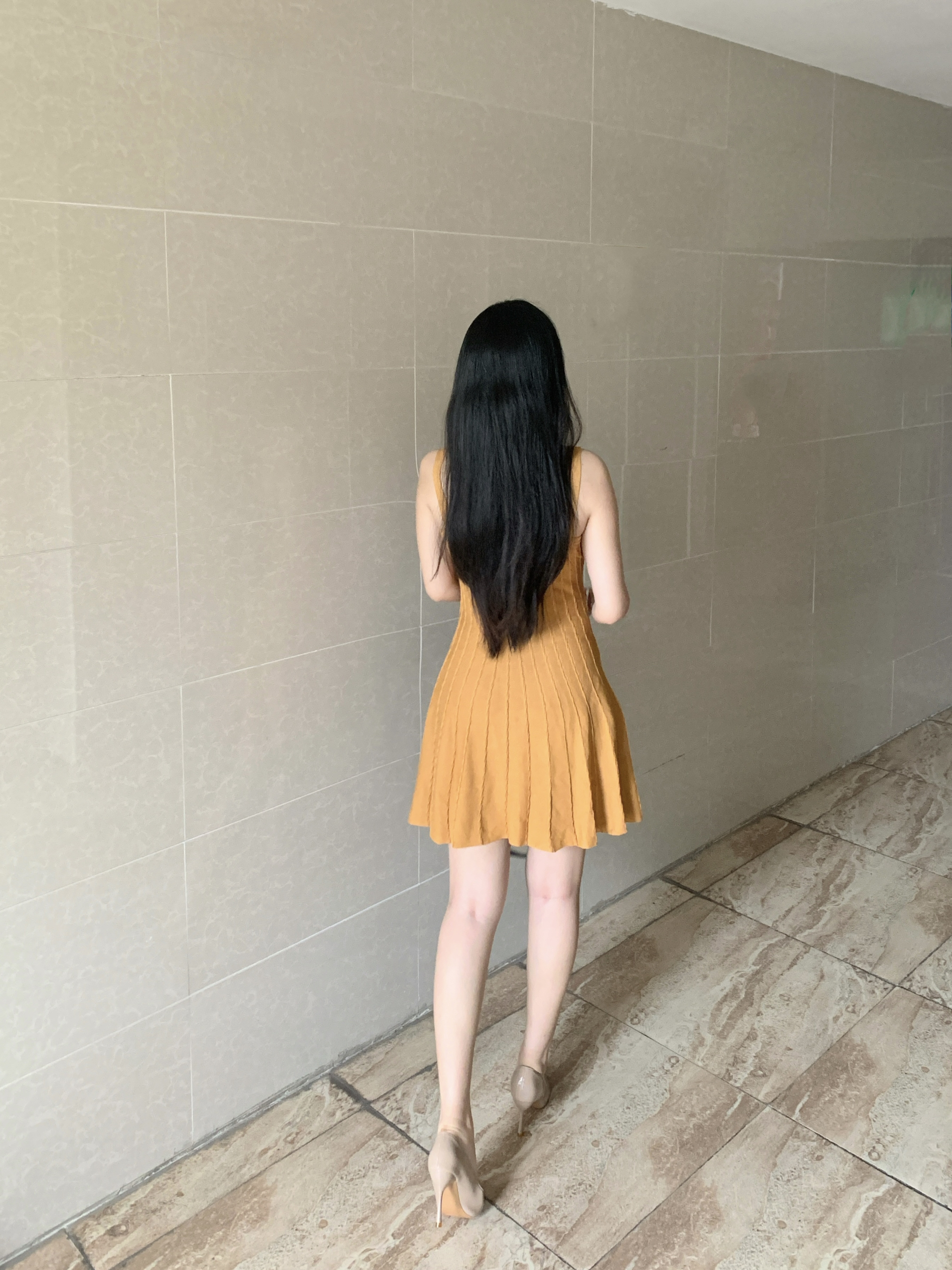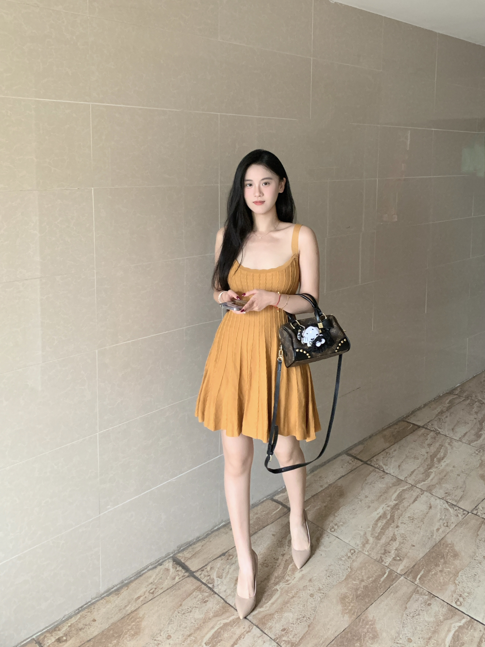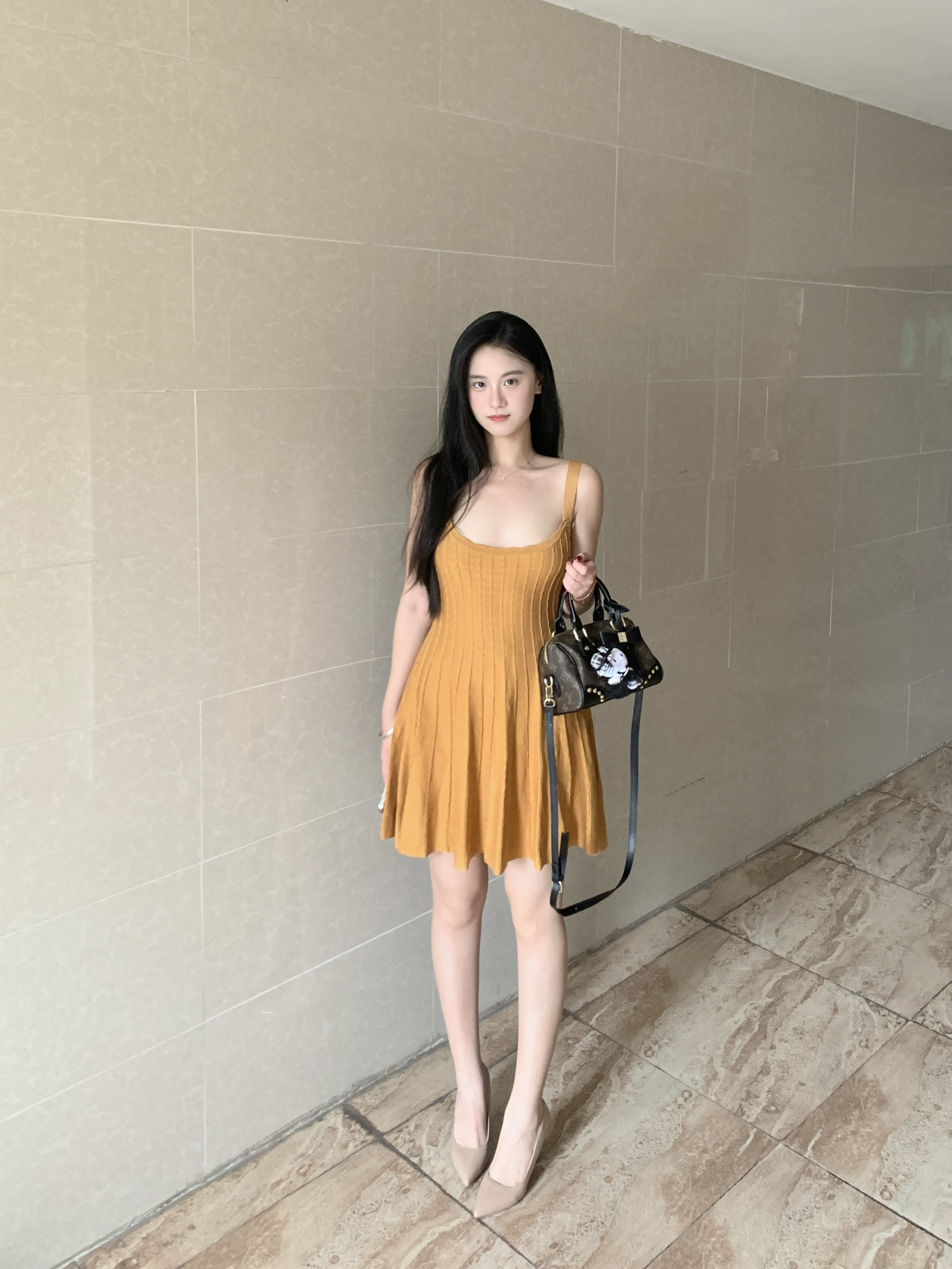 黄色连衣裙十裸色高跟鞋十老花枕头包 一整套穿搭很有古早小说女主的氛围感!纯欲风直接拉满!这套搭配上我近期很喜欢的一双裸色高跟鞋,真的特别显腿长!