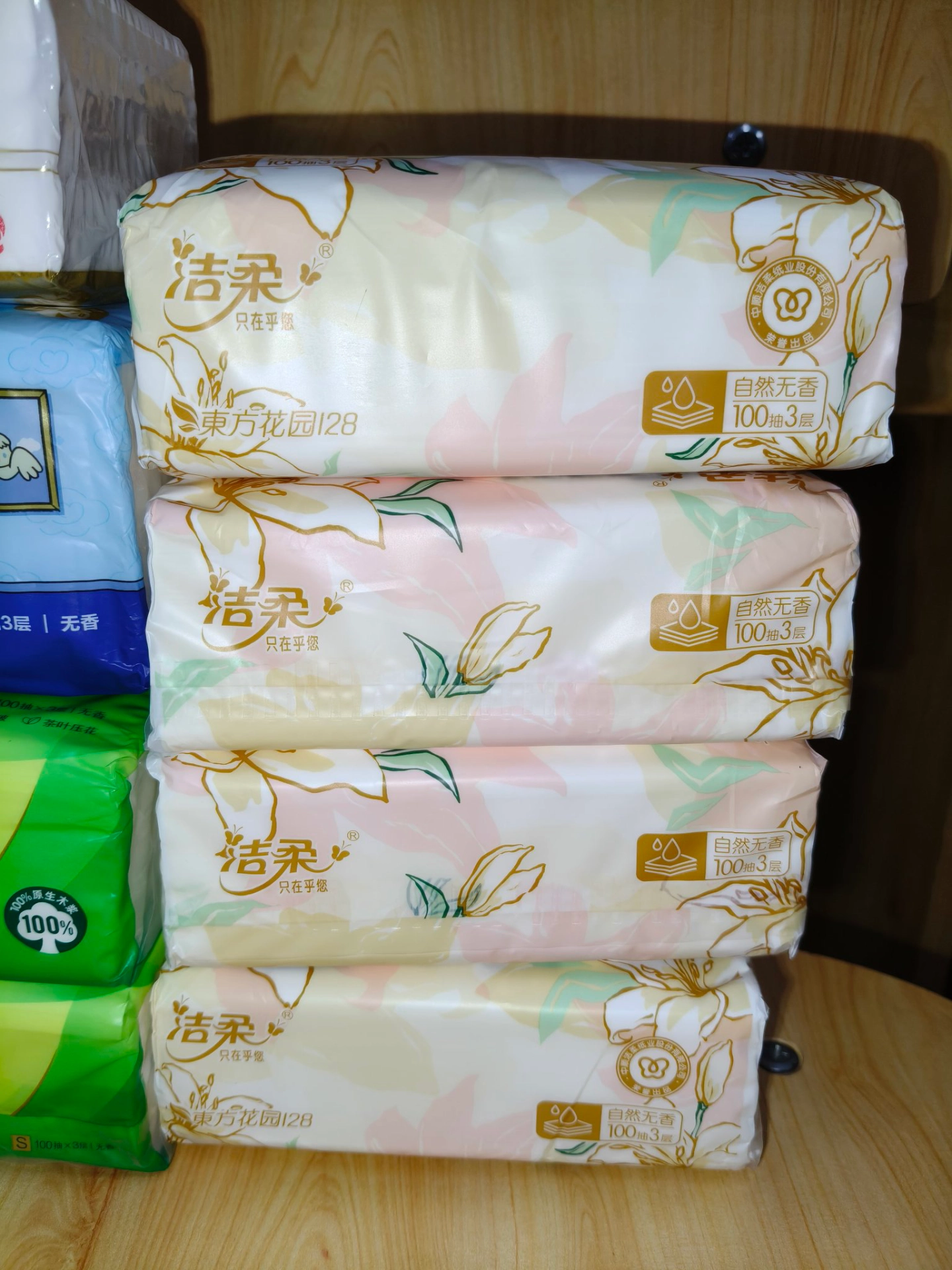 它采用的是原生木浆,我擦鼻子也不用担心掉屑。它有整整3层,可以加厚使用而且是大容量100抽! 擦脸、清洁也很够~这款颜值超高的花卉印花也好看🤩! 如果喜欢特别香气味的人可能就觉得它不够好闻~