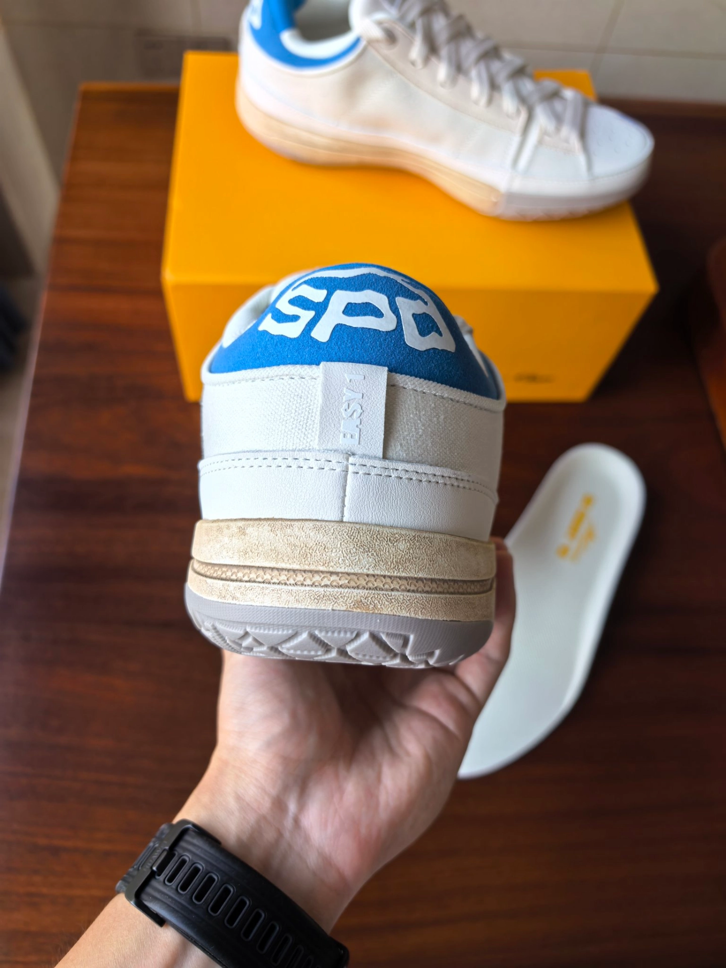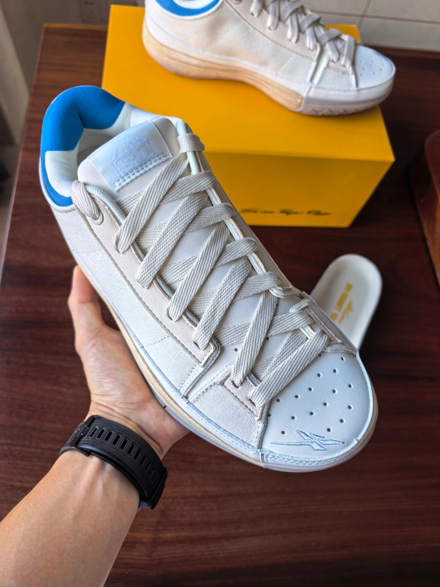 天池配色EASY1,这次是做成了蓝尾脏脏鞋,并且鞋头部分还额外加入了一个SPO的logo,动手能力强的朋友其实可以把他涂成蓝色和后跟进行呼应。#Serious Player Only #2025年中球鞋大盘点 #球星战靴情报站 #新鞋零时差 #球场实战口粮鞋 #这鞋很哇塞