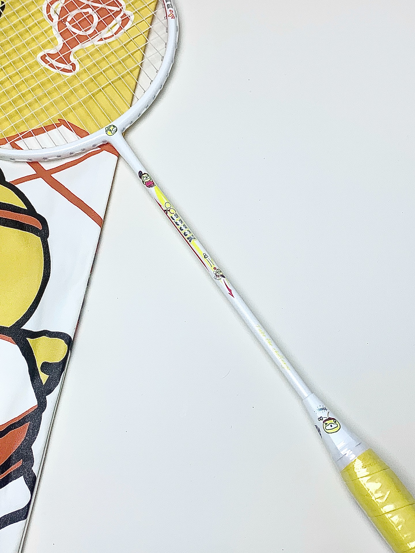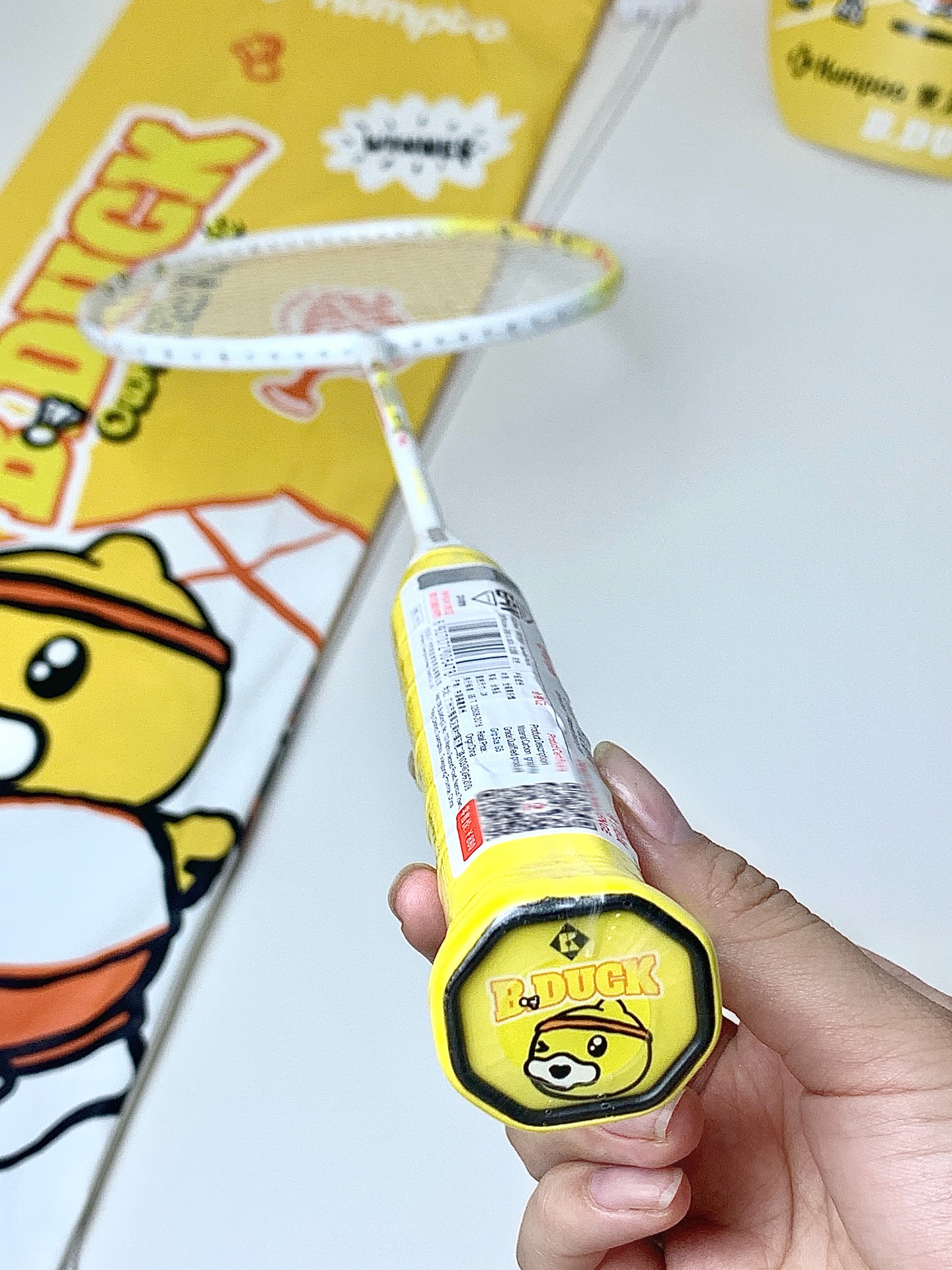 薰风和小黄鸭的联名款球拍真的好好看 一款很适合新手的高颜值球拍 拍子是全碳素4U 超轻对新手来说重量正合适 上手效果很棒,线拉到26磅杀球也能嘎嘎猛! 真的是属于颜值与实力并存的拍子了!