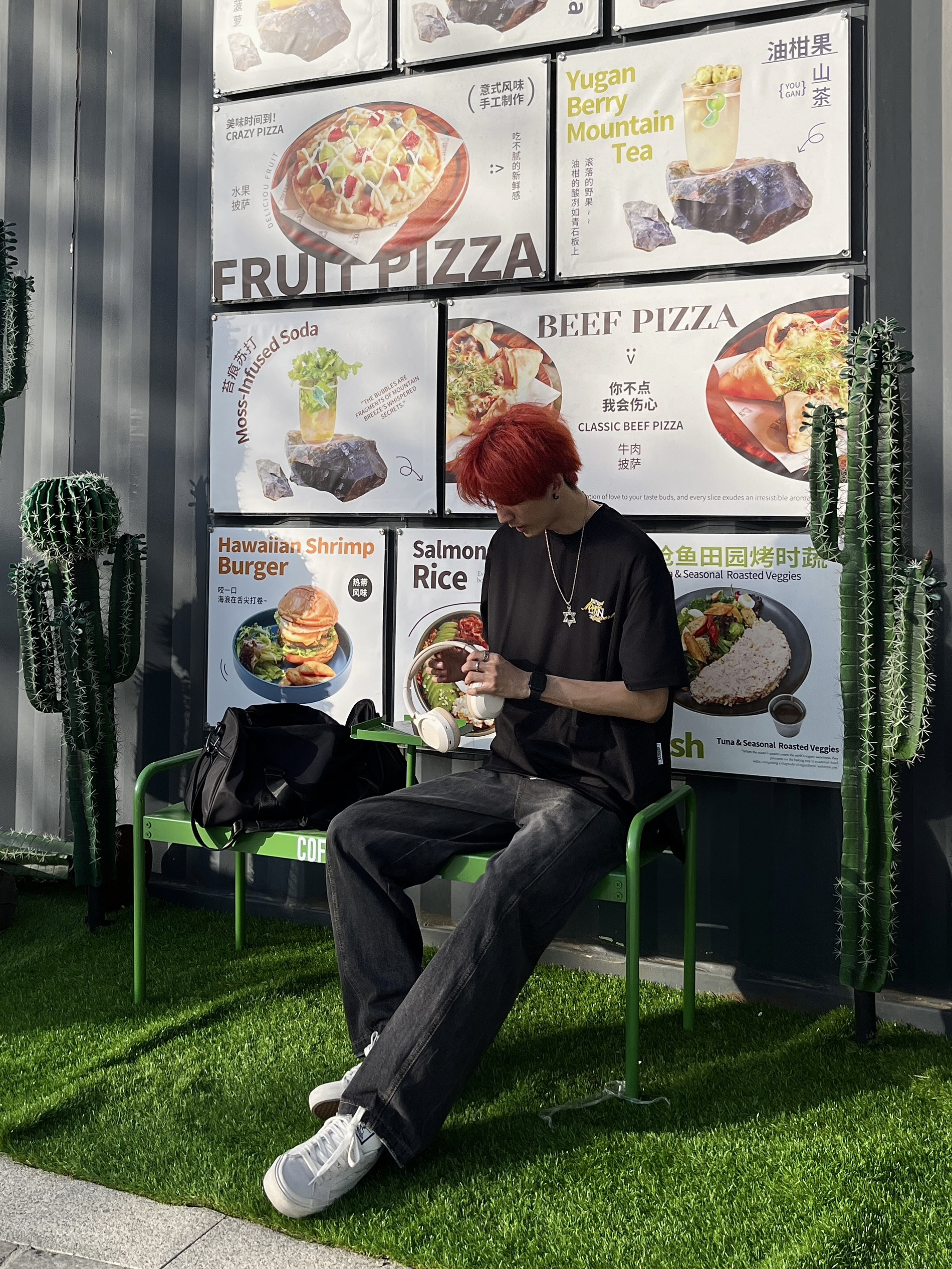 滑板和咖啡的搭配真的绝配 今天浅浅的搭了一套音乐节装扮 因为晚上要去参加他们线下的音乐节 所以穿的比较松弛一点 上身是速干冰丝的面料 不沾身上 对付这个三伏天 看来足够了