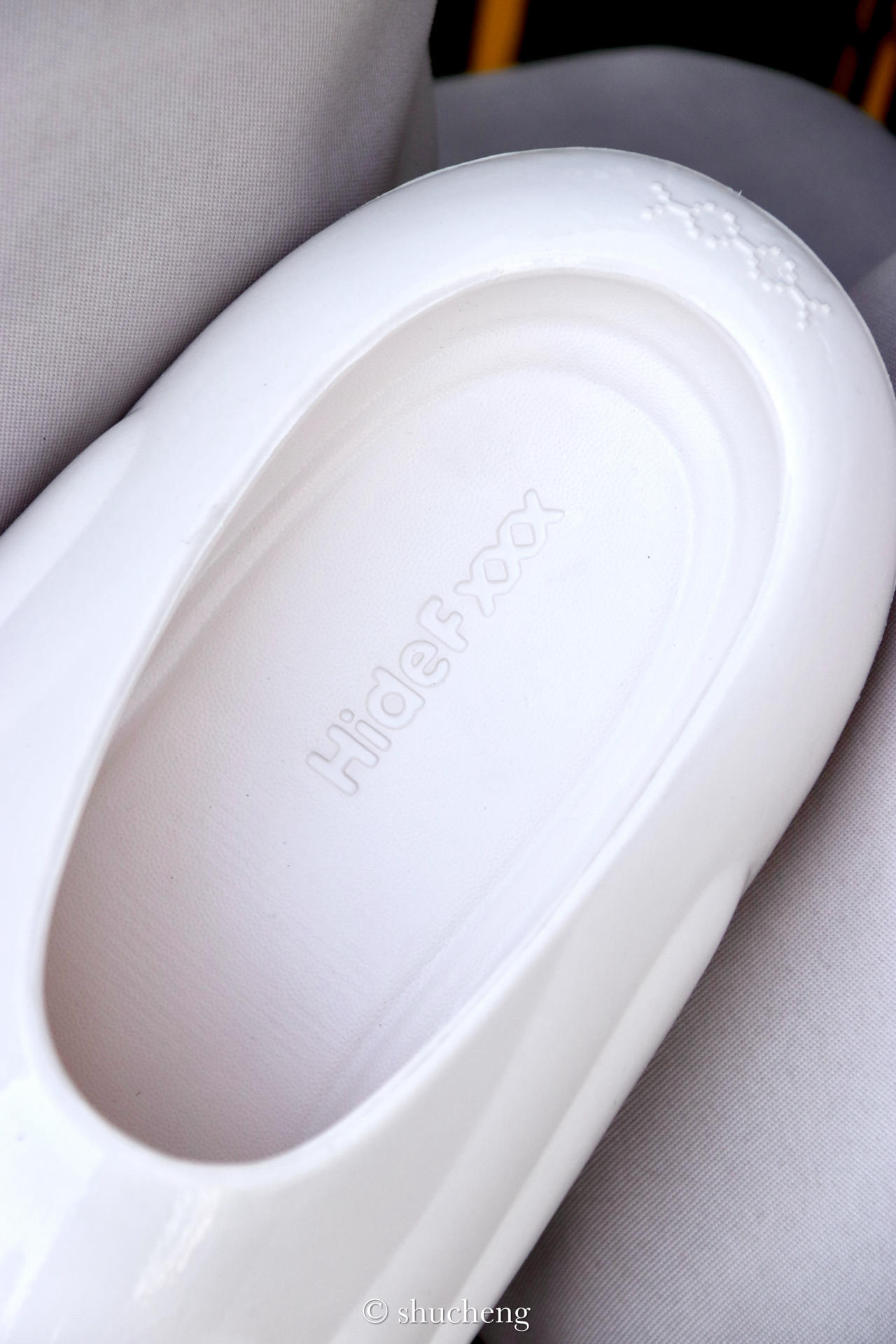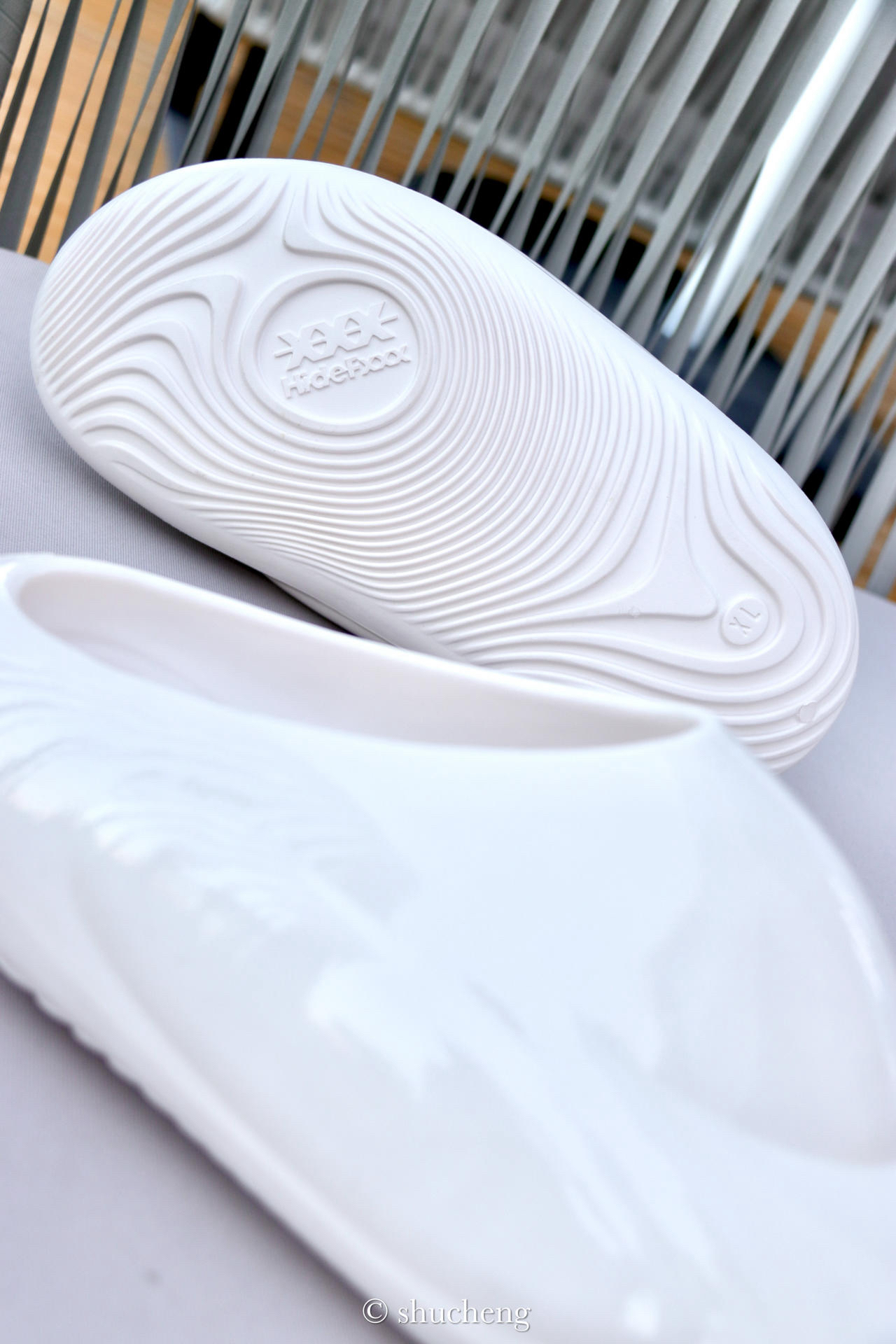 说实话,夏天真的是离不开一双拖鞋,出门蹬上就走的感觉真是太棒了。 最近hidefxxx也是推出了一双造型很独特的「氦闪」拖鞋,整体的感觉胖胖的,造型像一艘飞船一样,很有未来的感觉。这双拖鞋的质感也是很高级的,独特的工艺处理让拖鞋的外观就像瓷器一样,我入手的这个颜色是晶釉白,镜面的效果还是很吸睛的,白色搭配同色系的袜子也是比较百搭的。 拖鞋的脚感也让人很难不爱,鞋底做了弧形的滚动设计,加宽的EV...
