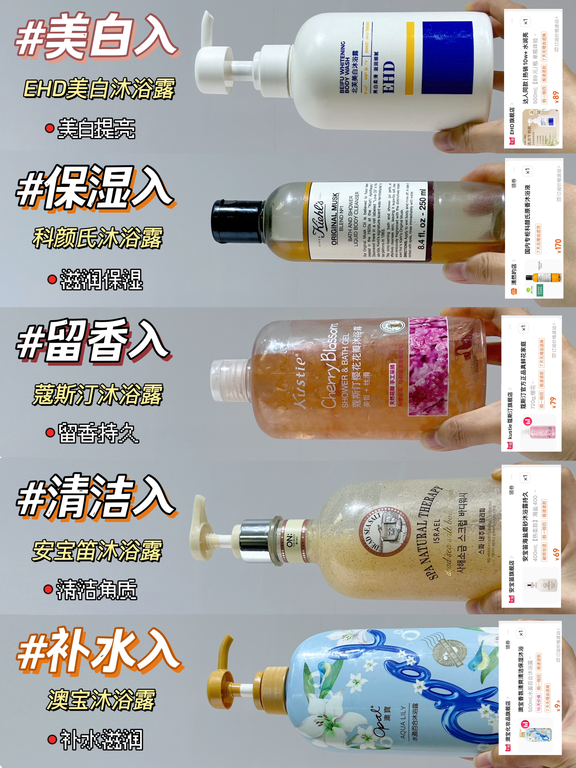本篇笔记关联了Olay/玉兰油 烟酰胺滋养沐浴露 透光超亮 莹亮 亮泽透光300g+弹润滋养500g、kustie/蔻斯汀 春日樱花花瓣沐浴露 烟酰胺粉嫩透亮保湿补水 720g、六神 温润保湿沐浴泡泡 易冲洗 健肤 祛痘补水 520ml等商品,为用户提供真实的使用体验和购买参考。