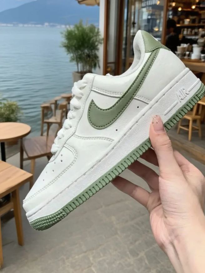 奶白配薄荷绿,不管配短裤还是长裙,瞬间把穿搭level拉满,空军经典缓震真不是吹的,不累脚。 新鞋刚上脚那两天,会有点磨脚,白色皮面太容易脏了!