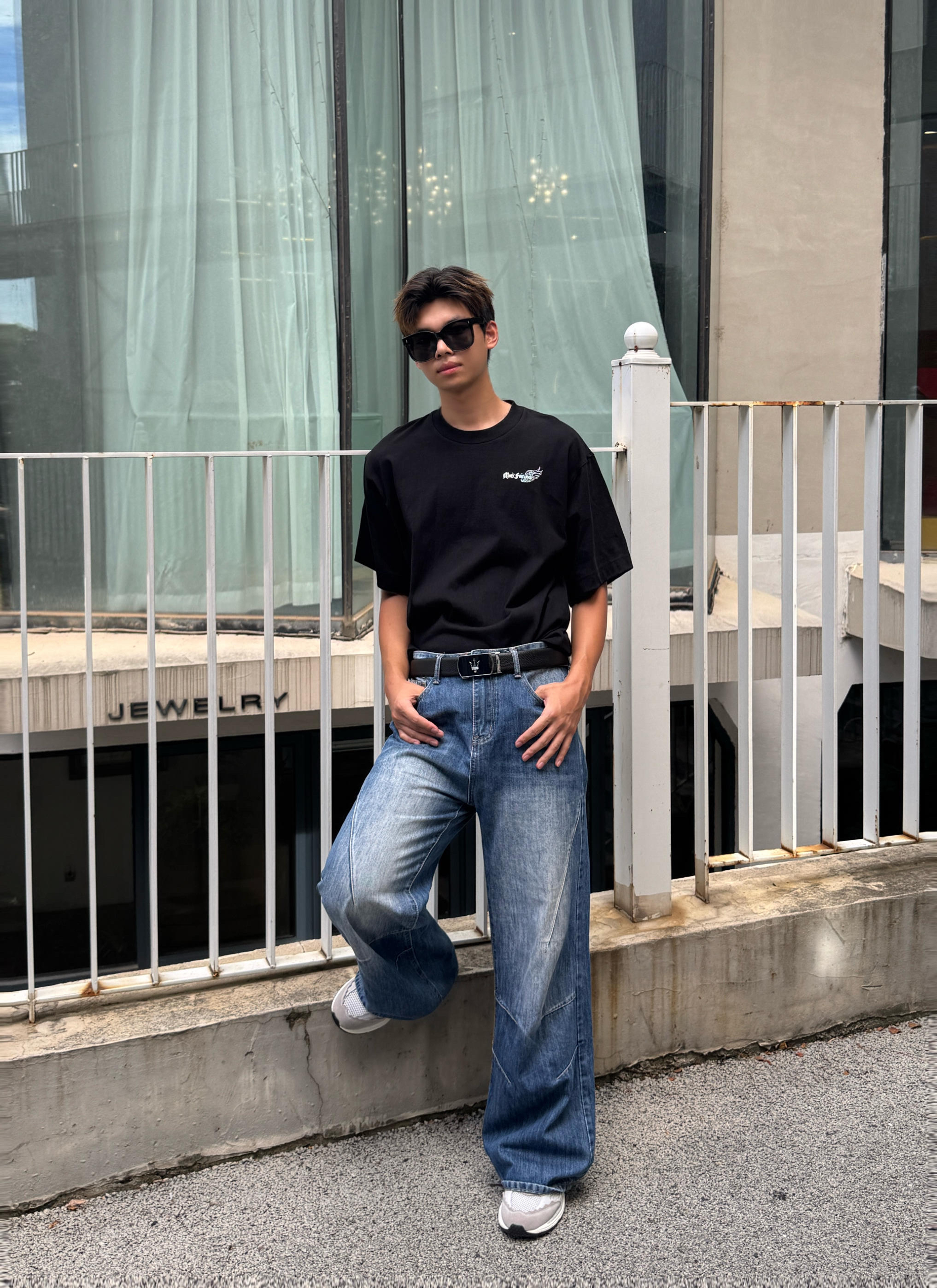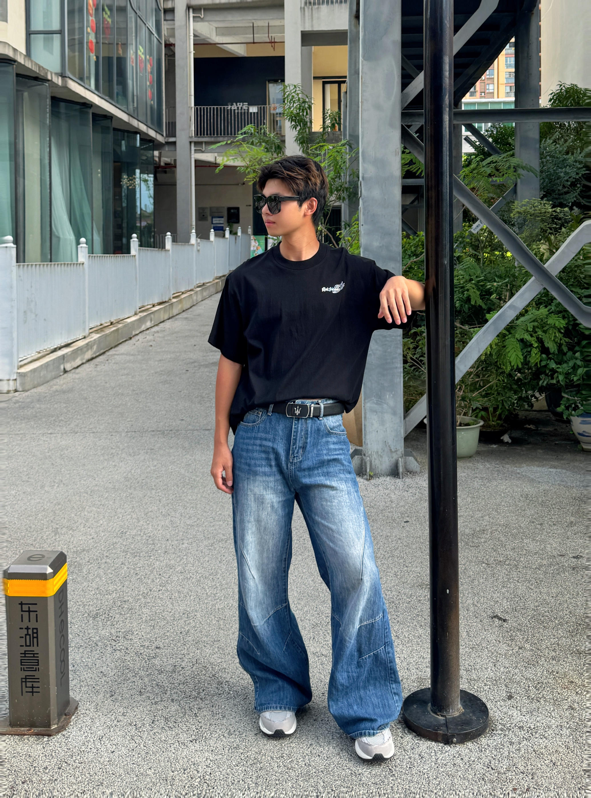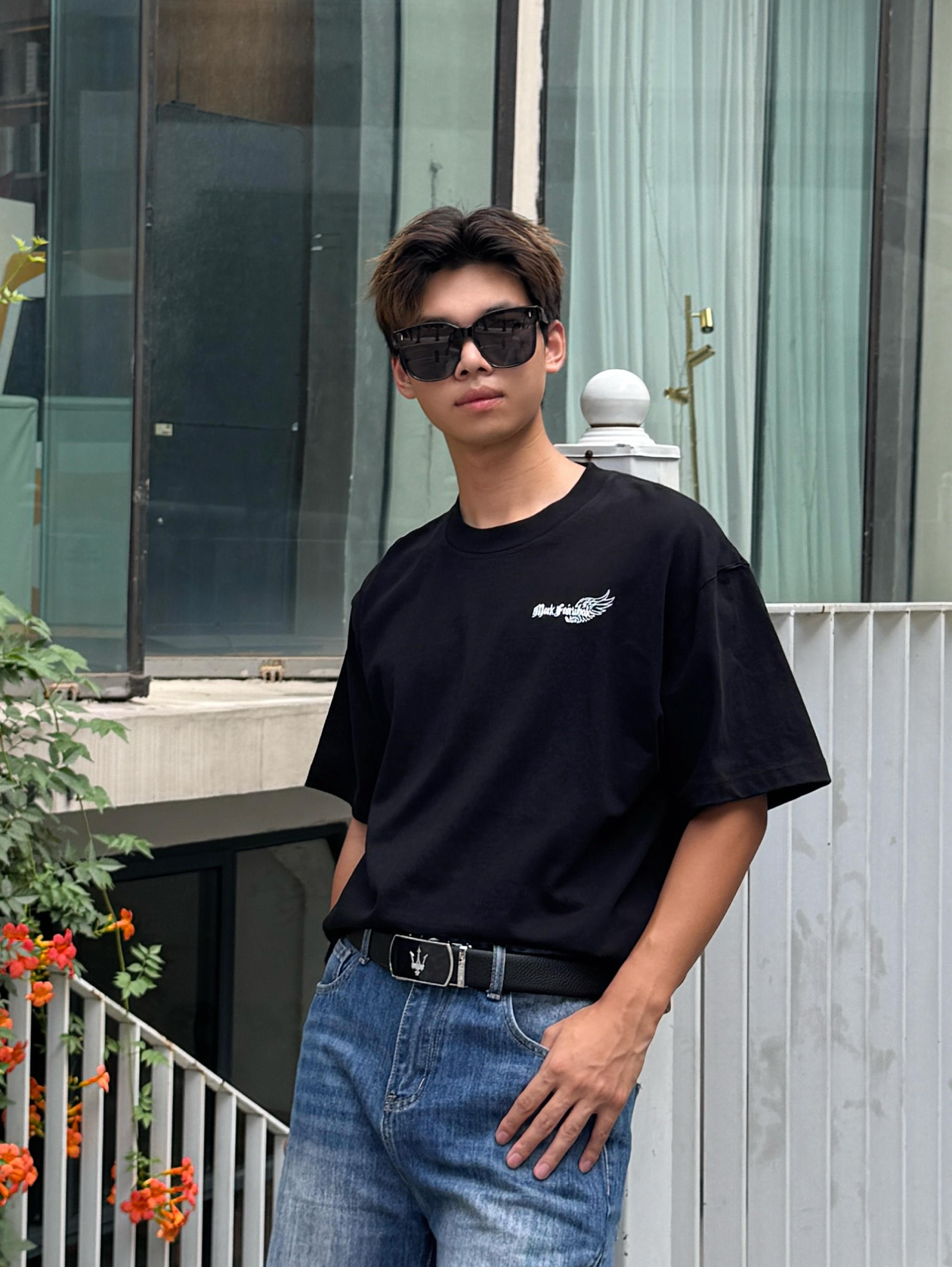 简约黑T搭配阔腿牛仔裤舒适感满满 黑色显成熟,蓝牛显大气 整体搭配起开协调又好看