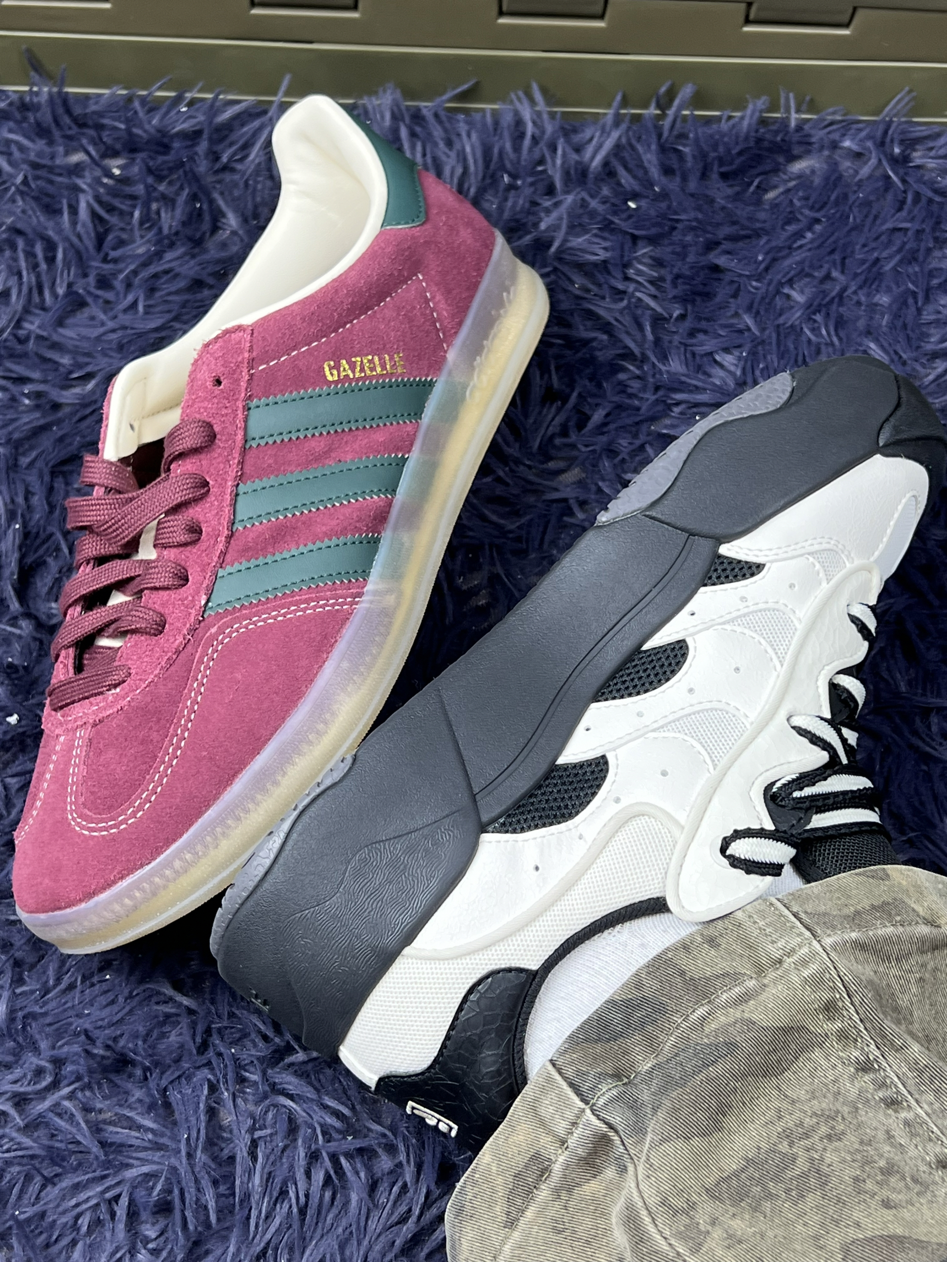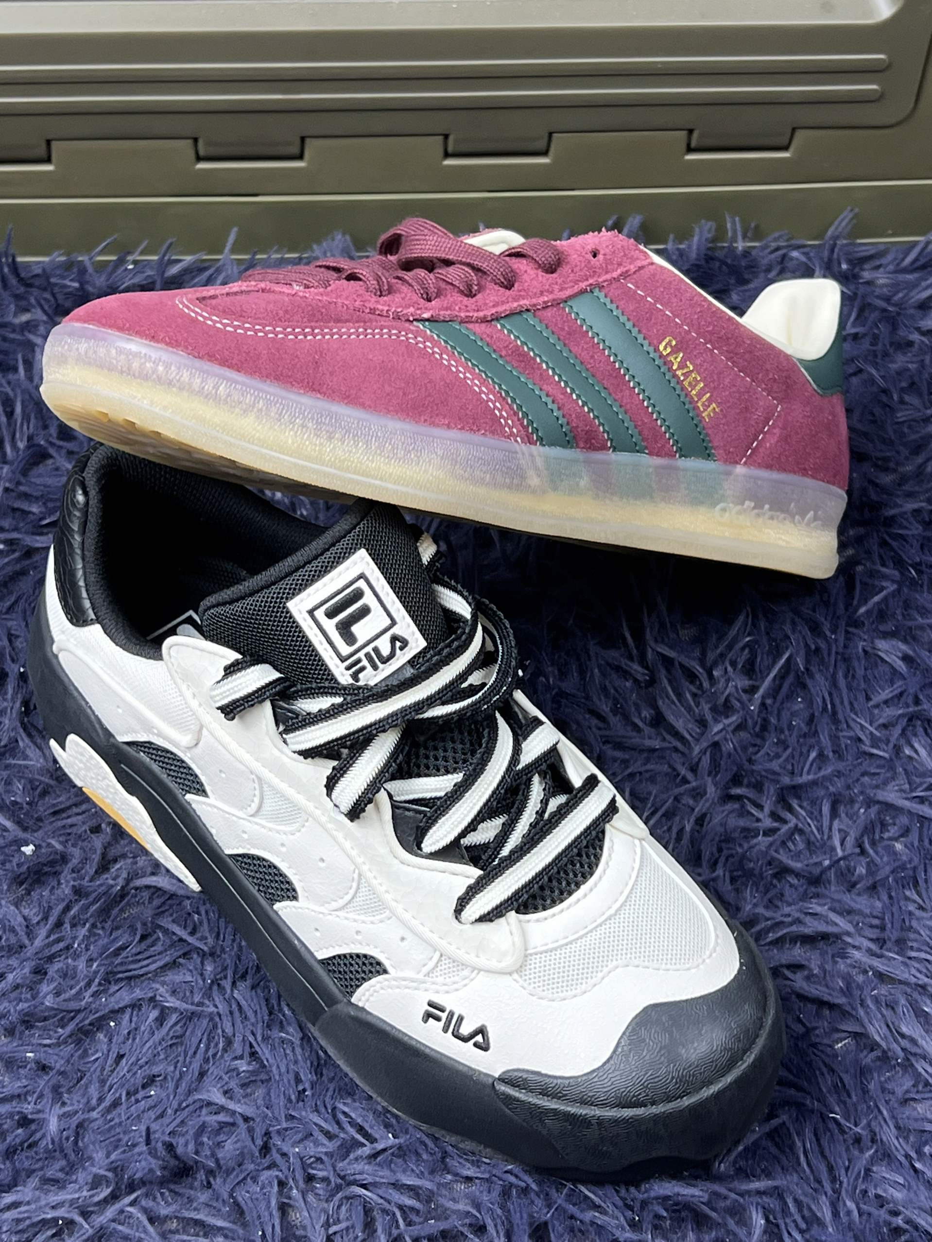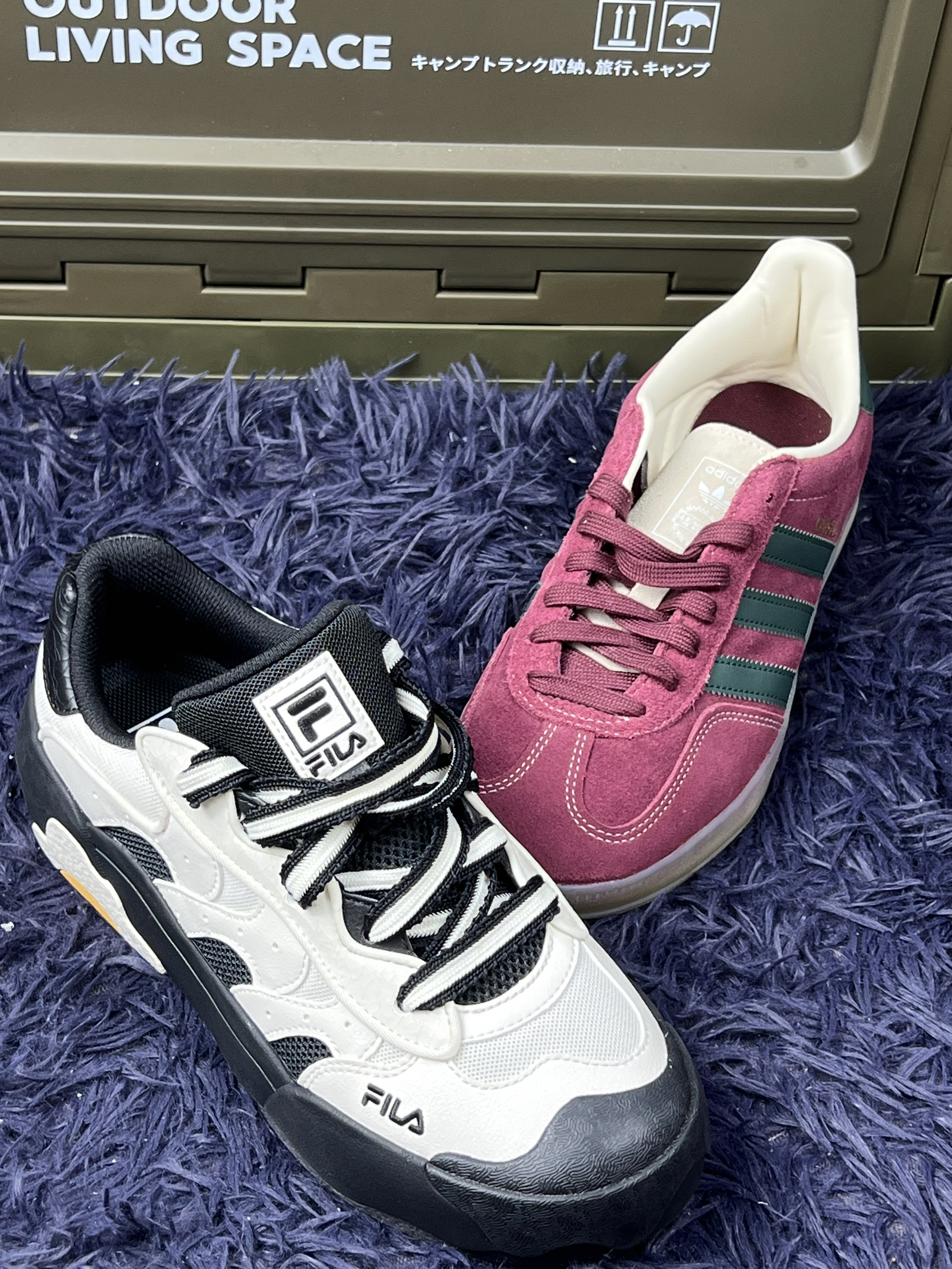 分享两双最近常穿的鞋👟 先说白黑这双斐乐,鞋型比较特别,上脚能看出和普通运动鞋不一样,走路时脚感有一定支撑,不过鞋身不算特别轻便,长时间快走会有点累🦶 而且鞋头宽,脚瘦的朋友得适应下。 另一双阿迪达斯的粉紫款,配色很复古,麂皮材质有质感,搭配休闲装挺出彩。但麂皮打理起来麻烦,沾了灰或水渍,清理要小心🧹 尺码我穿着稍有点偏大半码,得选合适尺码才舒服。 两双鞋都有自己的风格,也都有些小不足,...