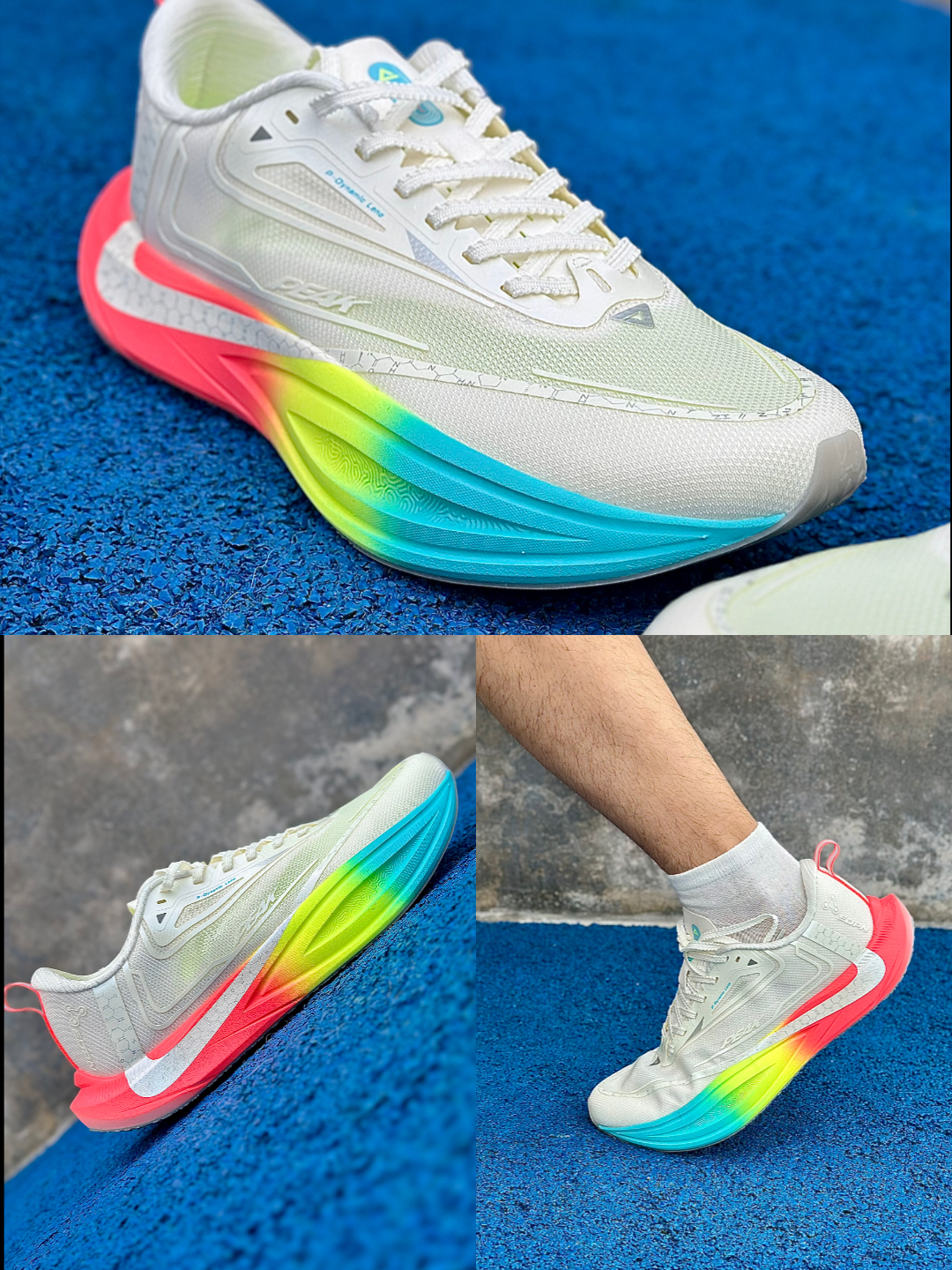 匹克这款二次呼吸2.0内啡肽配色,整体鞋面以白色为主色调,给人一种清爽干净的感觉。中底则采用粉、绿、蓝的拼接配色或彩色渐变设计,整体活力感满满。 鞋面用的是TPEE纱线结合纱罗工艺,不仅透气,强度也很高,不用担心轻易破损。鞋舌升级成“小枕头”设计,跑步时脚踝稳得很。后跟港宝加上碳纤维抗扭片,进一步提升了稳定性。 中底搭载全新调校的轻量化物理发泡态极科技,实际跑起来,前掌触地瞬间,能快速形变吸收冲...
