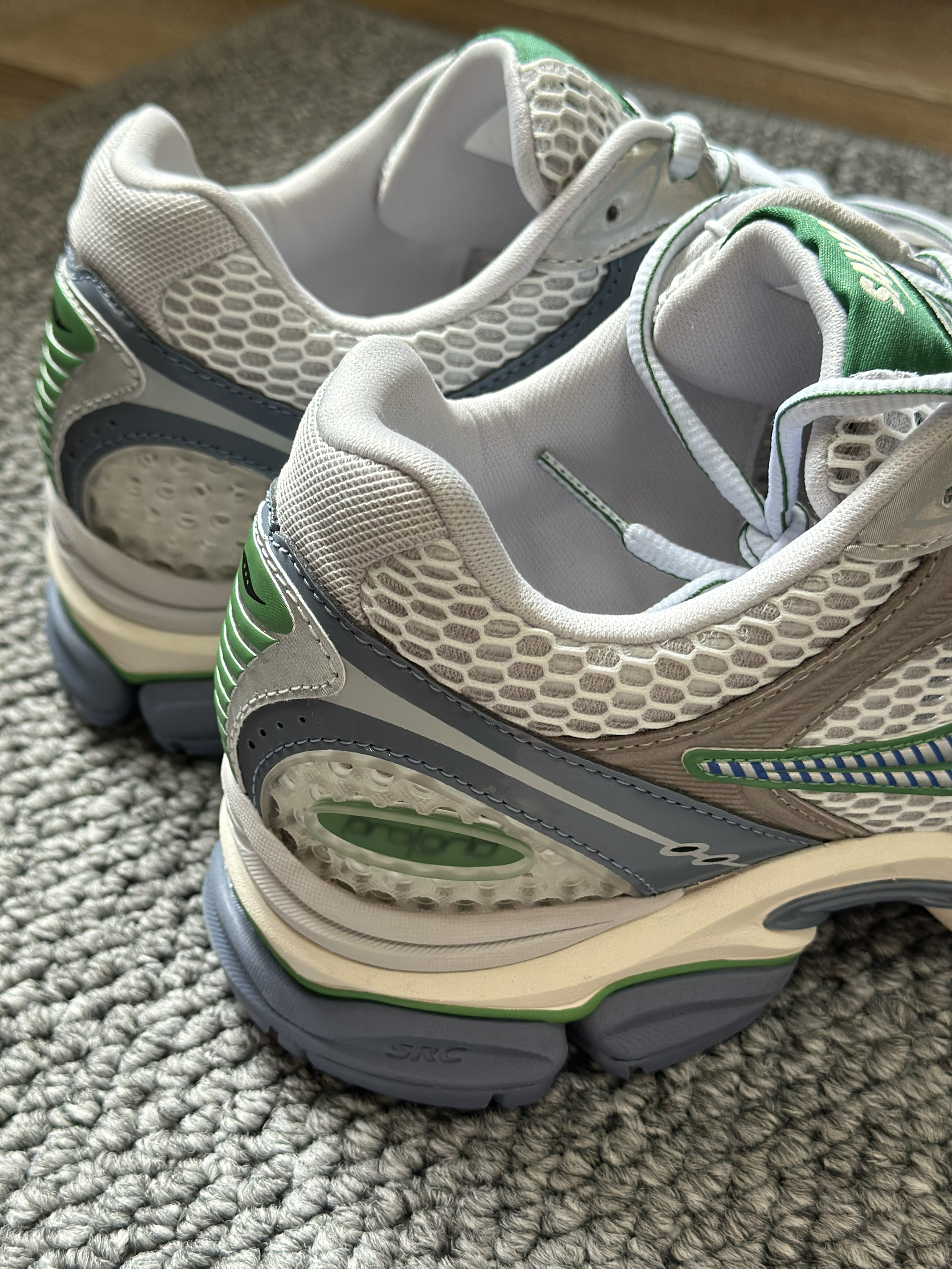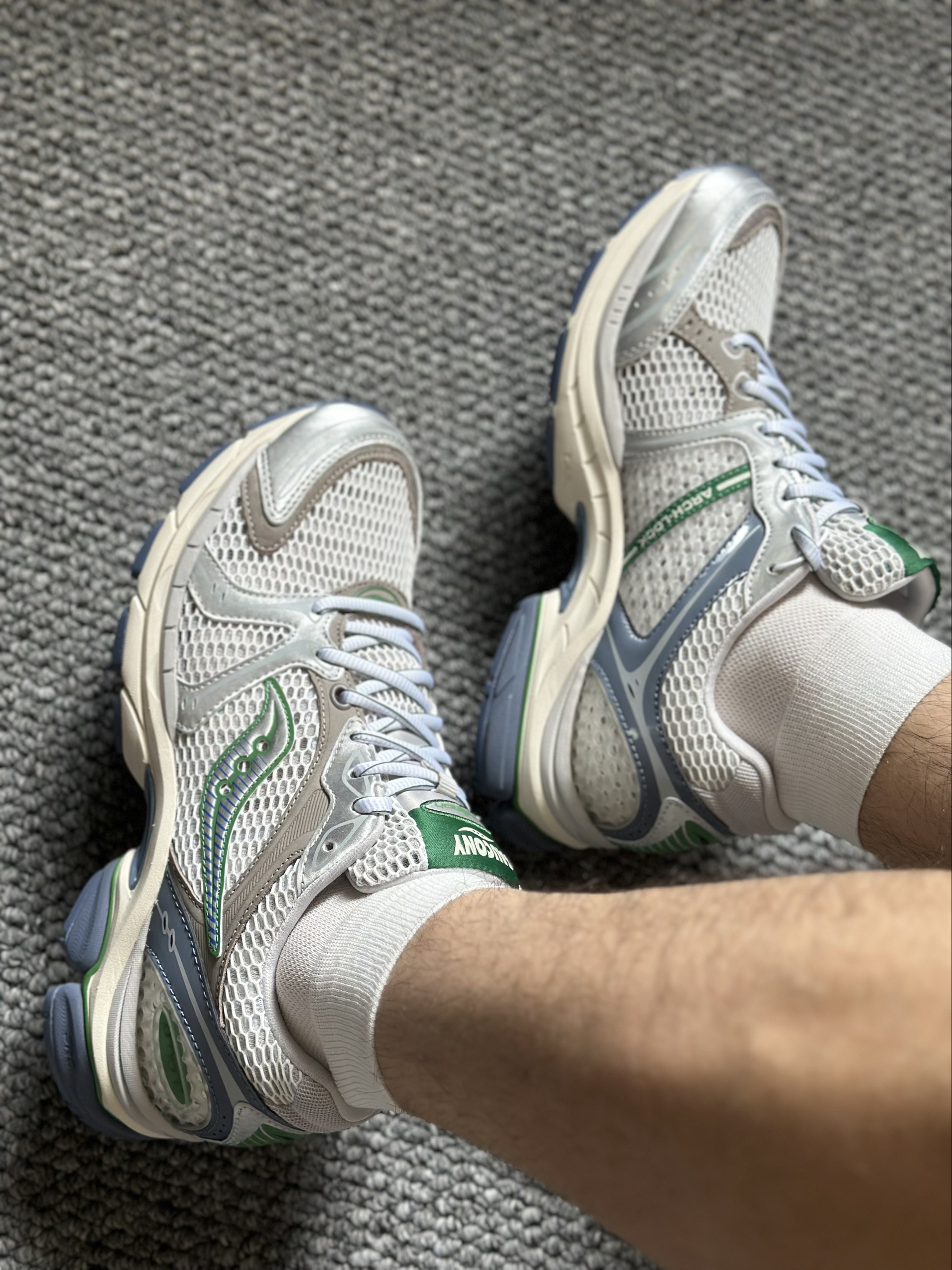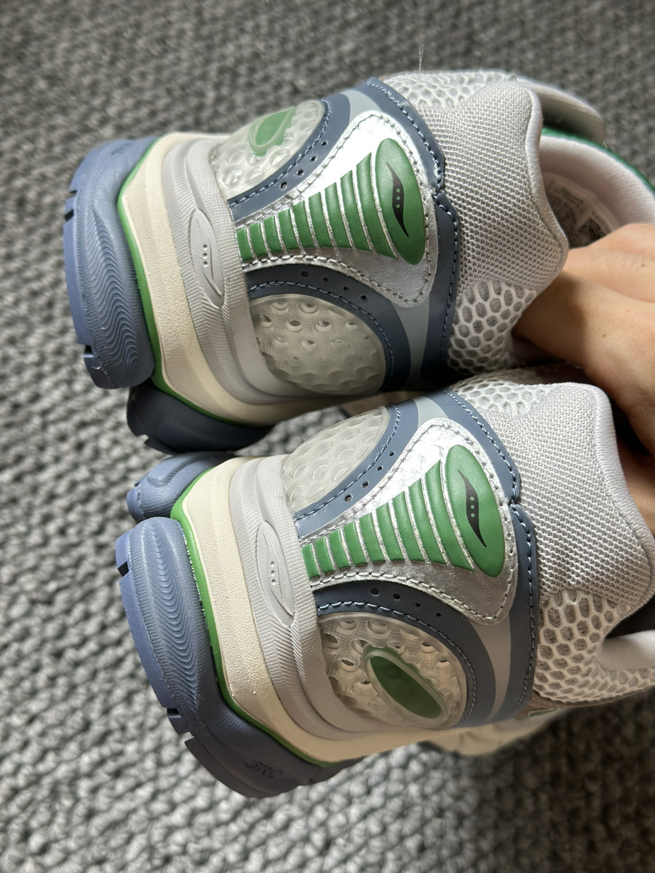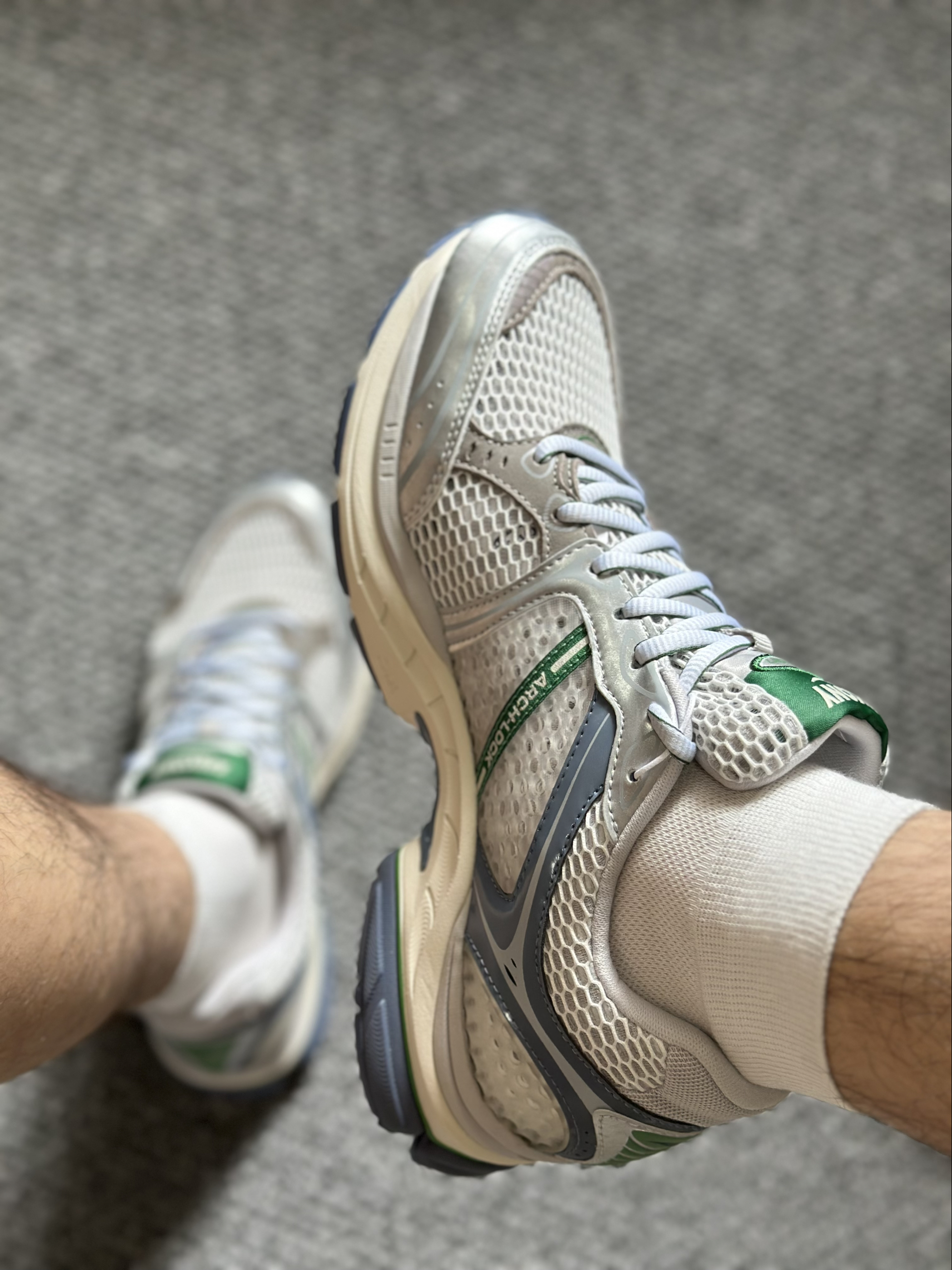 银棕绿配色像打翻的复古调色盘,配牛仔裤是美式复古,搭工装裤秒变cityboy。 中底像会隐形的弹簧,走一天都不累脚,遛狗都能走出轻盈利落感。大孔透气网布网眼的细节太戳人,夏天穿不闷脚还意外耐脏。最喜欢它男女同款的设计,和对象凑情侣鞋也毫无压力。