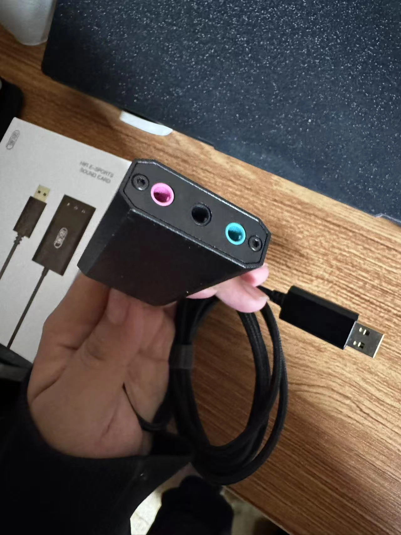 我本来就想入个声卡插耳机打游戏,没想到中奖得到一个😆。它外观简约,黑色的机身,有品牌标志,看着挺精致~功能上真不错,有7.1虚拟环绕声场,还有变音功能。带驱动能自己调设置💯。缺点就是得外接电源,要是能内置电池就更方便了。适合游戏玩家,日常宅家打游戏用~