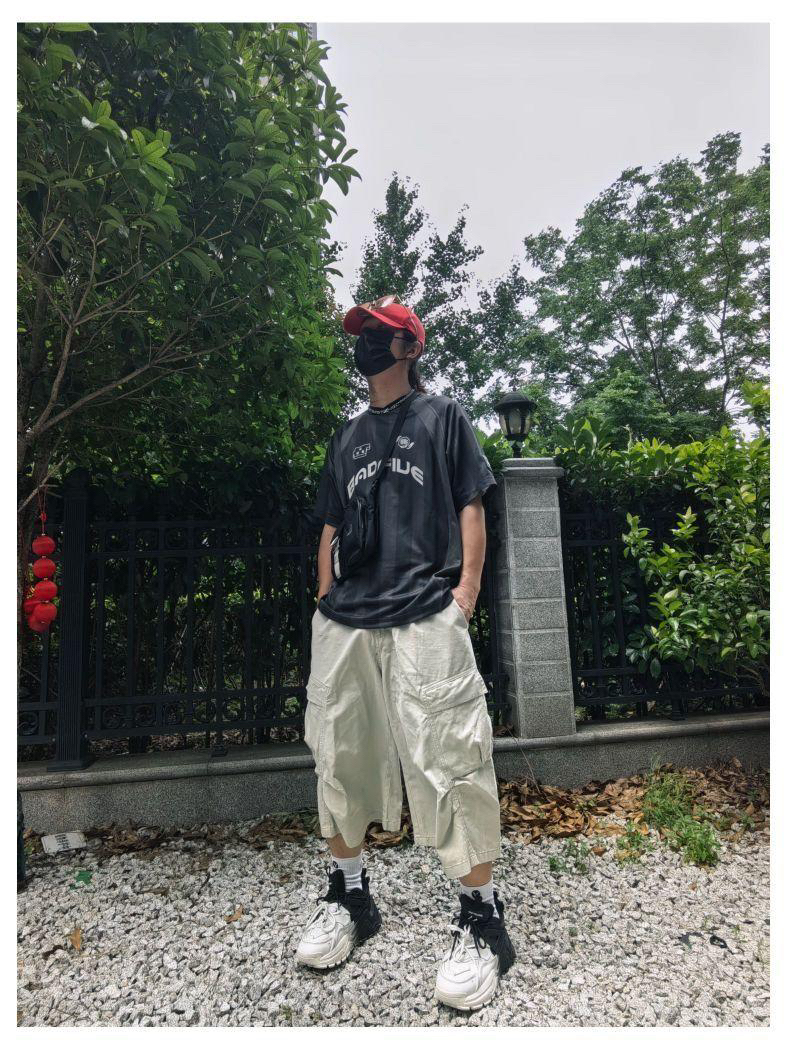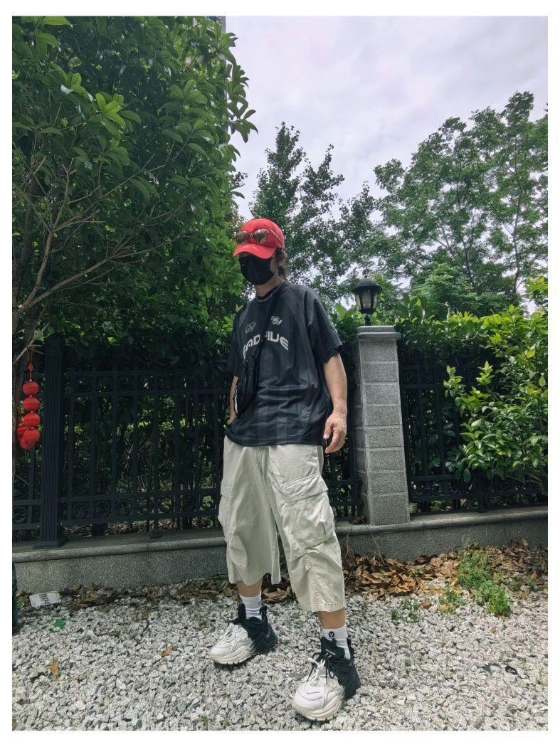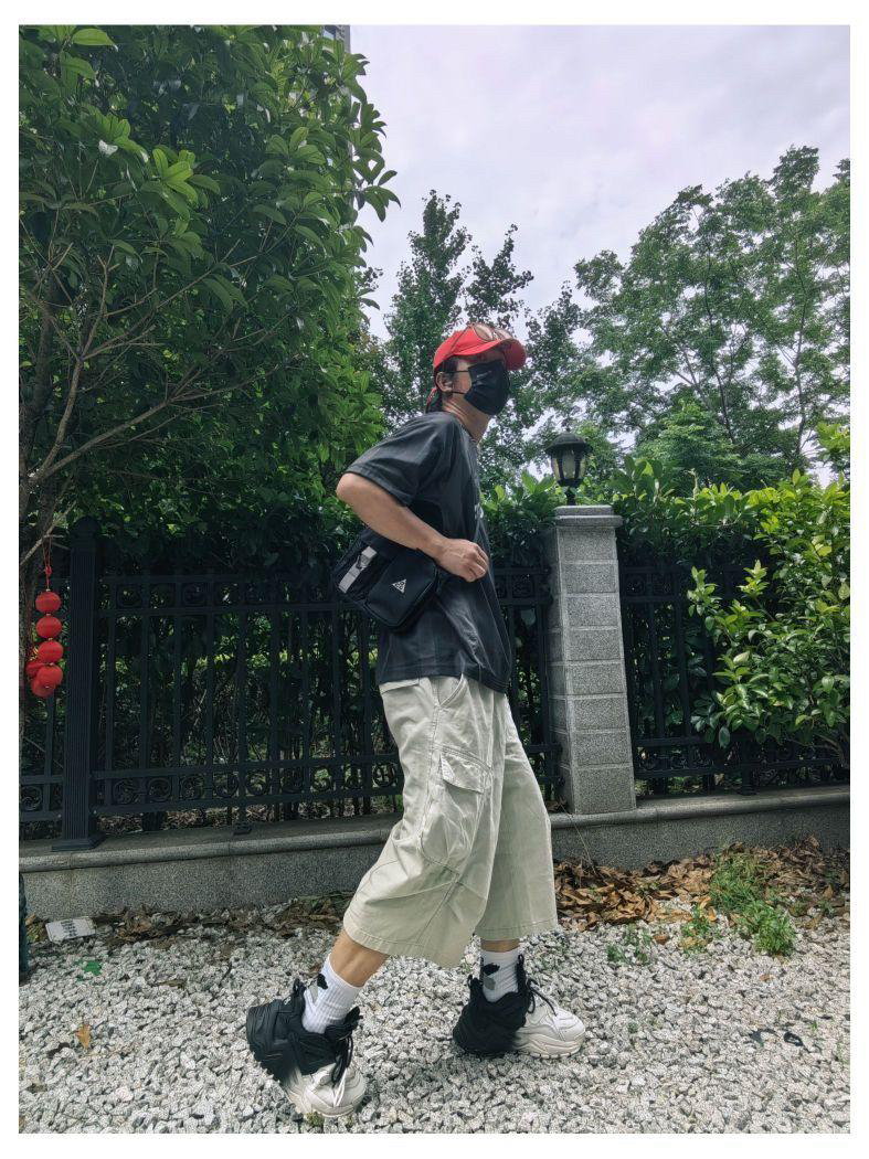 户外街头风情侣💑穿搭 ♂: 李宁反伍短袖字母印花logo T恤 七分纯色系多口袋休闲工装裤 黛西法罗配色街头风休闲老爹鞋