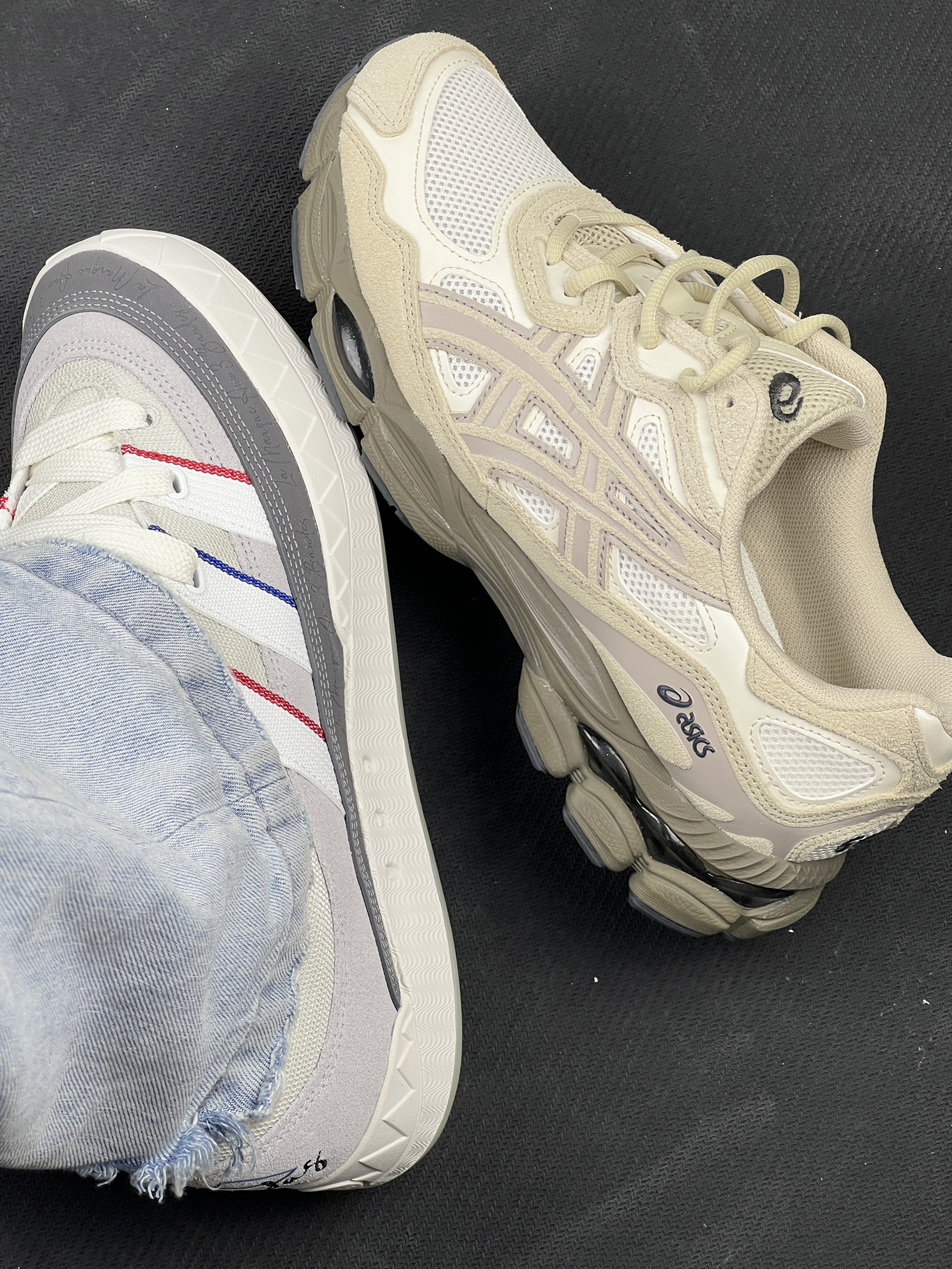 这两双鞋我穿了有一阵了,来聊聊真实感受 先说说左边这双Asics GEL-NYC系列脚感还不错,走路时能感觉到一定的缓冲,不会特别硬。款式也比较百搭,配休闲裤或者牛仔裤都挺合适。不过它的透气性不太好,夏天穿的话,脚容易出汗,会有点闷。外观挺有设计感的,线条流畅,配色也比较经典,看起来很有质感。不过仔细看会发现,鞋面上的一些细节处理得不是很精致,比如缝线的地方,有的地方会有点不平整。 再看右边这...