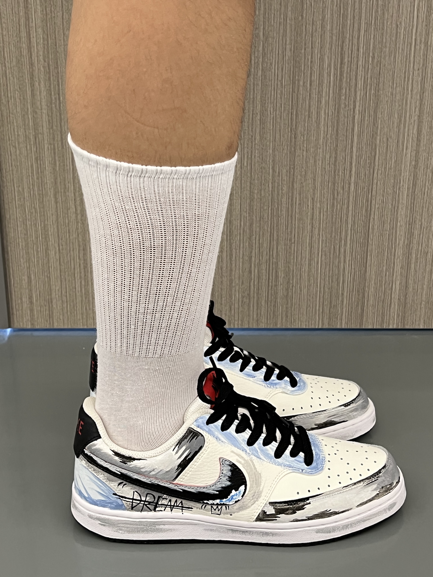 今天和大家分享一双Nike的定制款墨澜幻迹板鞋 这双鞋子采用了手绘泼墨的设计,再加上巧妙的DIY设计,让这双鞋子的细节更加丰富! 在纯白的基础上,Swoosh更加的吸睛,后跟处也做了细节涂鸦,非常的亮眼 鞋面是光滑的合成革材质,我在打理起来非常的方便轻松 这双鞋子比较的轻量化,日常休闲穿不会累脚 尺码我是按照正常尺码选择的,不偏码! #买鞋抄作业 #把这双鞋焊在脚上 #战靴设计暗号 #定制我...