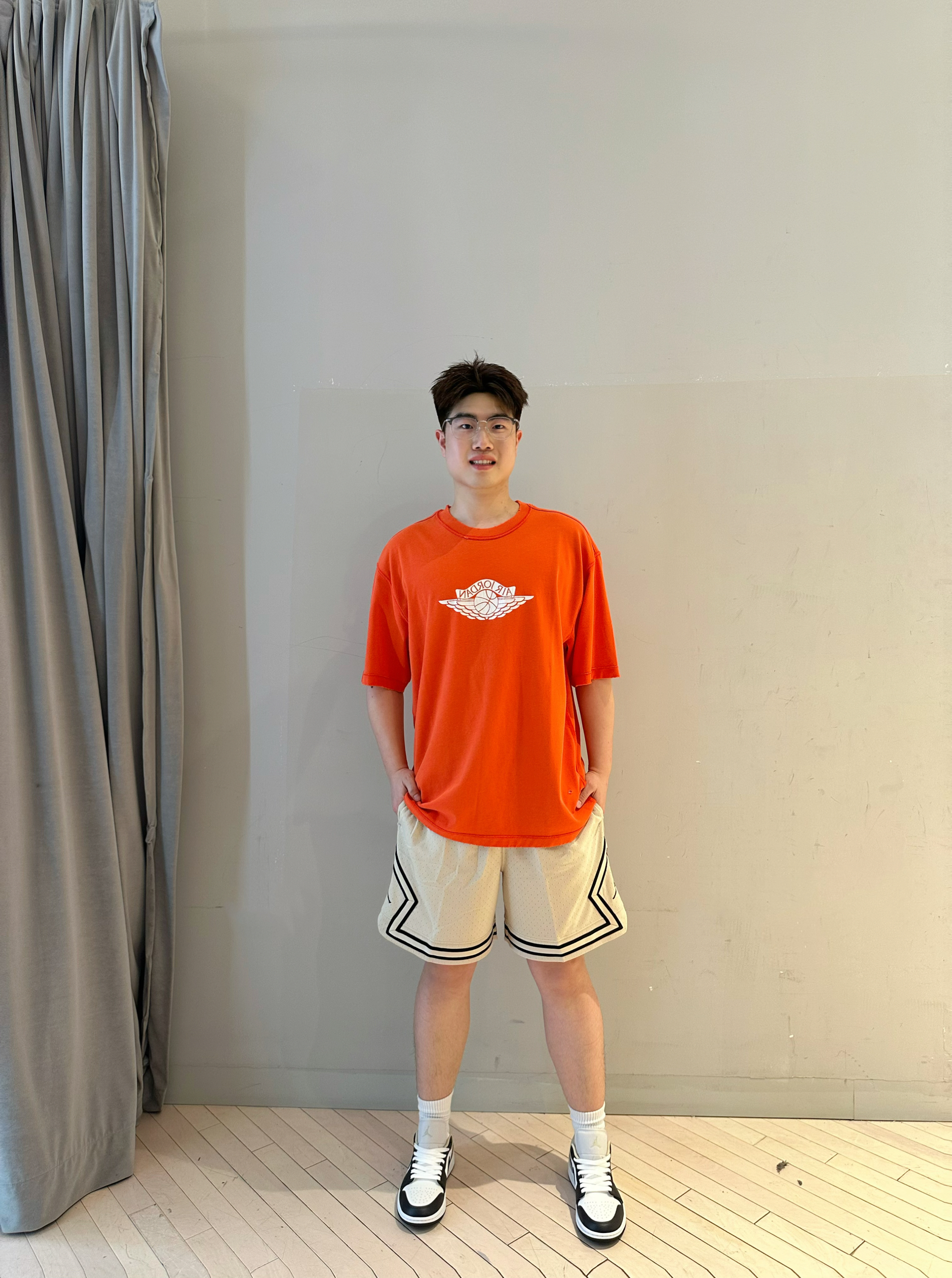 👕:aj UN联名短袖 🩳:aj基础运动休闲短裤 👟:aj FLIGHT COURT 整体穿搭以运动休闲风格为主,衣服裤子都是纯棉材质,上身舒适柔软、亲肤透气夏天穿它出行不闷也不热,鞋子干净的白色搭配清新蓝,细节处棕色材质超有质感。上脚舒适又百搭,出街运动都适配。谁穿谁好看,我真的爱惨啦!🔥