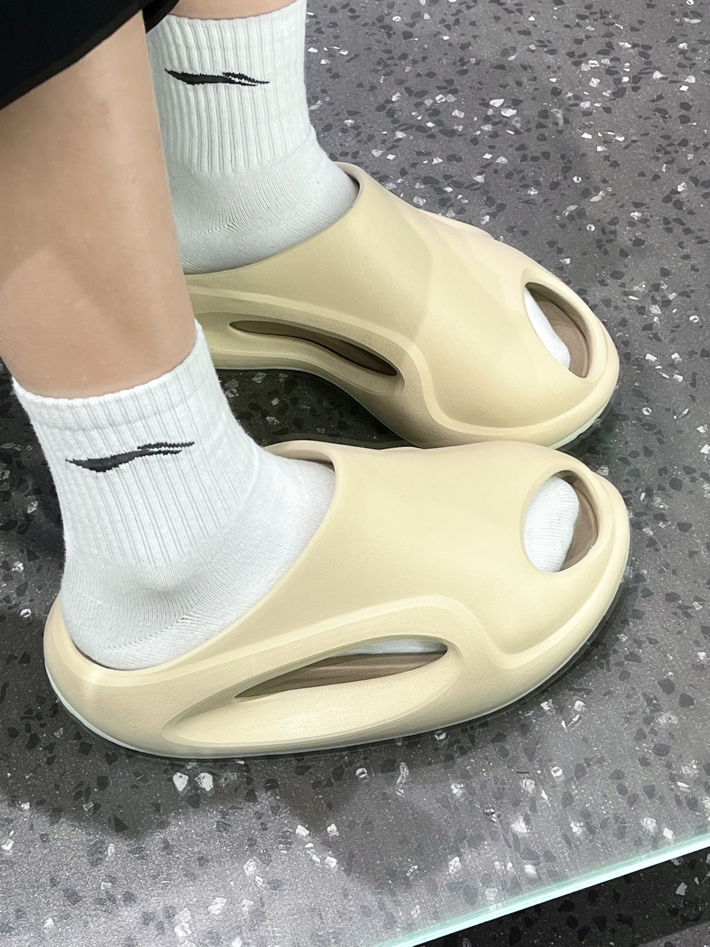 家人们谁懂啊,最近我被这双拖鞋拿捏得死死的👍。 款式很有设计感,穿起来也巨舒服,走路缓震回弹。 唯一一点就是价格不算特别便宜,但冲着这颜值和脚感,我觉得值~