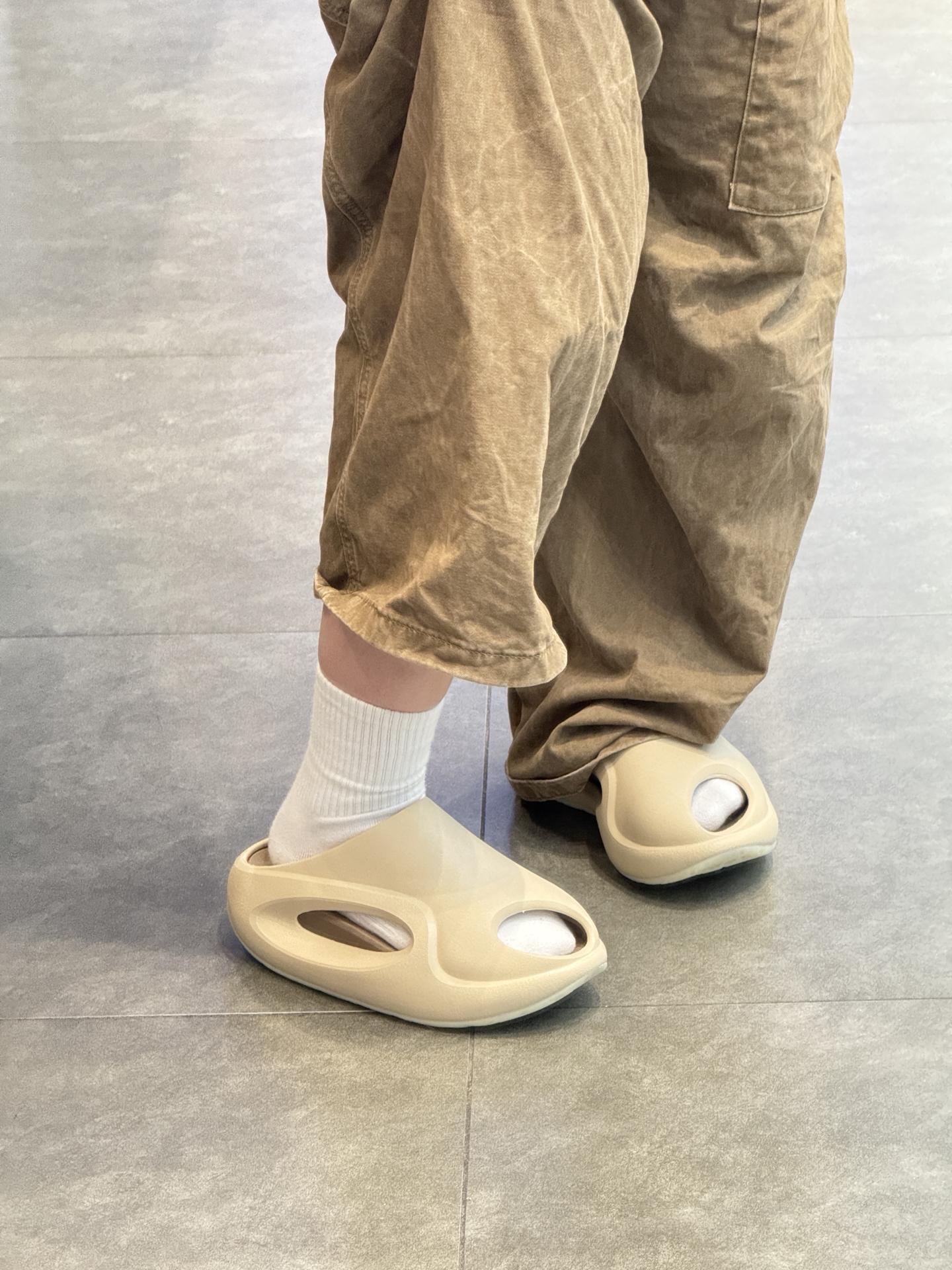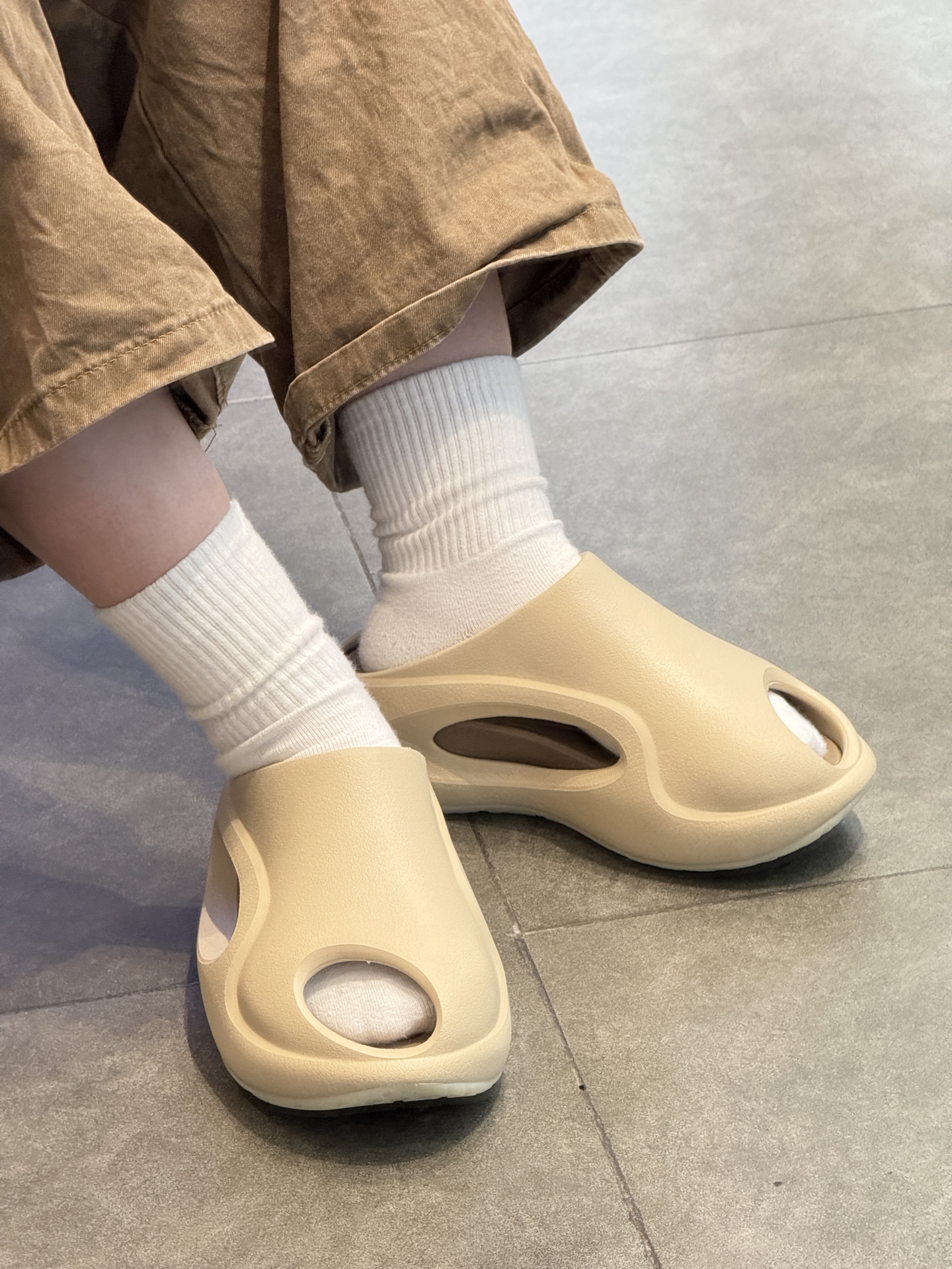 家人们👀,最近入手的这款拖鞋真的惊艳到我。 颜值很高,造型新颖很独特👏。 实测穿着减震很棒,走路很舒服。 平时休闲出门穿正合适。当然不足的是浅色不太耐脏,但不影响我爱它~ 强烈安利❗