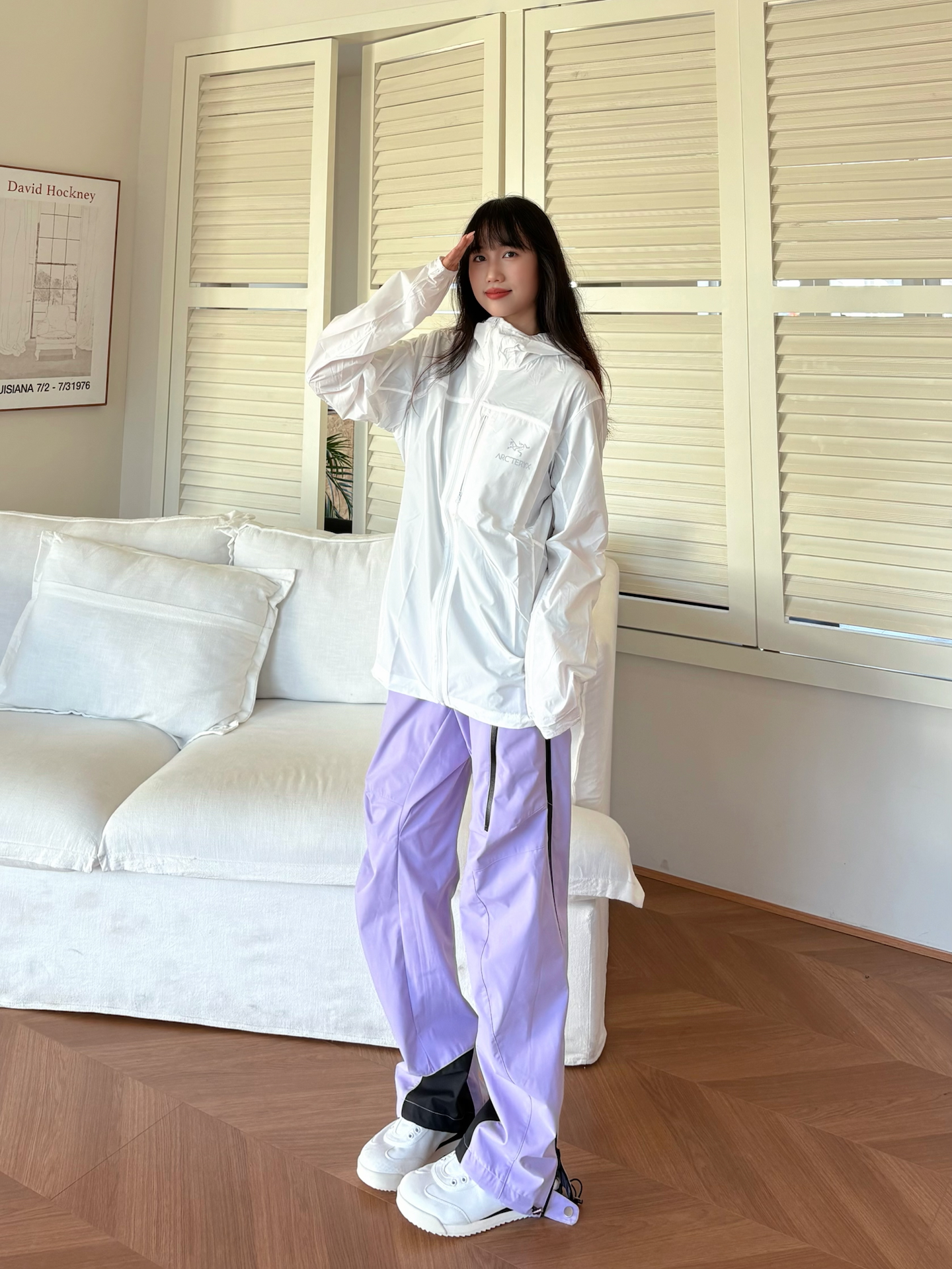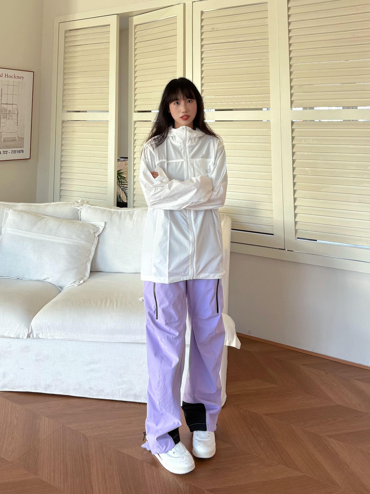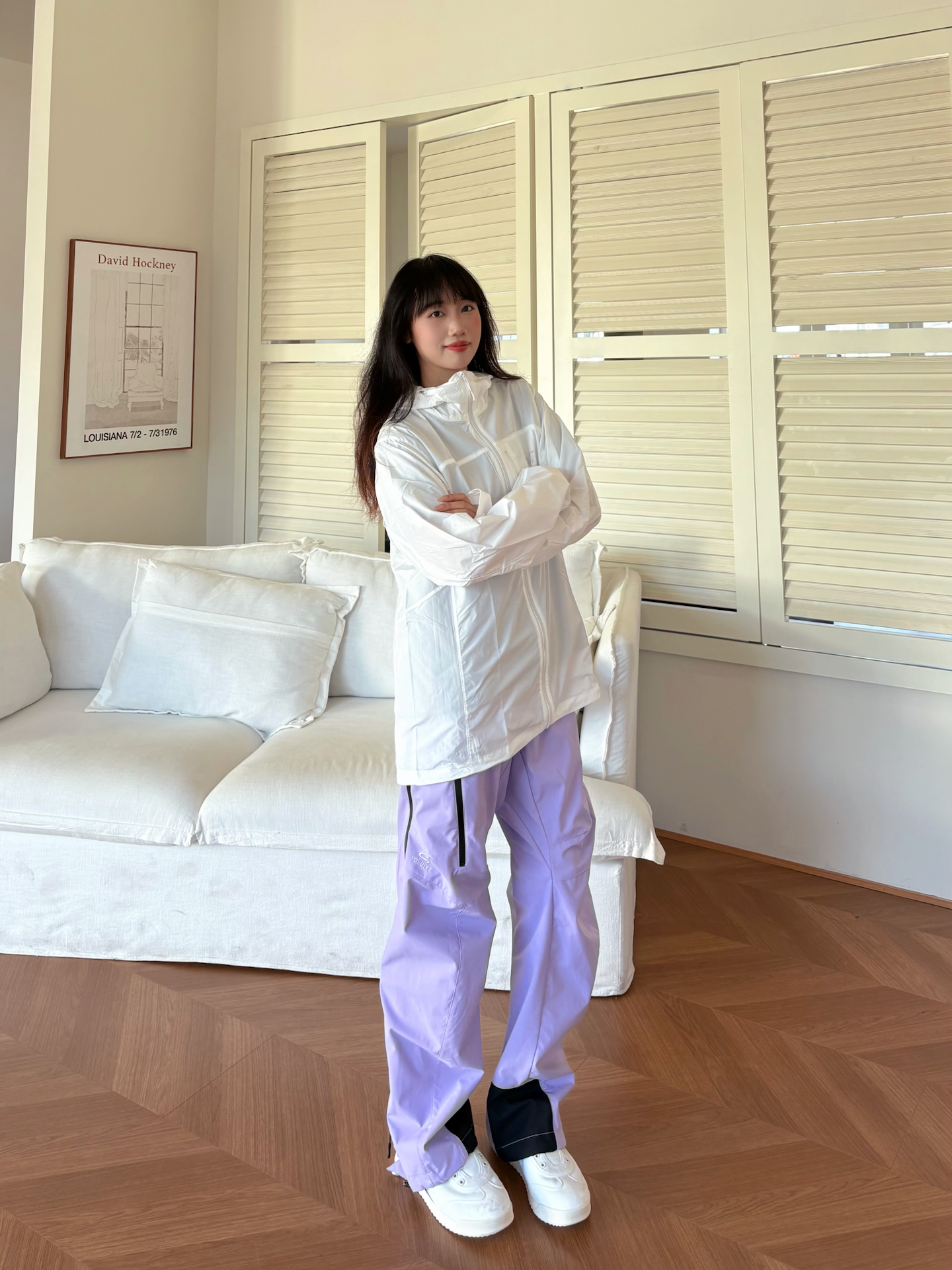 这套未免也太适合city work了吧 浅色系:奶白色➕香芋紫,好夏天的颜色搭配 裤子立体剪裁➕大拉链设计温柔中带着帅气😭 搭配上迪桑特家的阿甘鞋 这一身我好爱~ 图源网络,侵删!