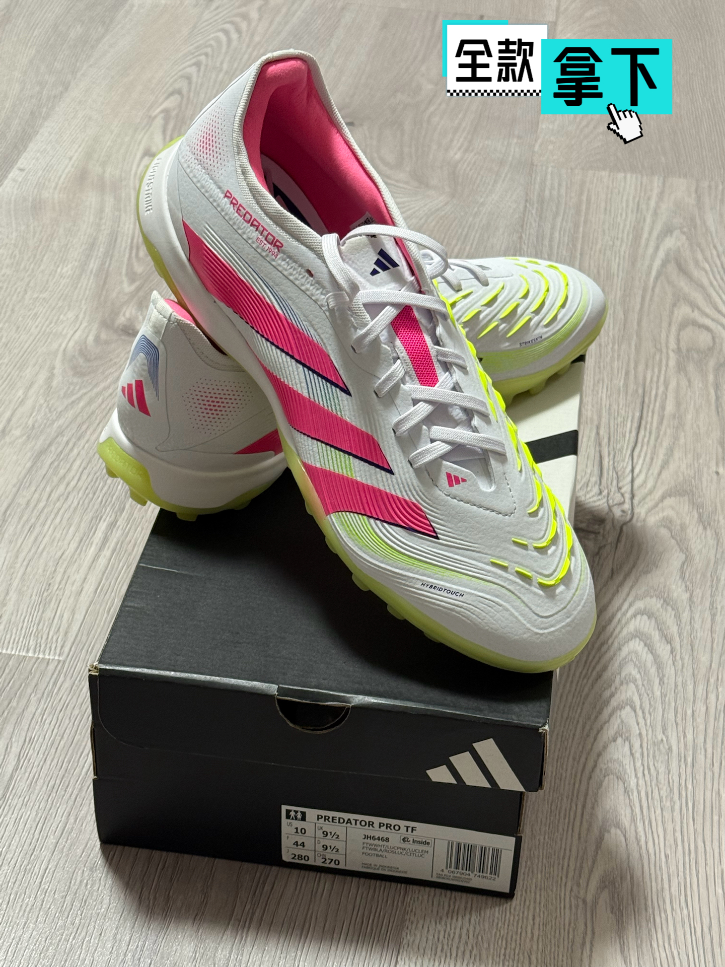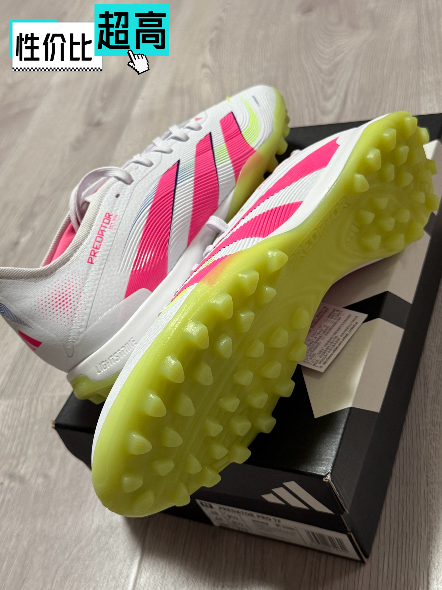 我最近入了双足球鞋,颜值真可,白、粉、黄配色亮眼✨。 鞋面触球感很棒,还有摩擦条,包裹度也高。 不过TF中底偏硬,缓震一般,且鞋型偏小,胖脚宝子慎选~